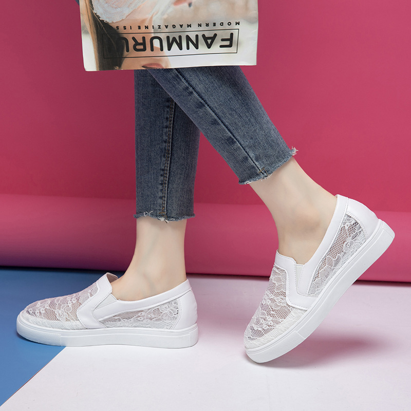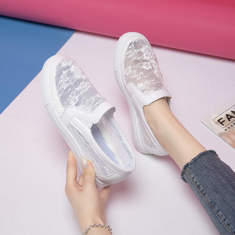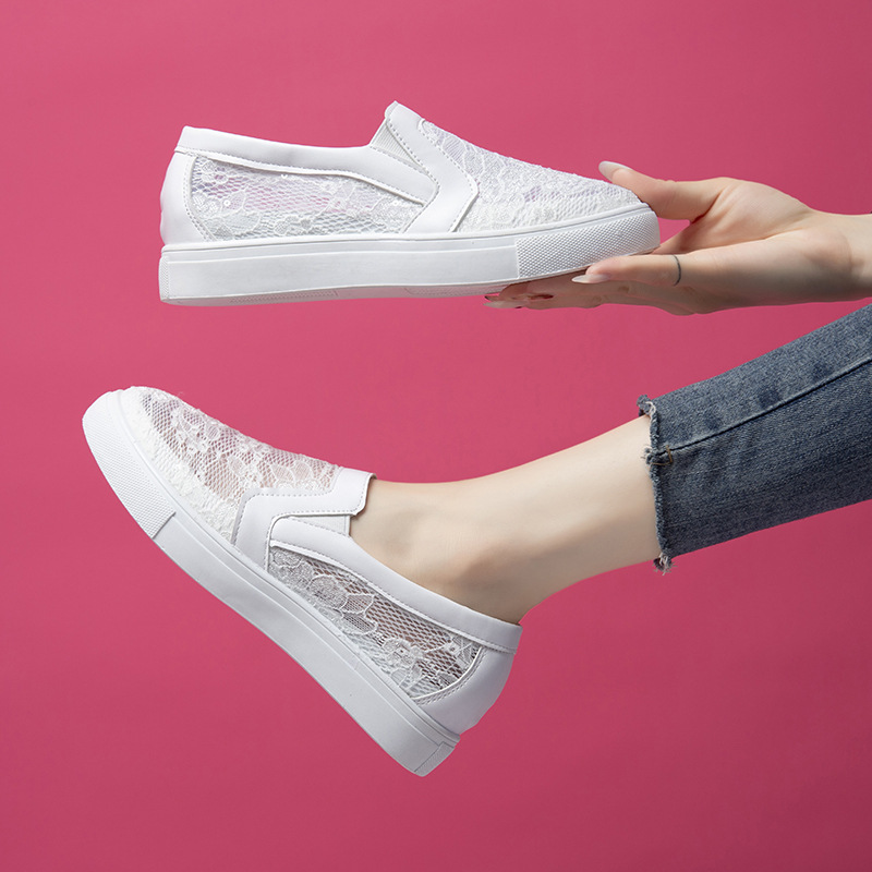 2025 весенне-летний новый стиль, дышащая сетчатая внутренняя обувь белого цвета для женщин, универсальная повседневная обувь, сетчатая обувь на одной ноге