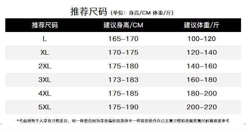 L; XL; 2XL; 3XL; 4XL; 5XL