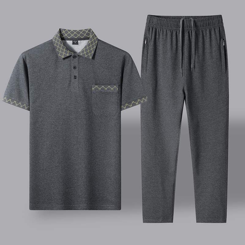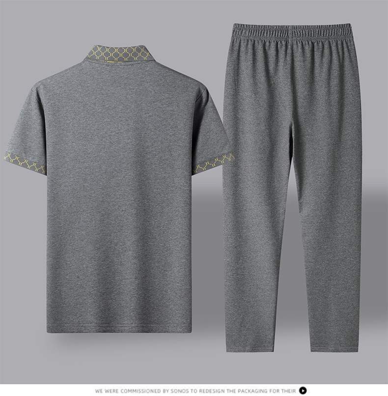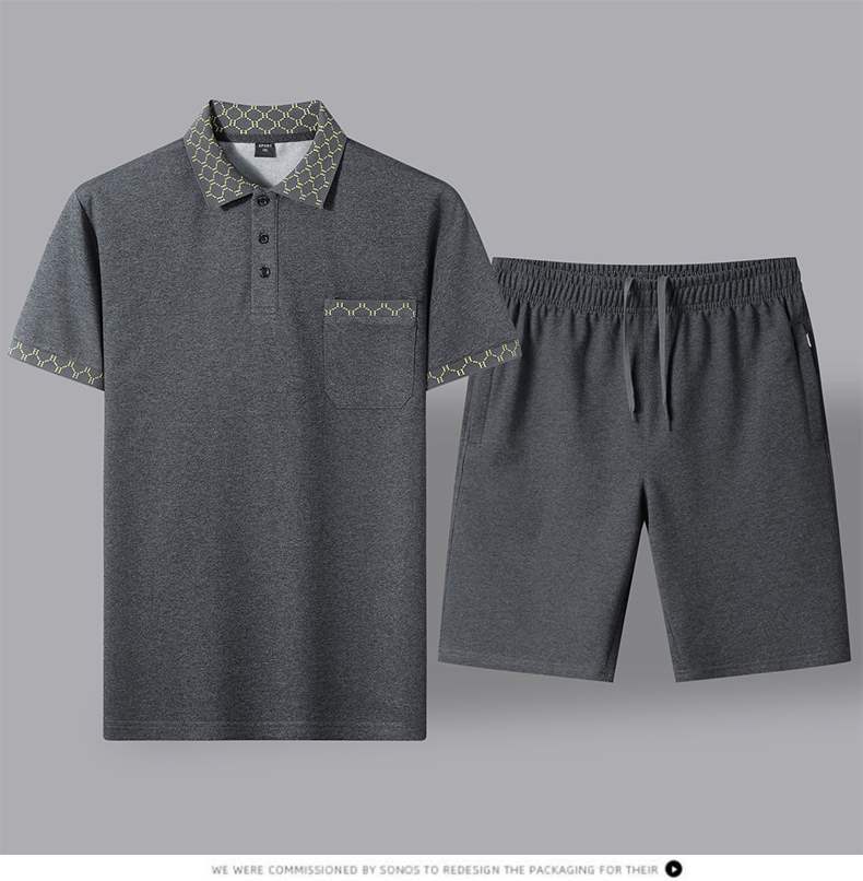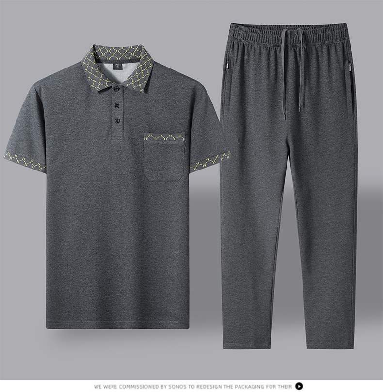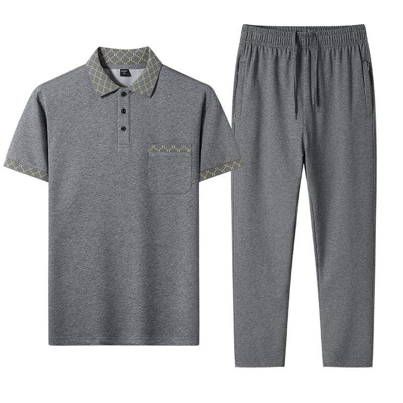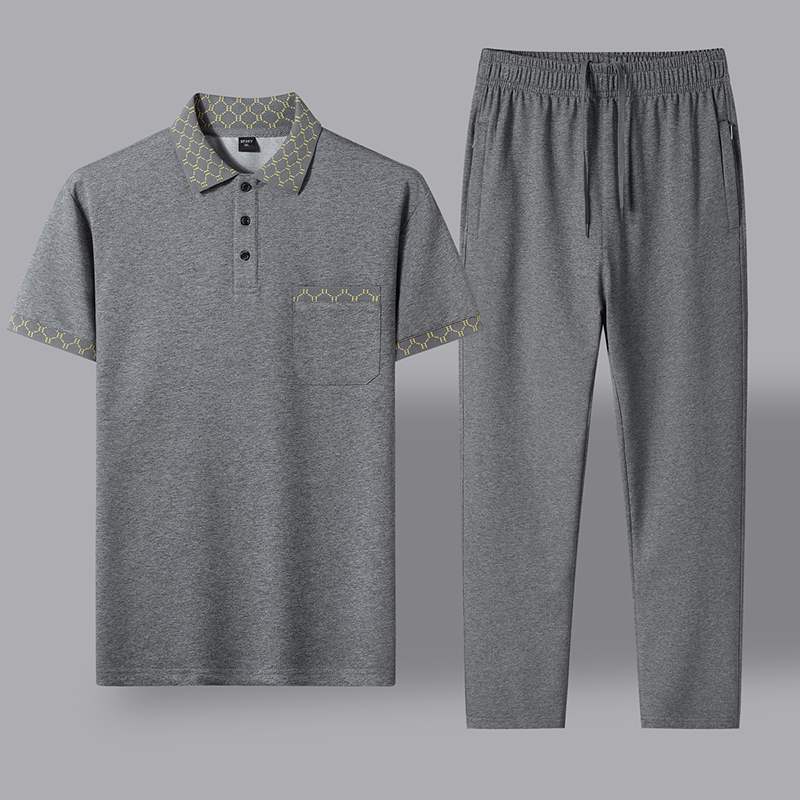 Wilco спортивный костюм для среднего и пожилого возраста, мужская рубашка-поло, хлопковая футболка с короткими рукавами, брюки, повседневный комплект из двух предметов, папа, светло-серый