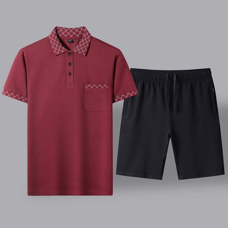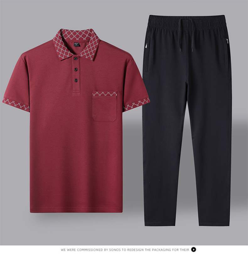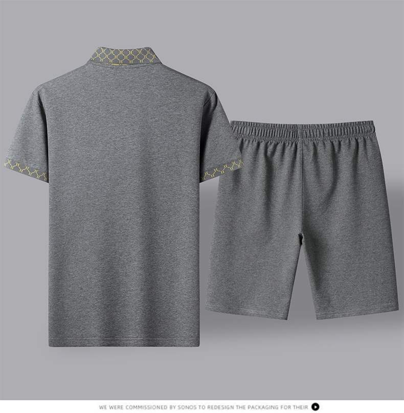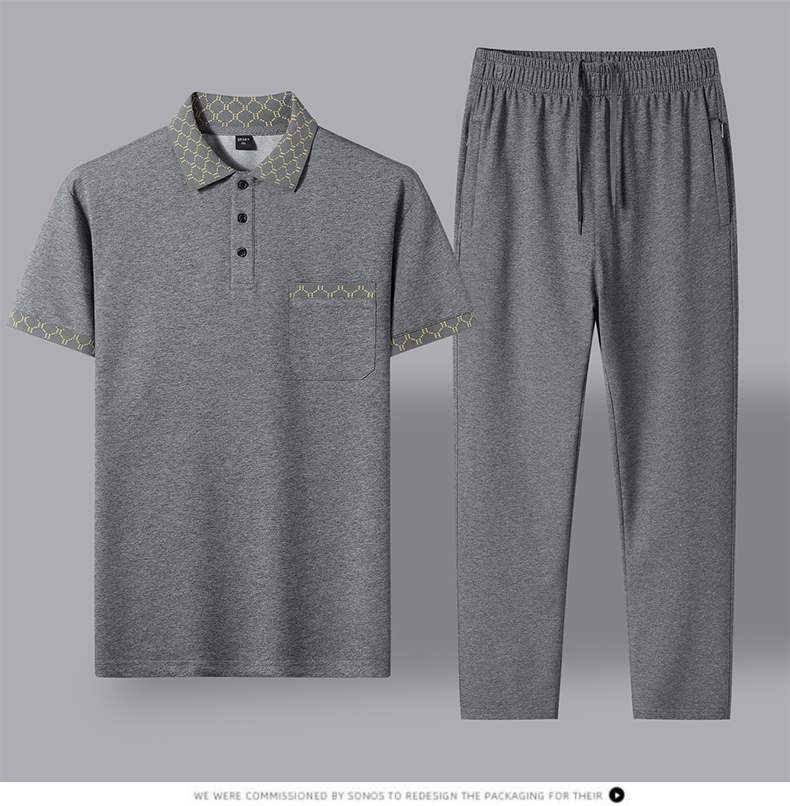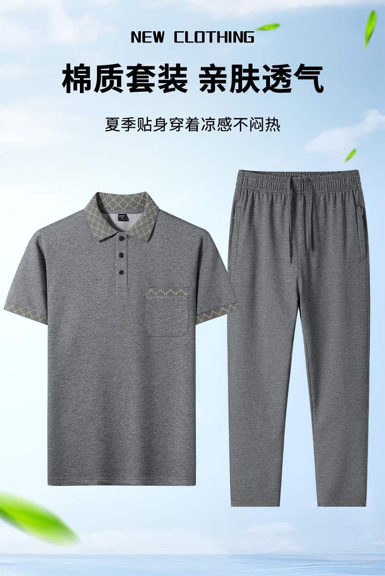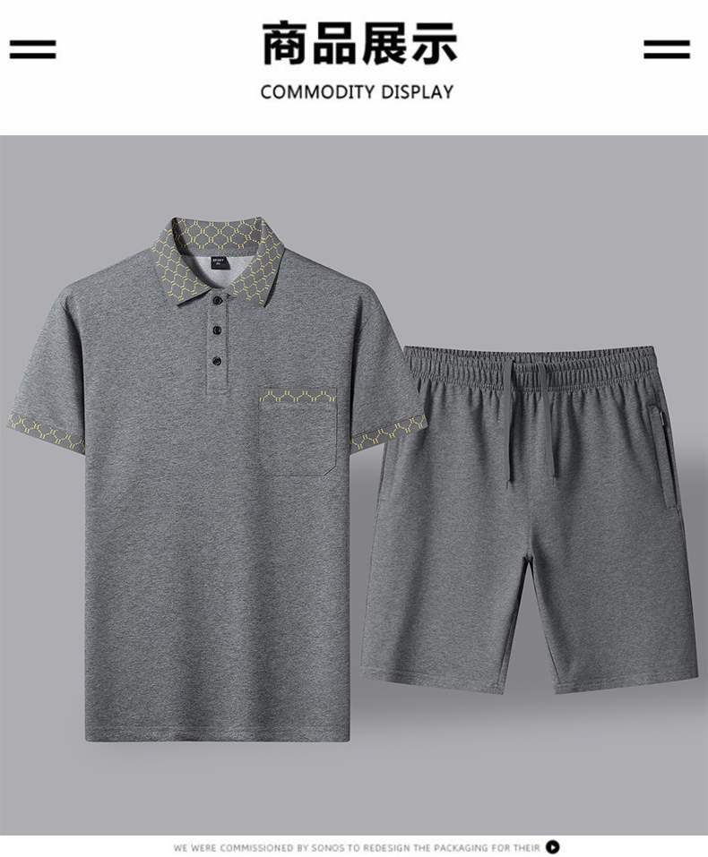 Wilco спортивный костюм для среднего и пожилого возраста, мужская рубашка-поло, хлопковая футболка с короткими рукавами, брюки, повседневный комплект из двух предметов, папа, светло-серый
