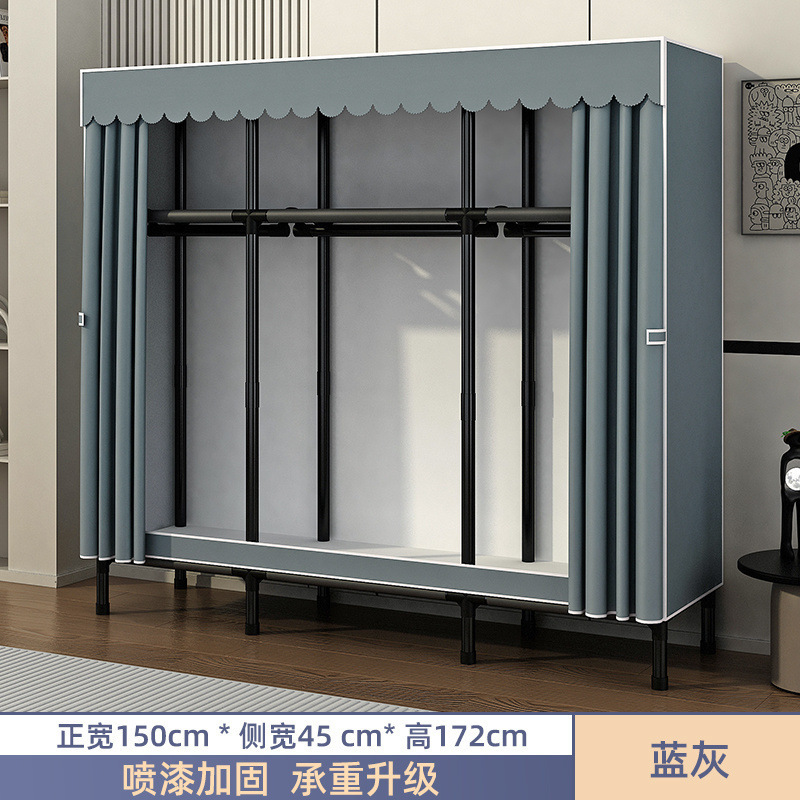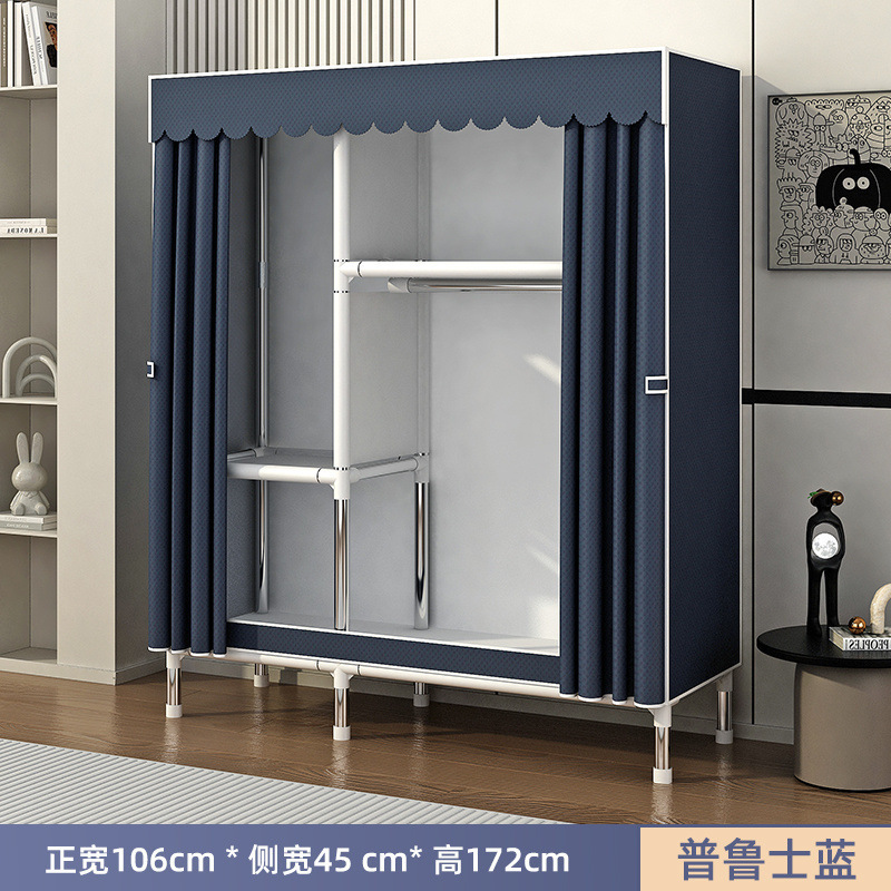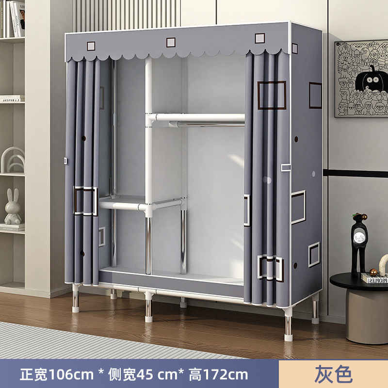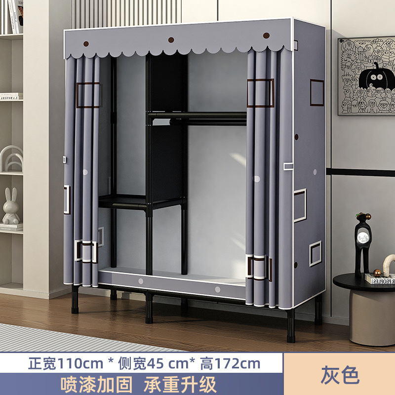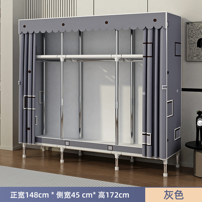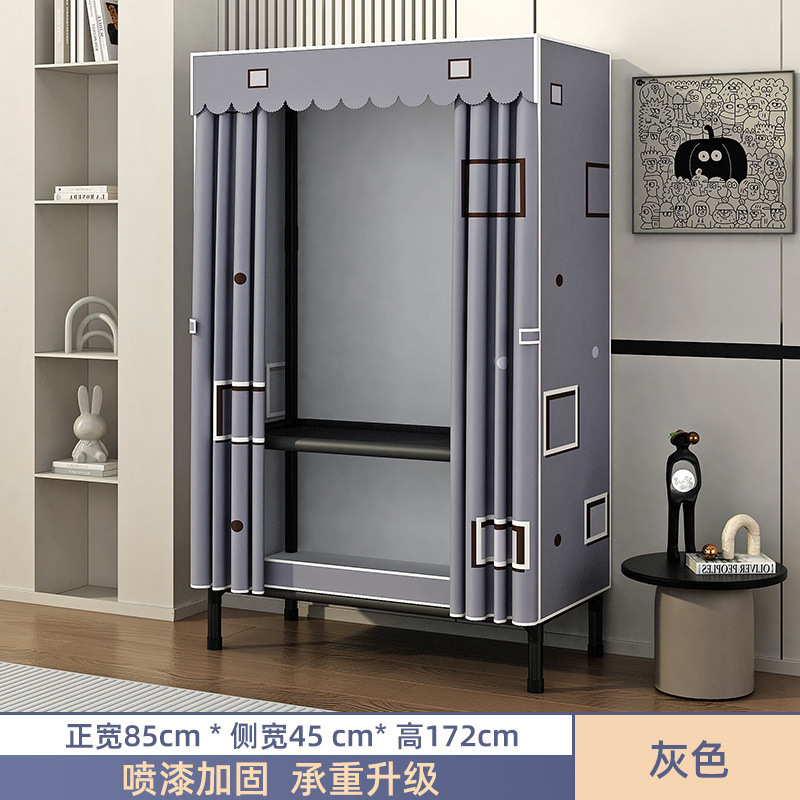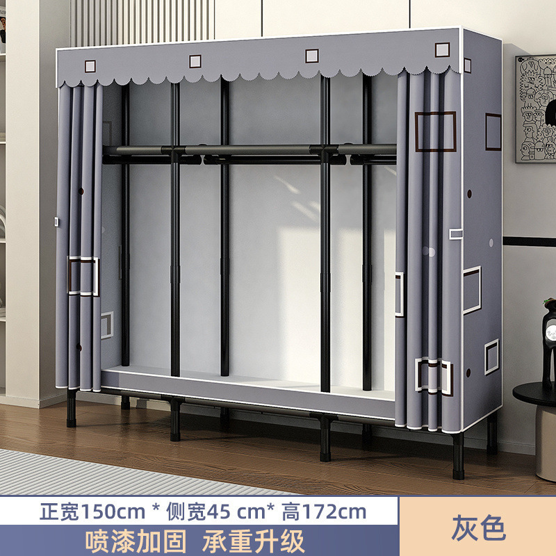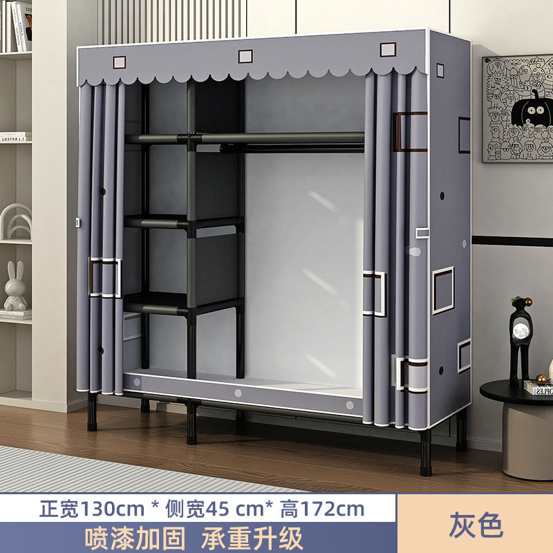 Простой шкаф для сборки домашней спальни, цельнометаллический каркас, шкаф из утолщенной и усиленной ткани, прочный и долговечный, подходит для хранения в арендованном жилье.