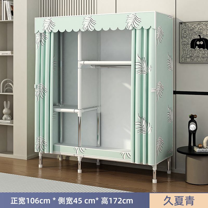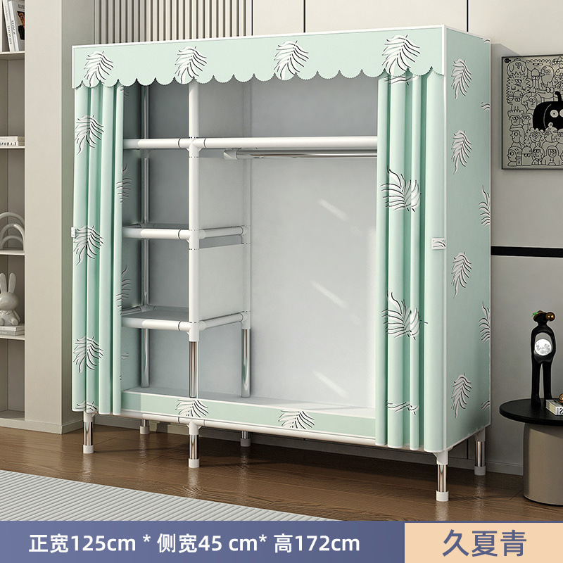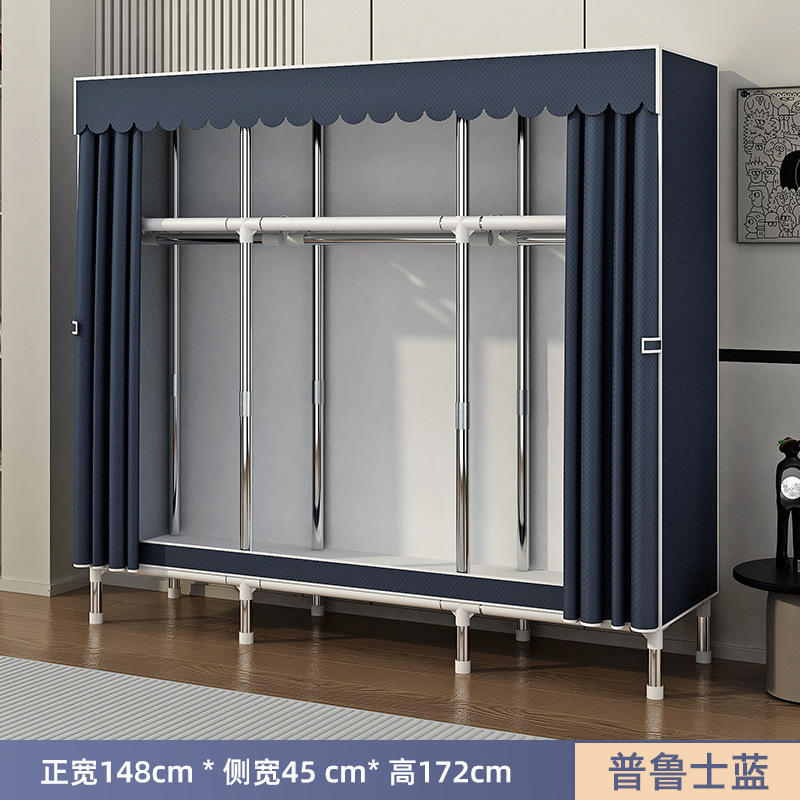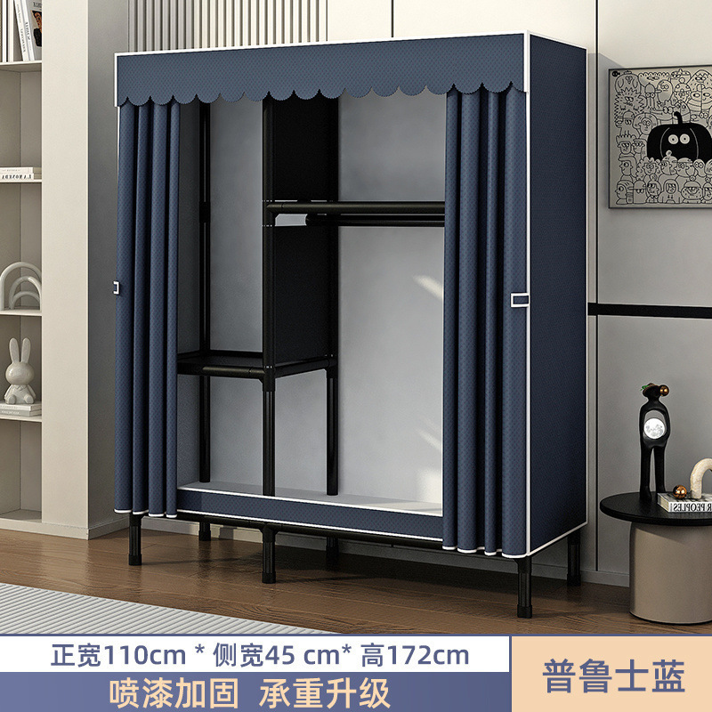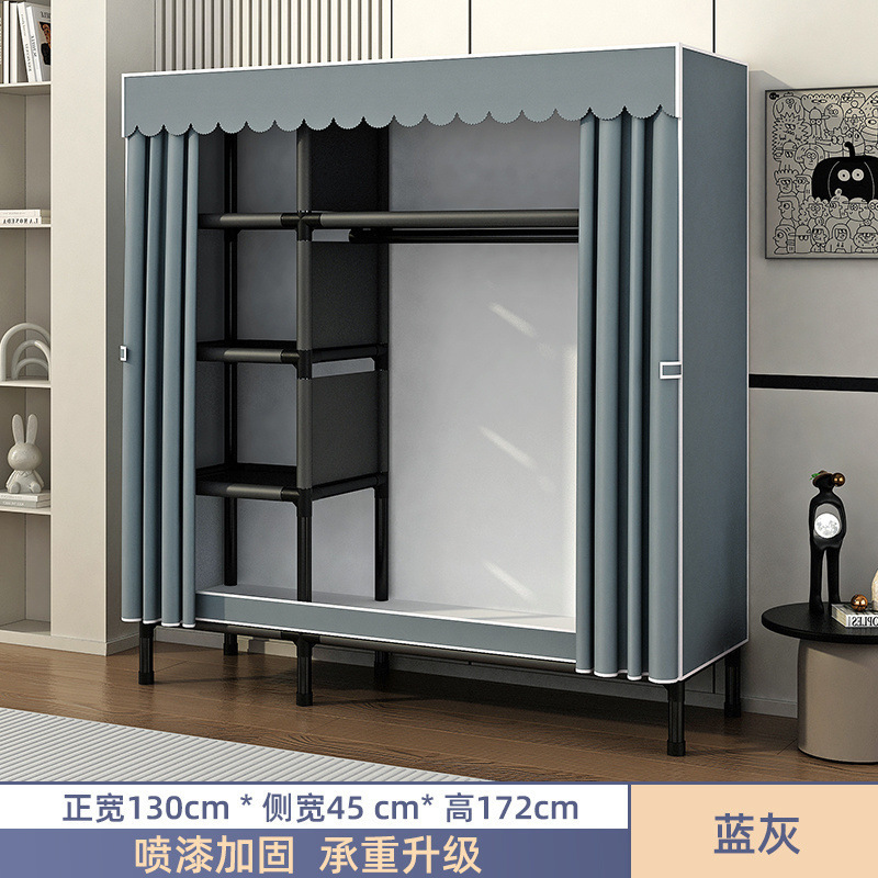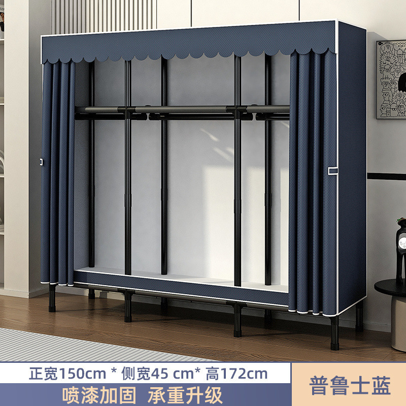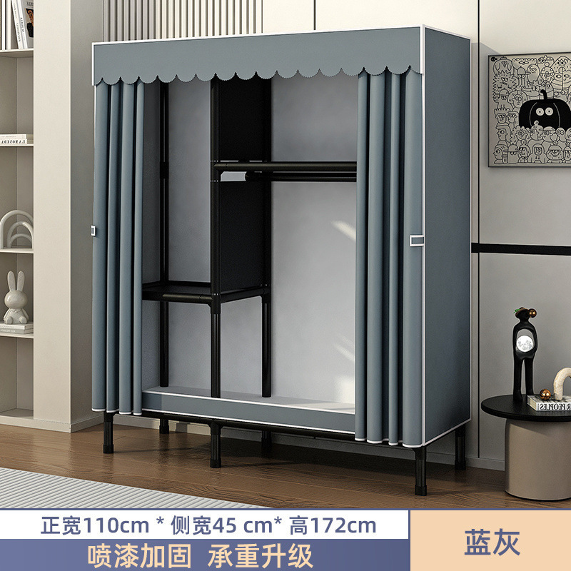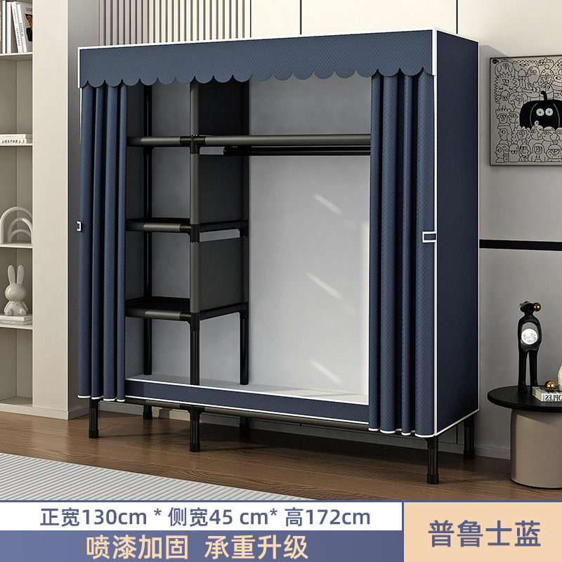 Простой шкаф для сборки домашней спальни, цельнометаллический каркас, шкаф из утолщенной и усиленной ткани, прочный и долговечный, подходит для хранения в арендованном жилье.