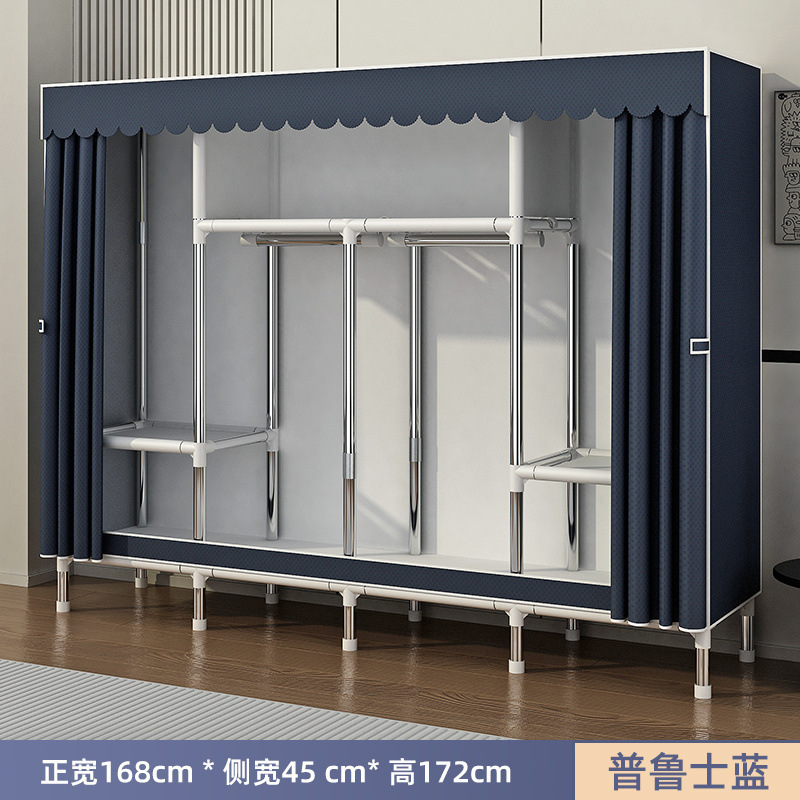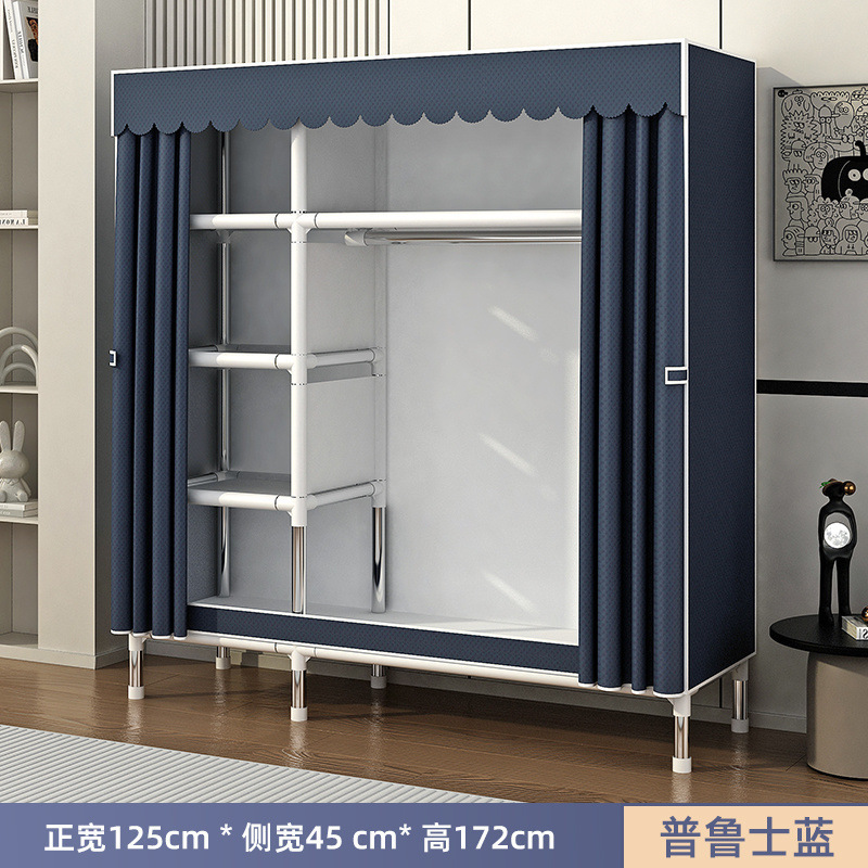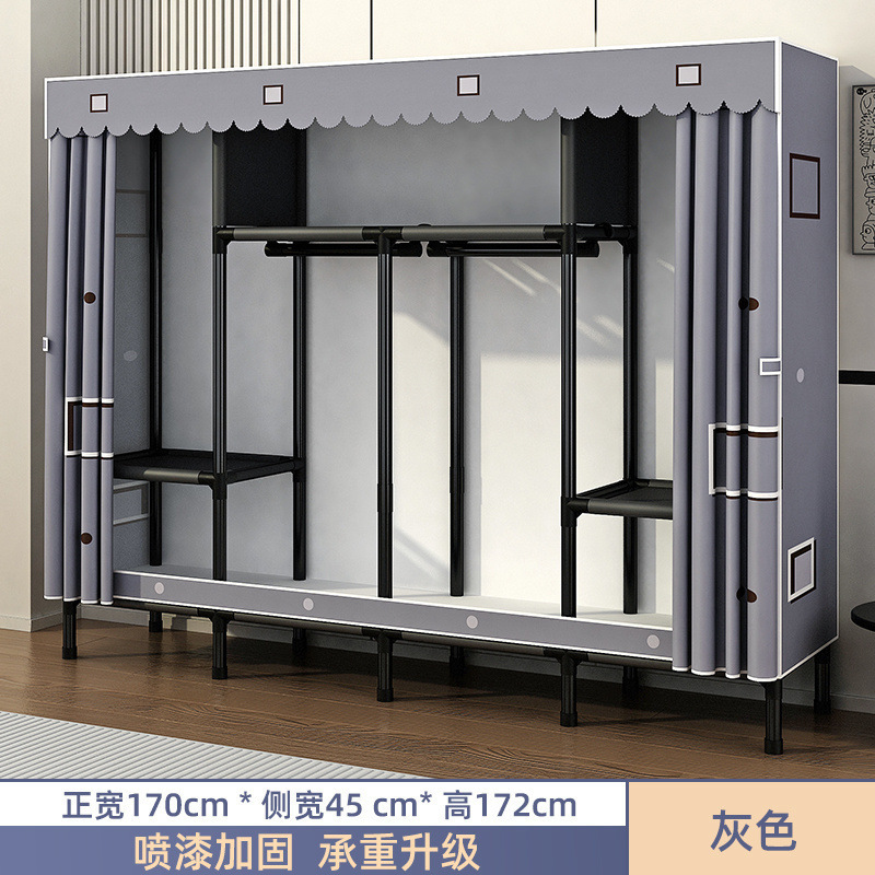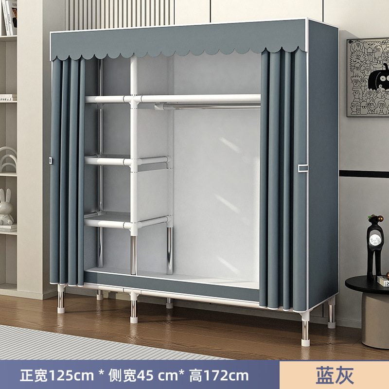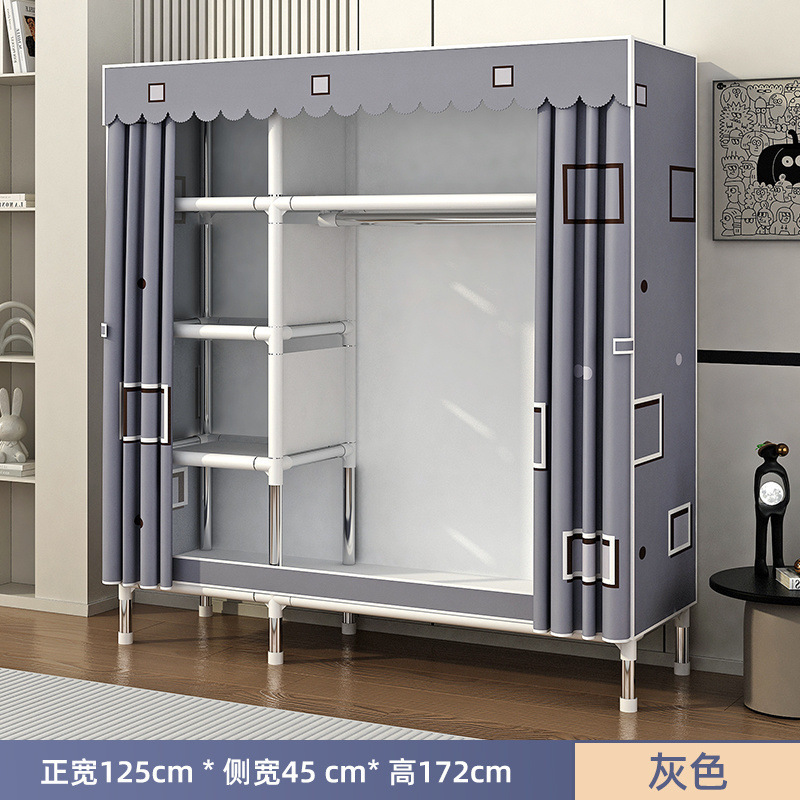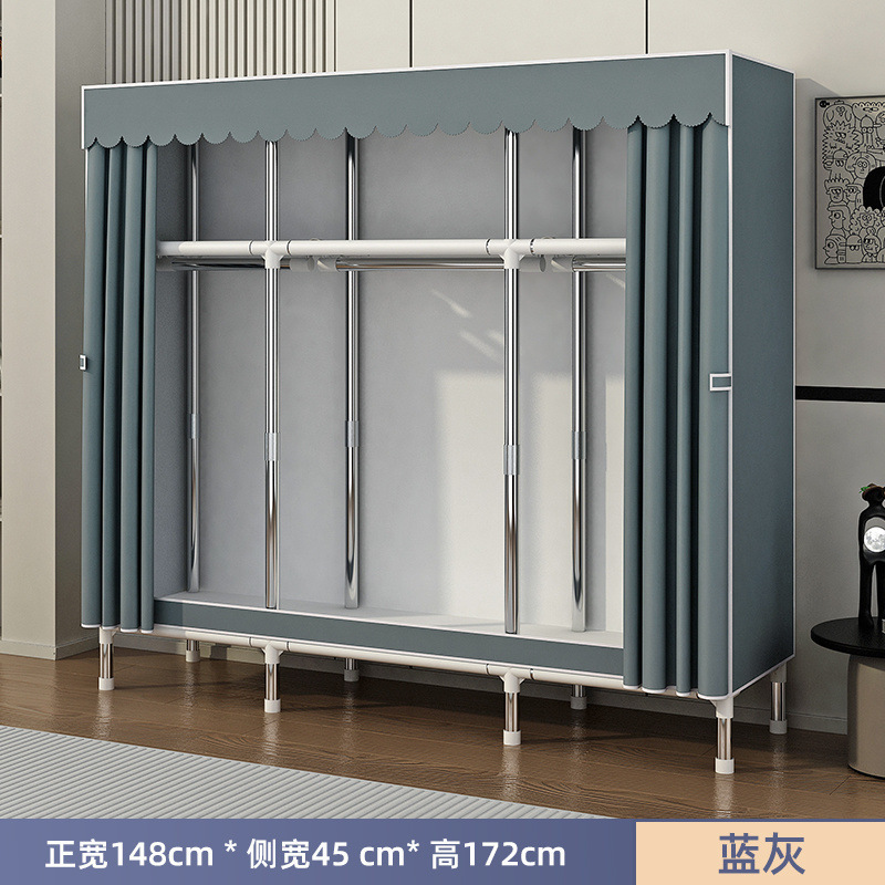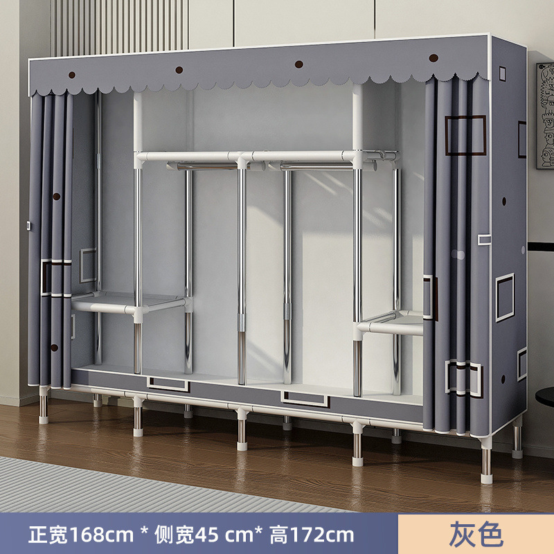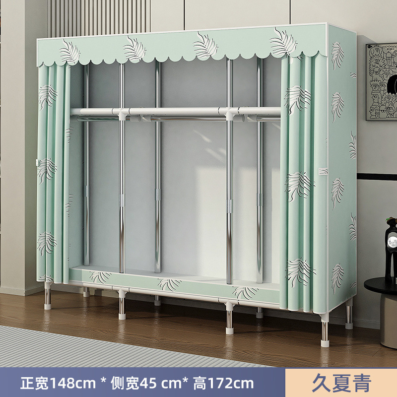 Простой шкаф для сборки домашней спальни, цельнометаллический каркас, шкаф из утолщенной и усиленной ткани, прочный и долговечный, подходит для хранения в арендованном жилье.