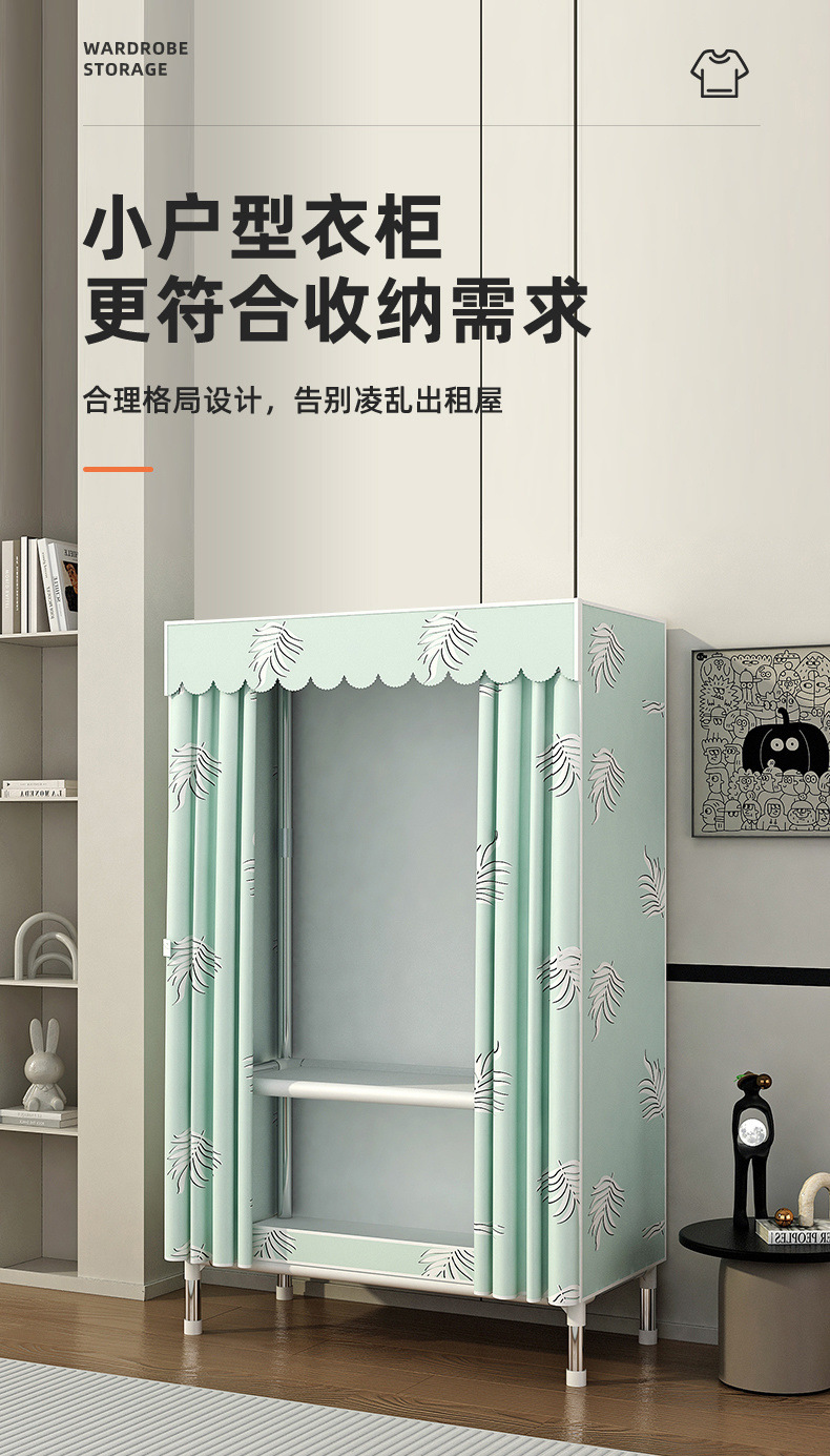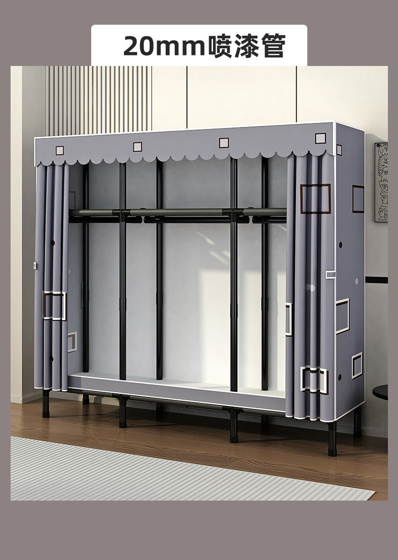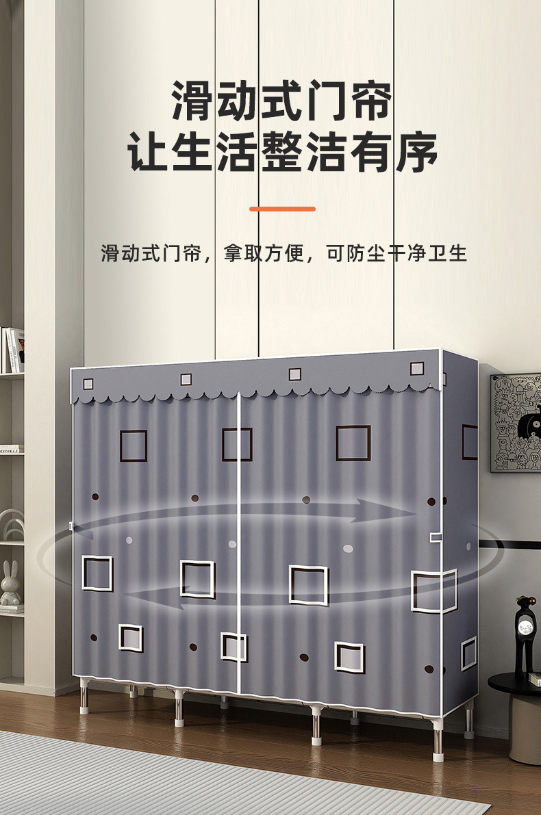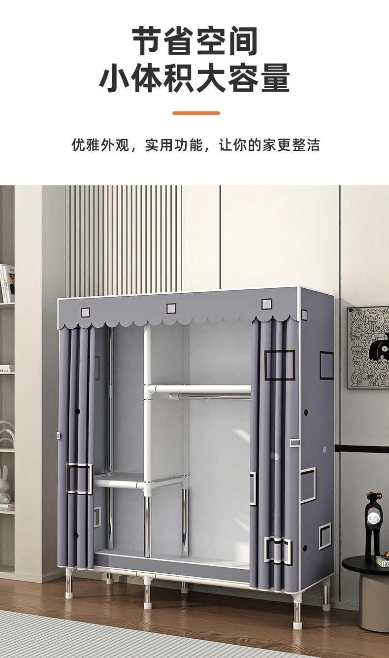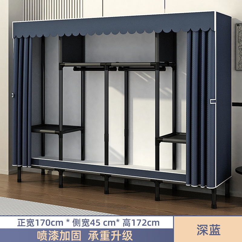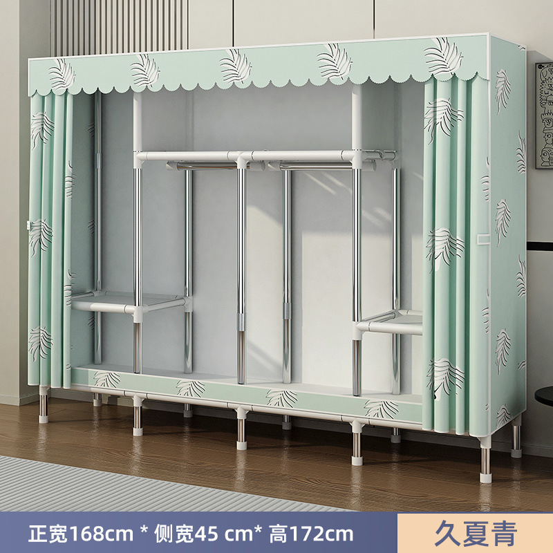 Простой шкаф для сборки домашней спальни, цельнометаллический каркас, шкаф из утолщенной и усиленной ткани, прочный и долговечный, подходит для хранения в арендованном жилье.