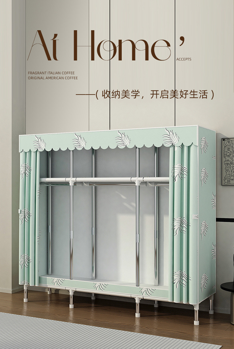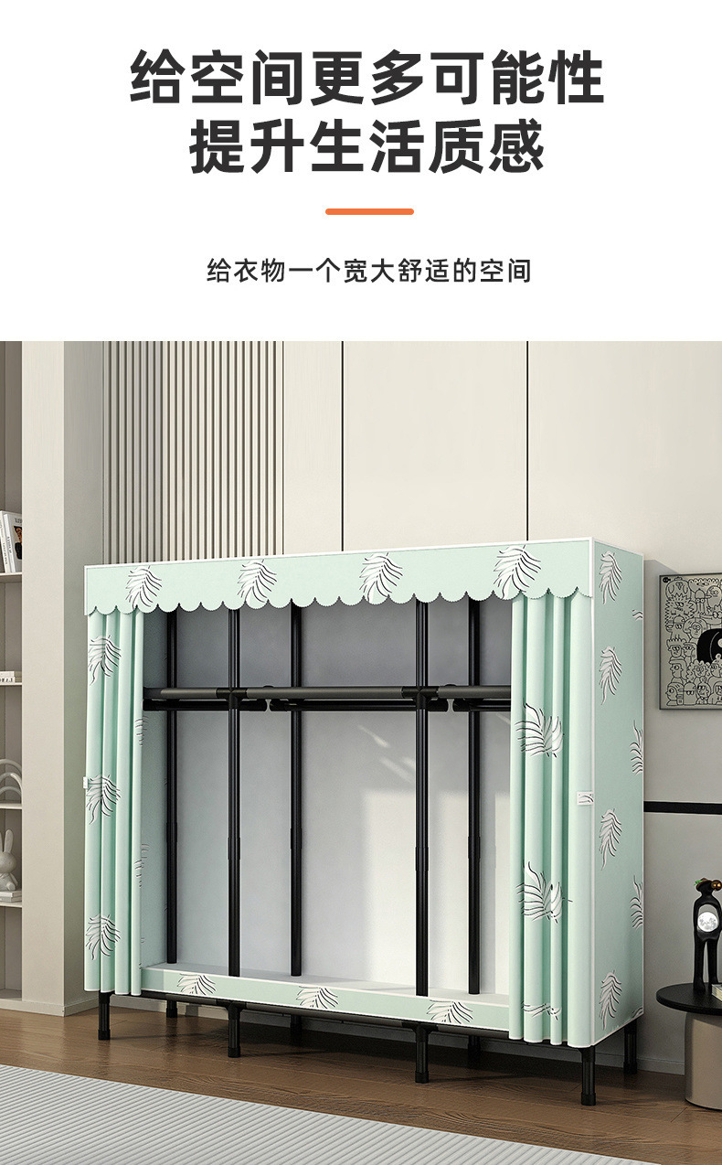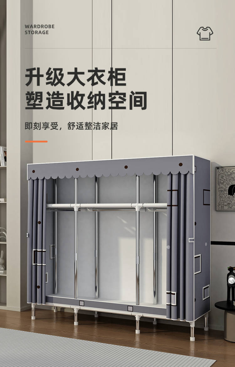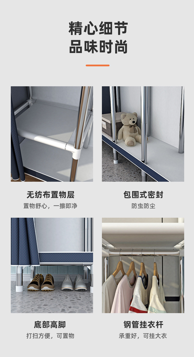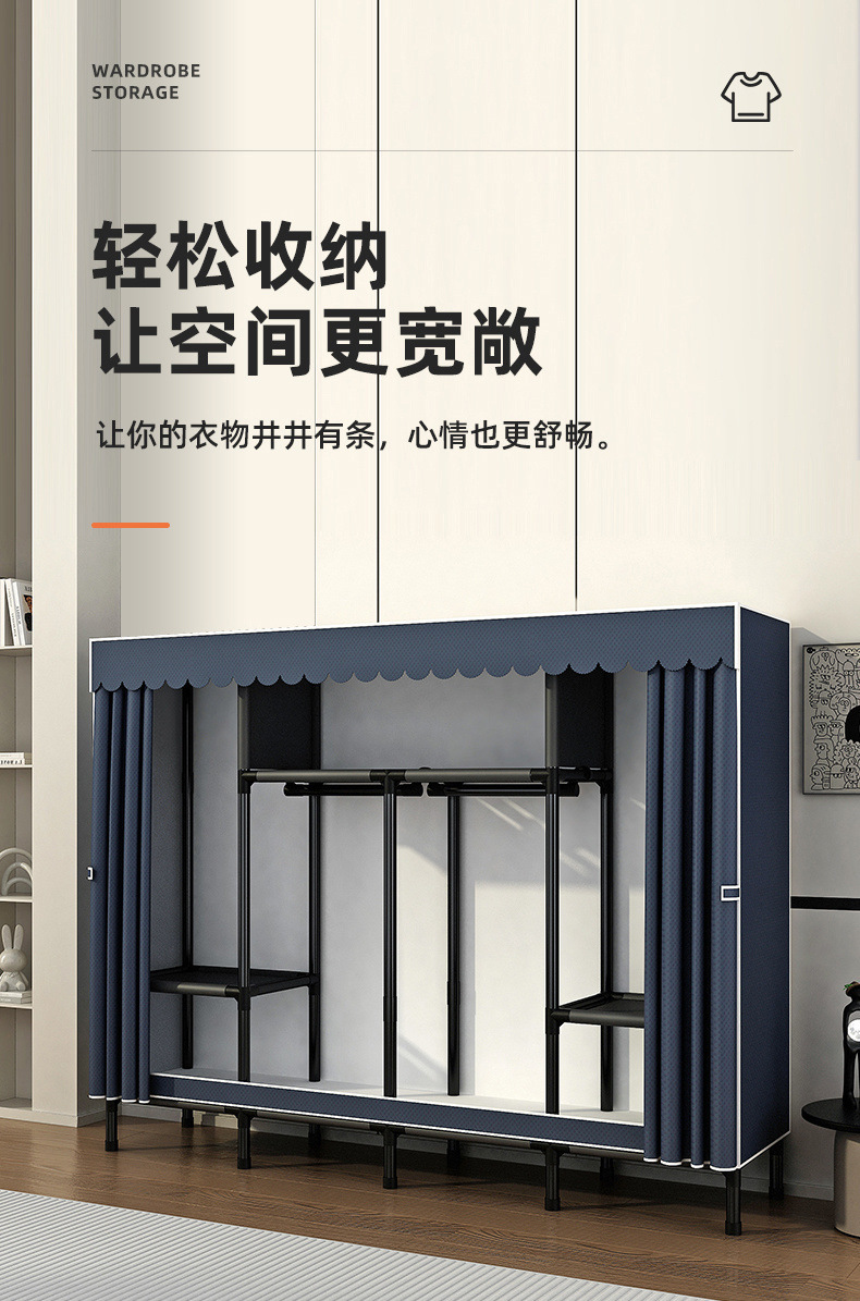 Простой шкаф для сборки домашней спальни, цельнометаллический каркас, шкаф из утолщенной и усиленной ткани, прочный и долговечный, подходит для хранения в арендованном жилье.