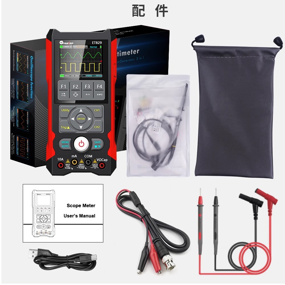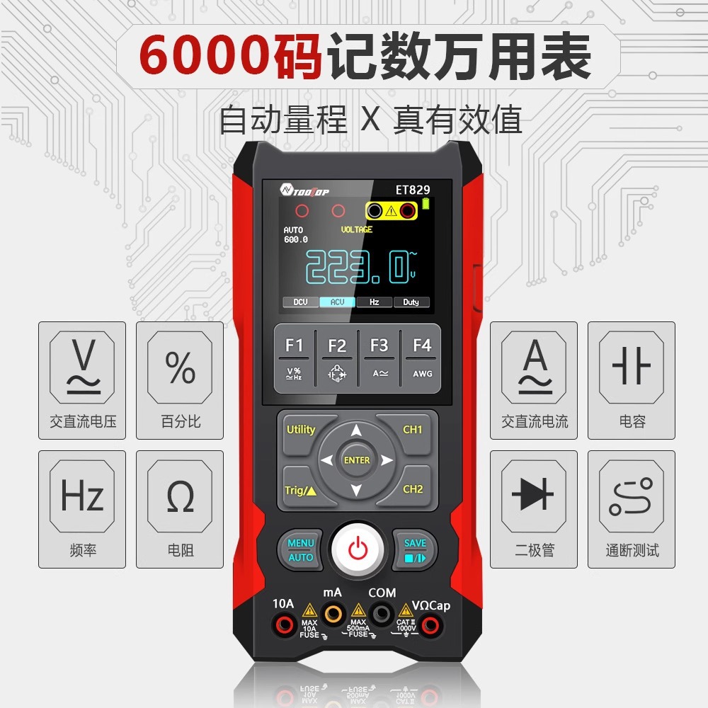 ET829 двухканальный цветной экран осциллографа генератор сигналов мультиметр три в одном полоса пропускания 80 МГц 250 мс/с