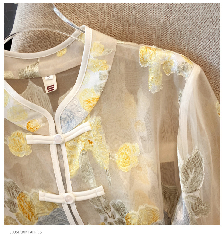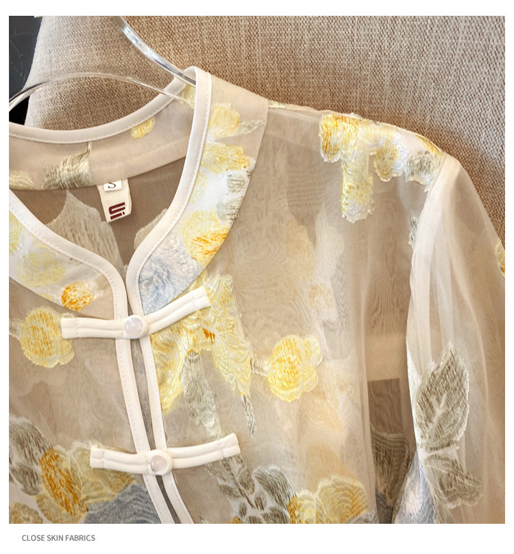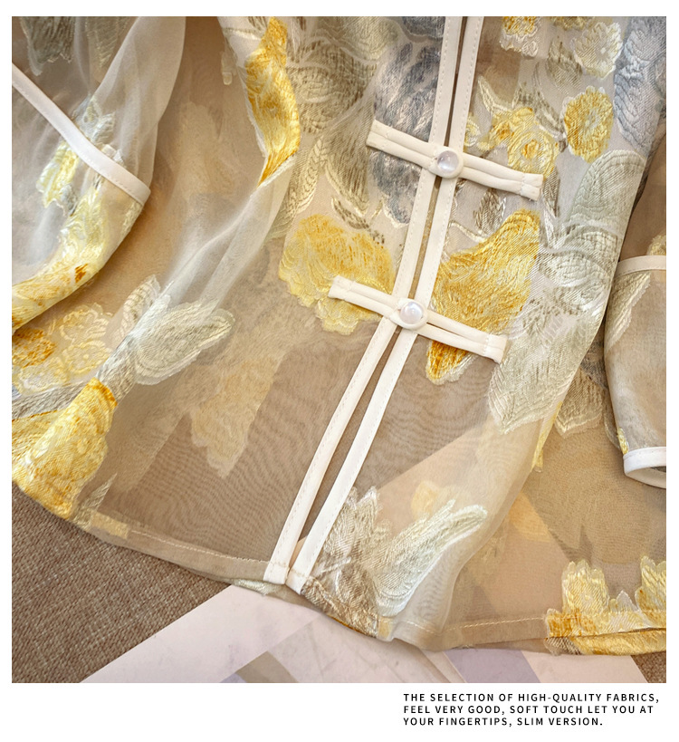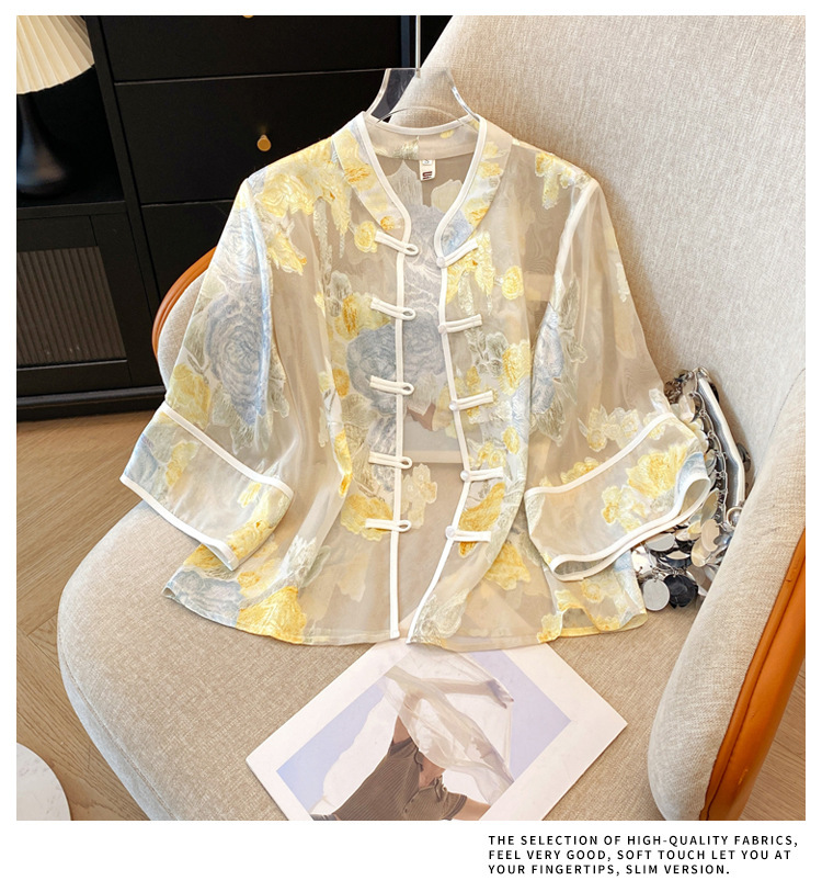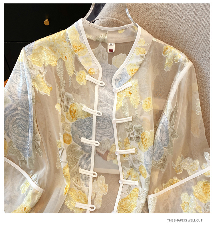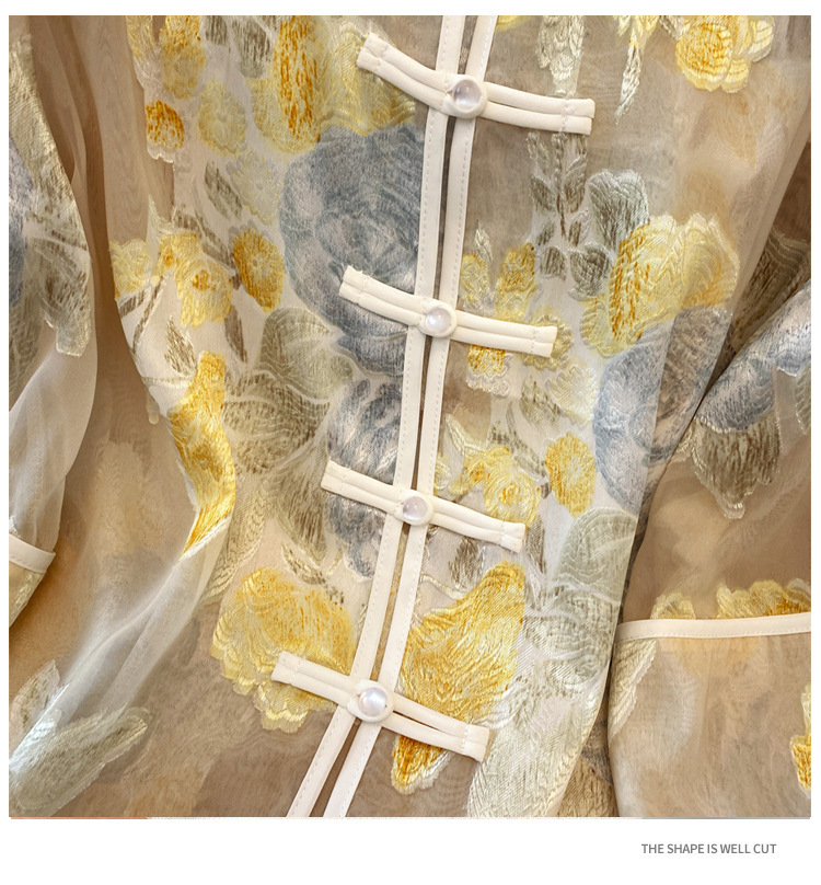 Настоящая фотография нового классического шелкового кардигана в китайском стиле в стиле ретро с вышивкой, женский солнцезащитный кардиган ручной работы с пуговицами из бисера, Золотой пион