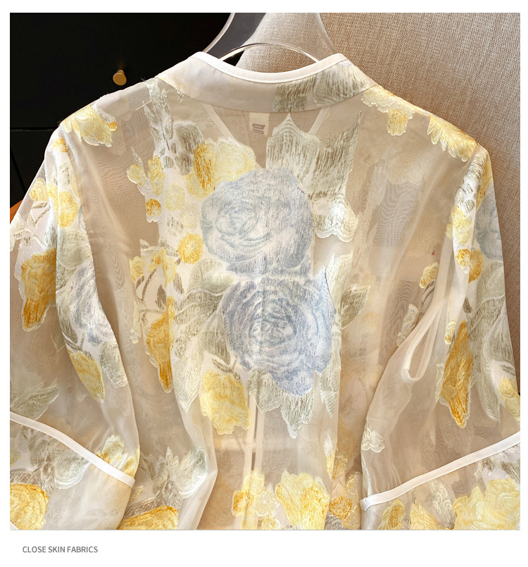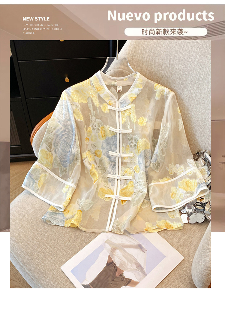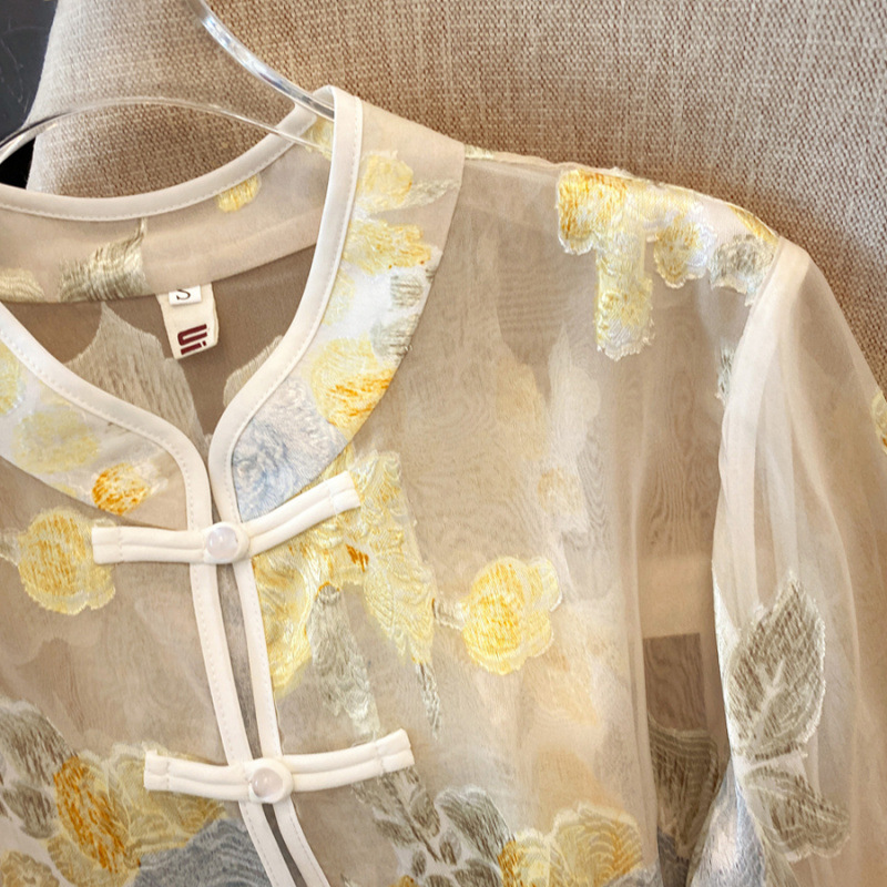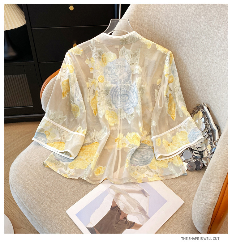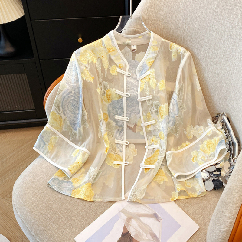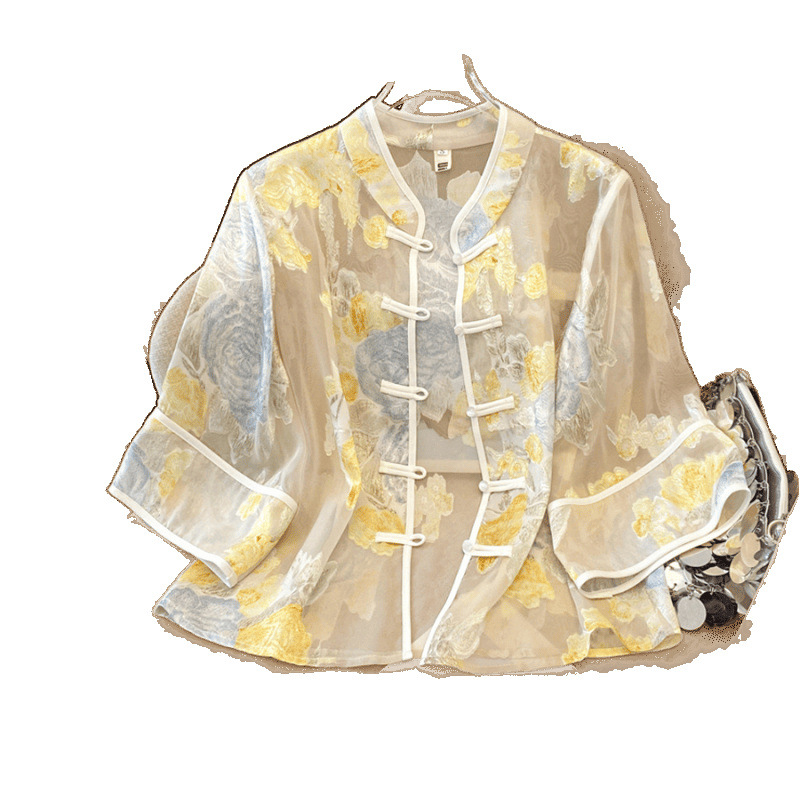 Настоящая фотография нового классического шелкового кардигана в китайском стиле в стиле ретро с вышивкой, женский солнцезащитный кардиган ручной работы с пуговицами из бисера, Золотой пион