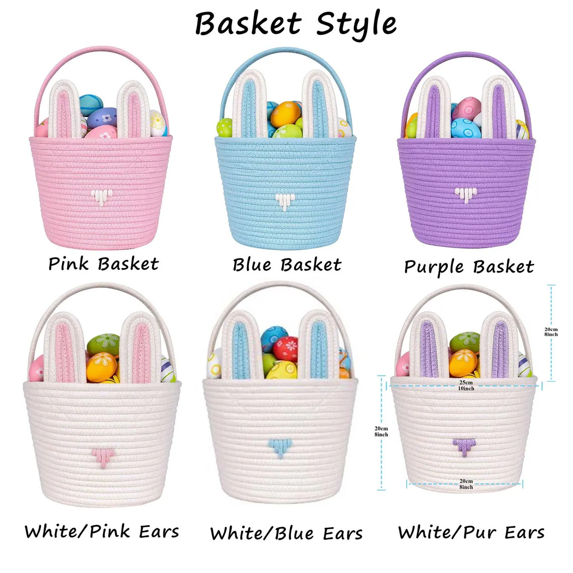 Плетёная корзина для хранения из хлопкового каната с вышивкой в виде кроличьих ушей, подарочная корзина Etsy, пасхальная корзина