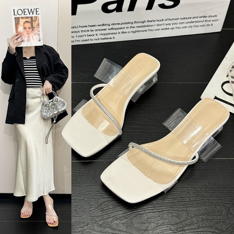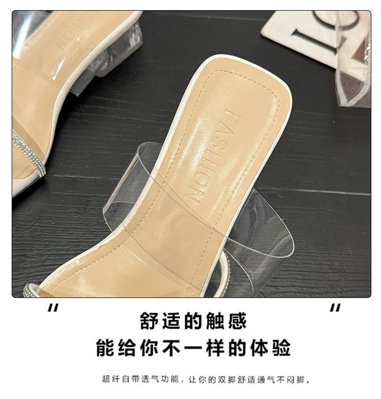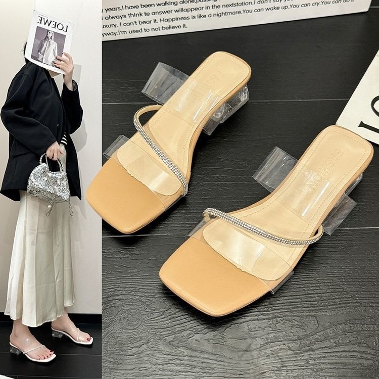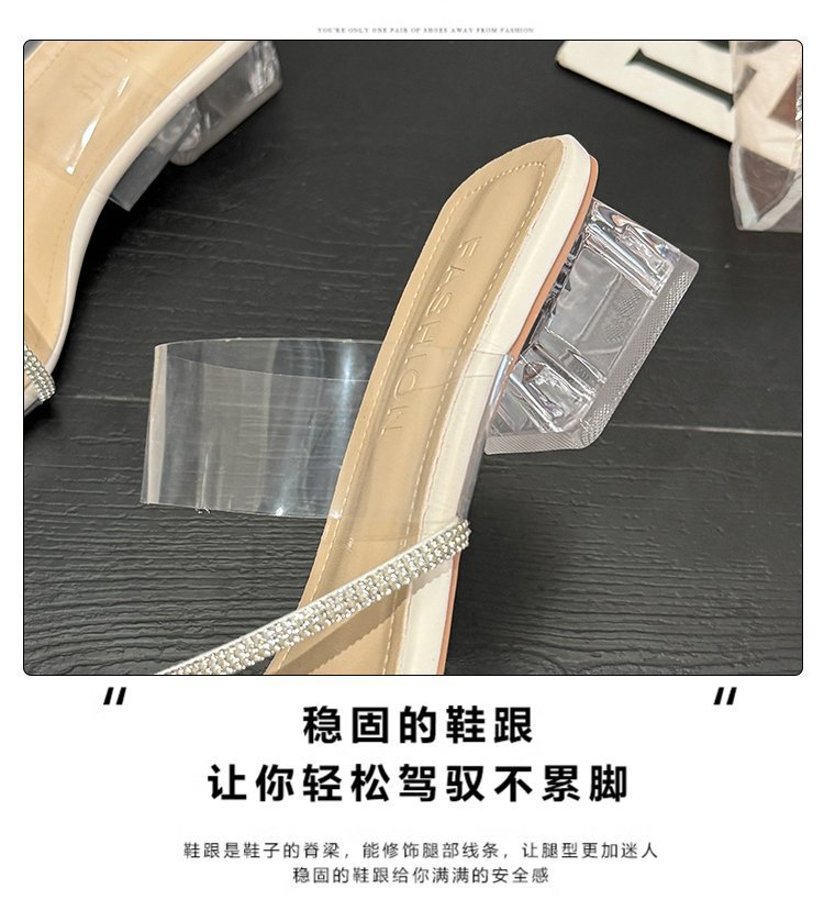 Женские летние босоножки 2025 года, новая мода, круглый носок, толстый каблук, кристаллы, интернет-хит