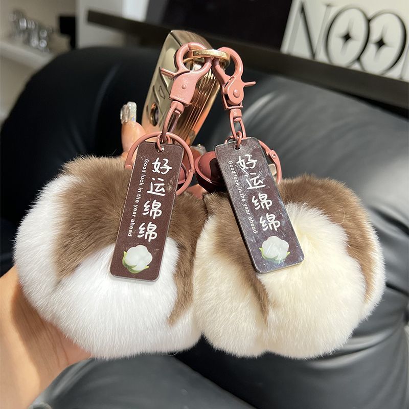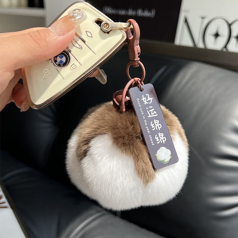 Имитация меха кролика Рекс, хлопок премиум-класса, автомобильный брелок, плюшевый шар, подвеска для школьной сумки