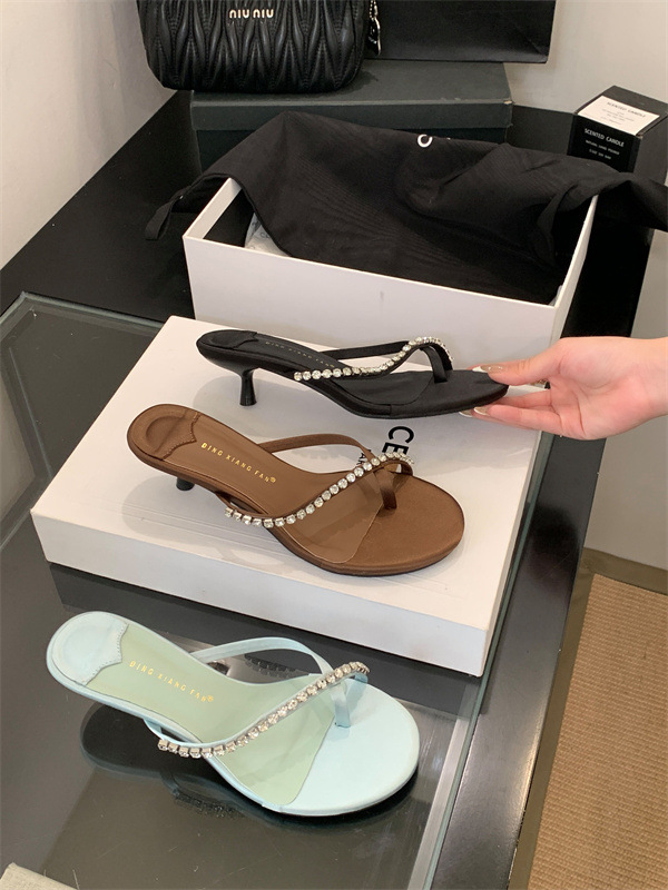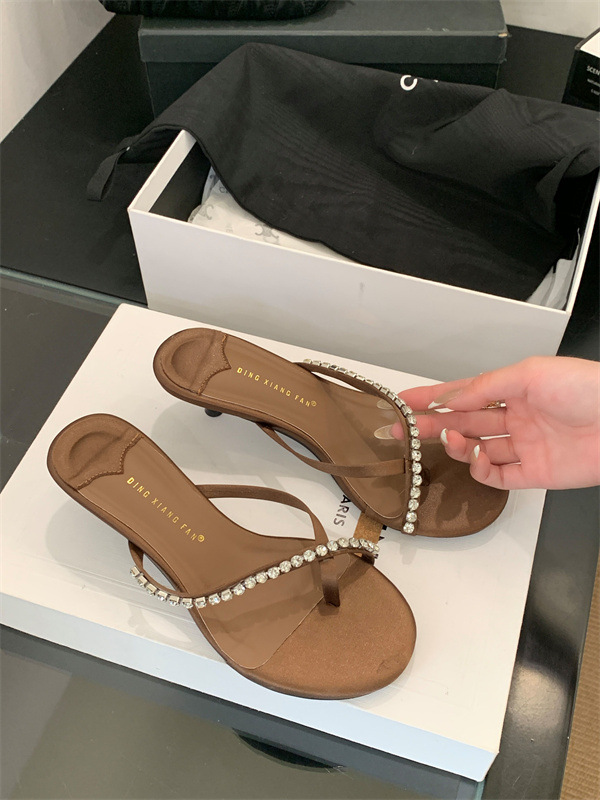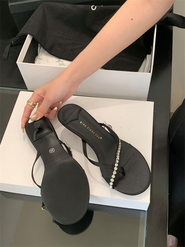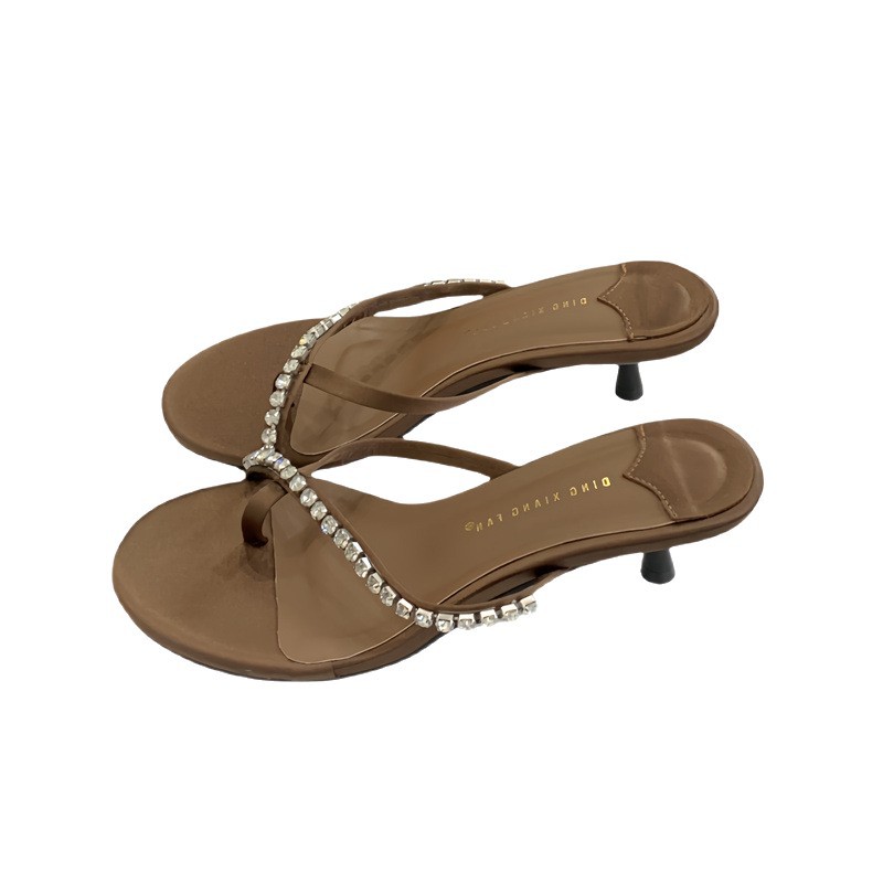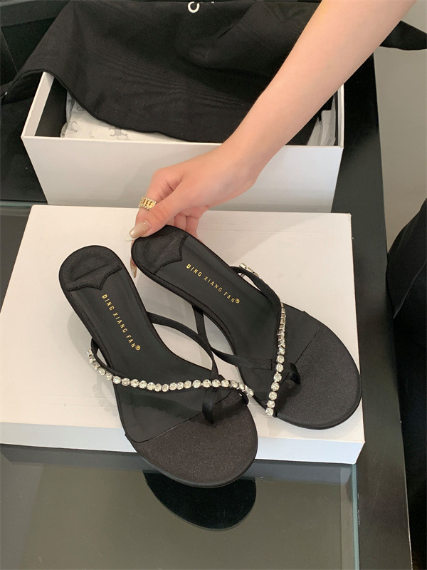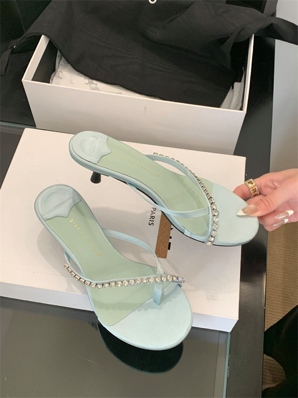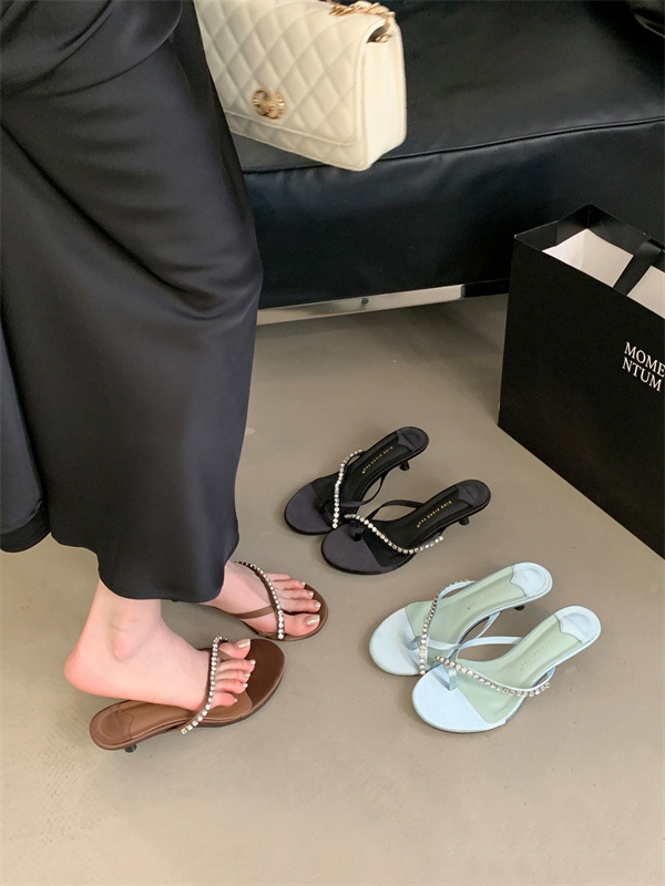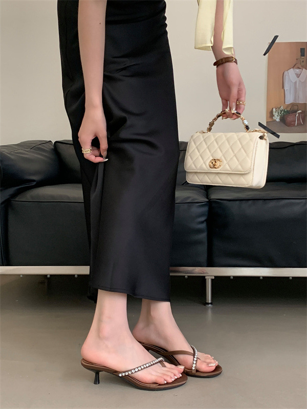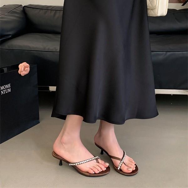 2025 новых летних босоножек на высоком каблуке с юбками, французские босоножки с одним ремешком и стразами, шлепанцы, вьетнамки