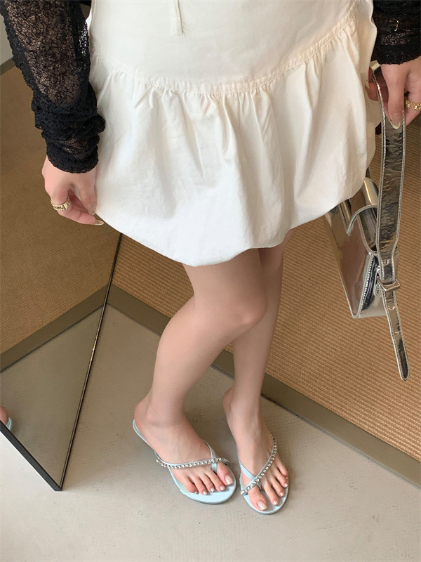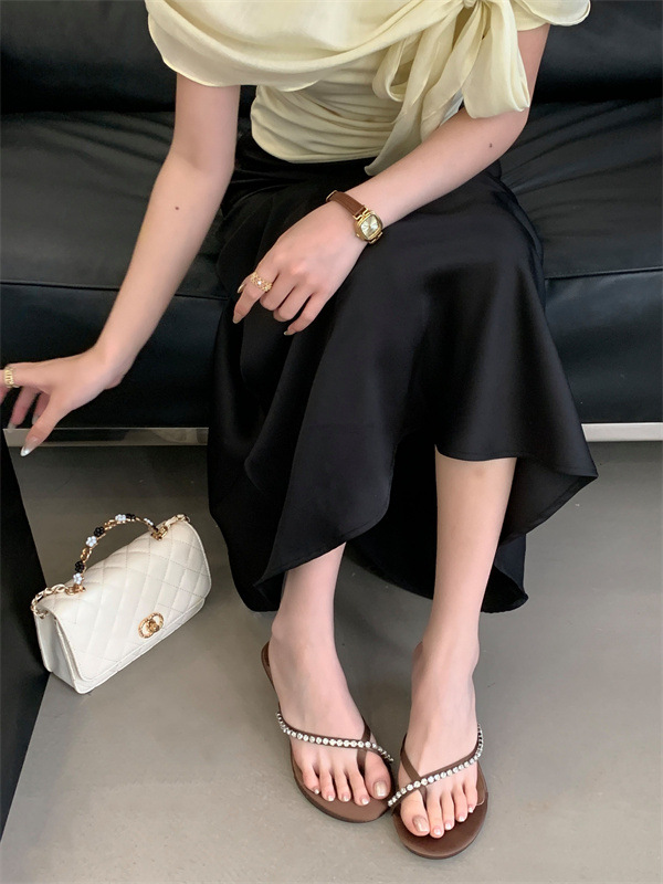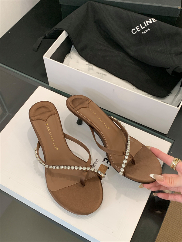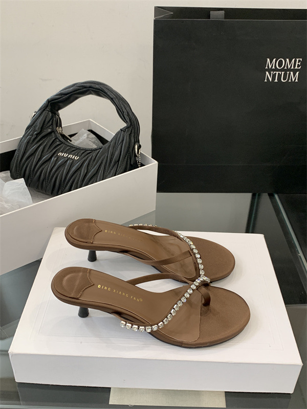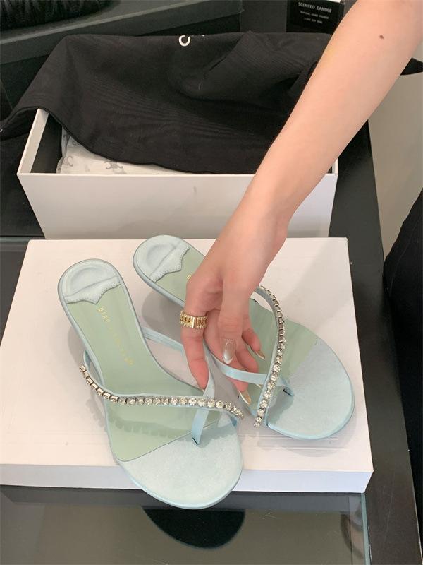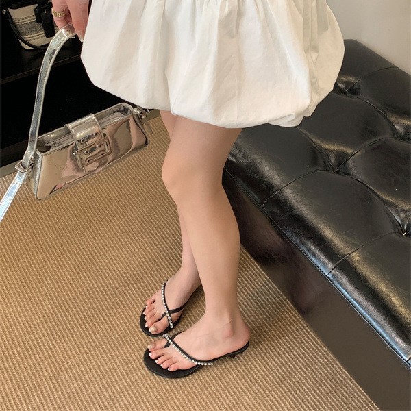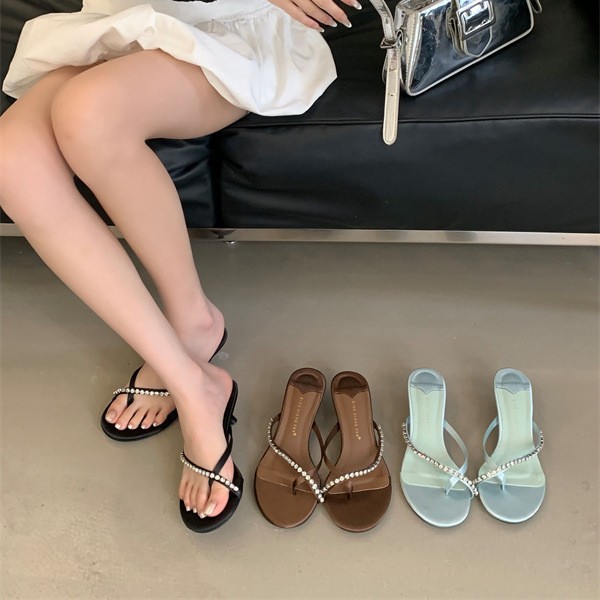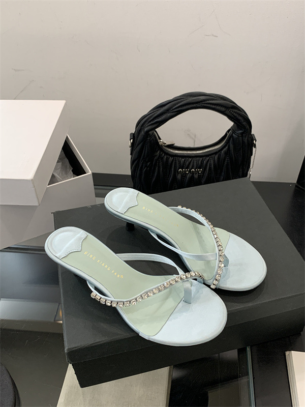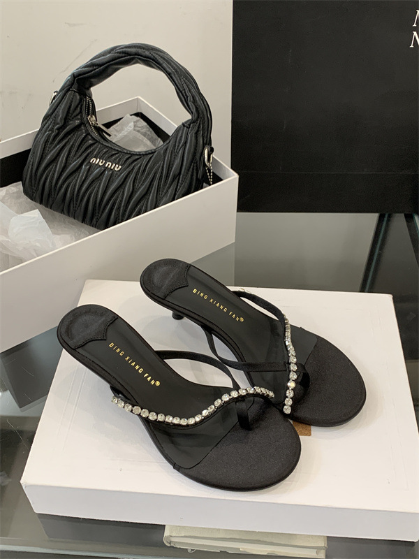 2025 новых летних босоножек на высоком каблуке с юбками, французские босоножки с одним ремешком и стразами, шлепанцы, вьетнамки