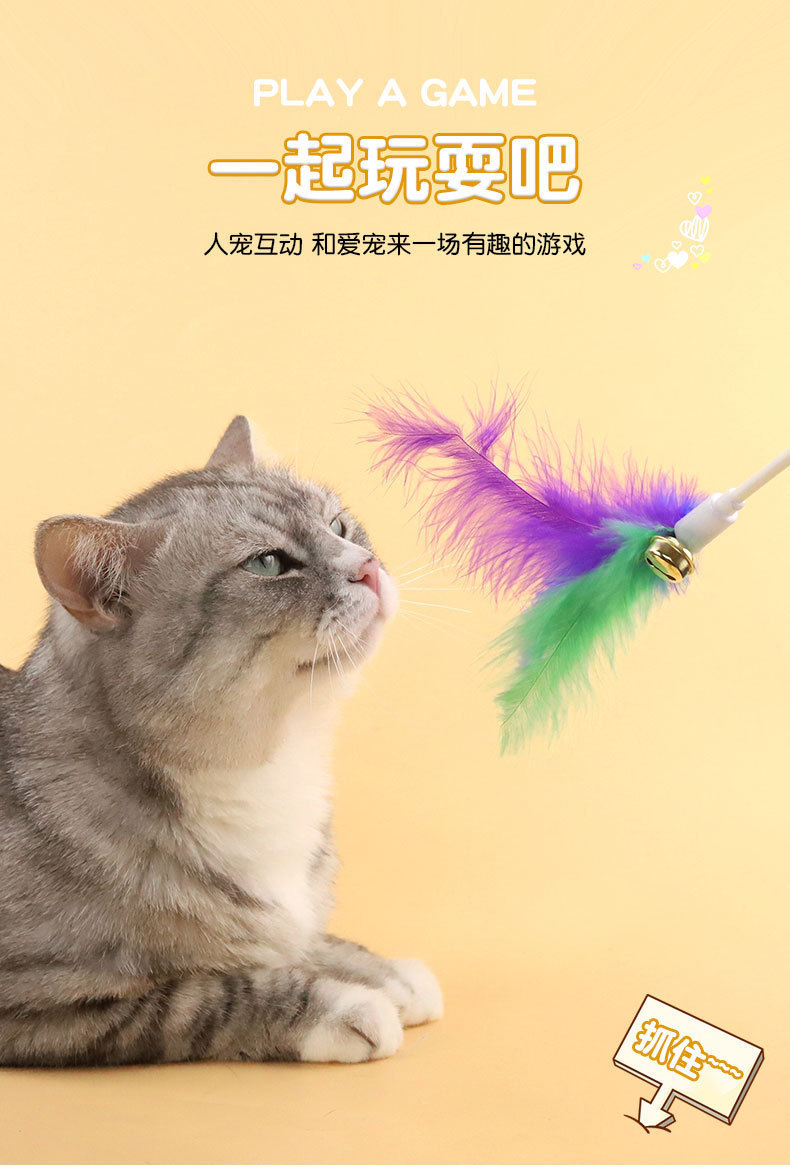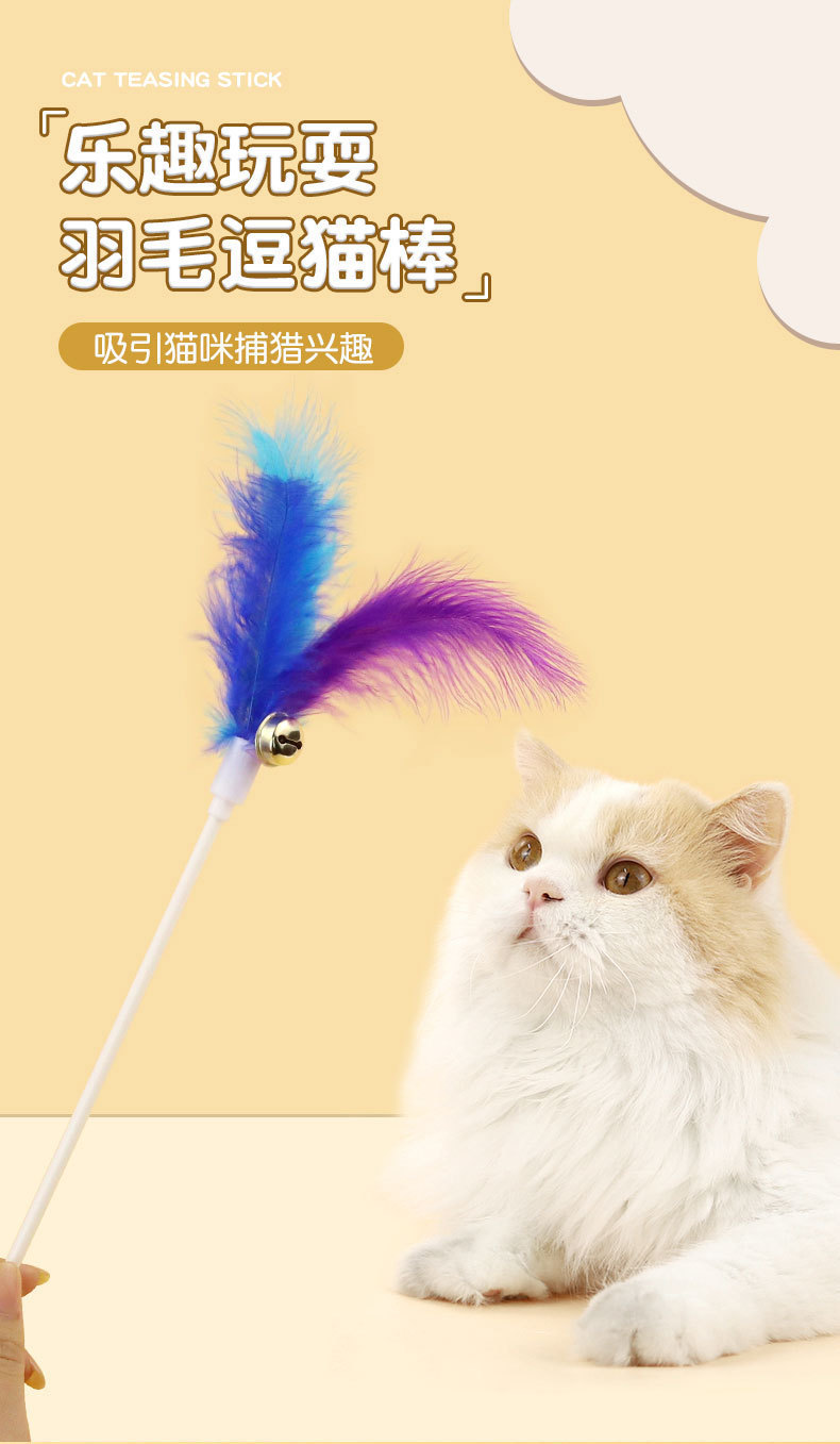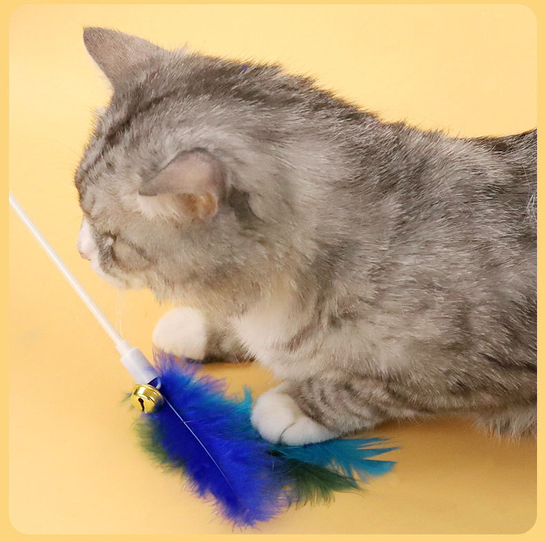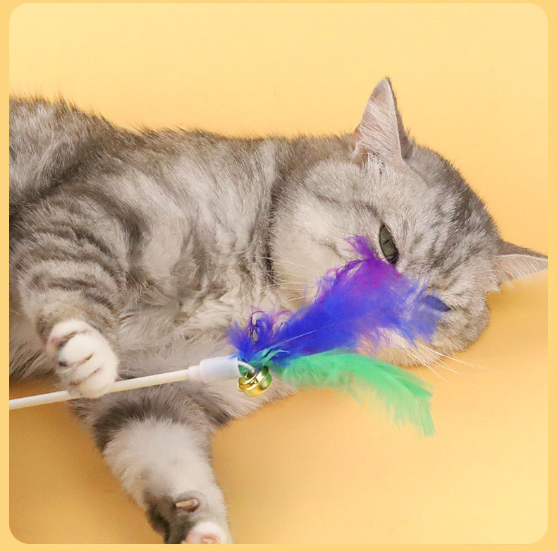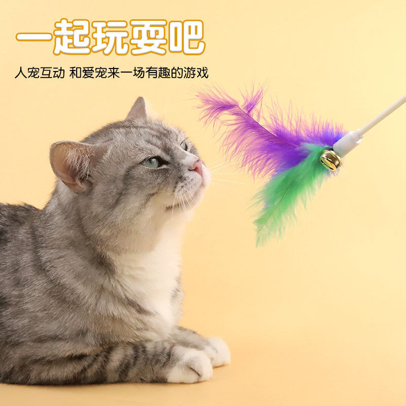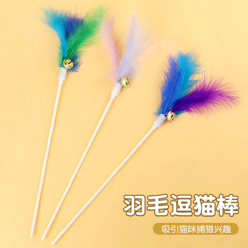 Оптовая продажа от производителя, палочка для кошачьих игр, смешанные цвета, колокольчик для кошек, перо, палочка для кошачьих игр, принадлежности для игрушек для домашних животных, игрушки для кошек, принадлежности