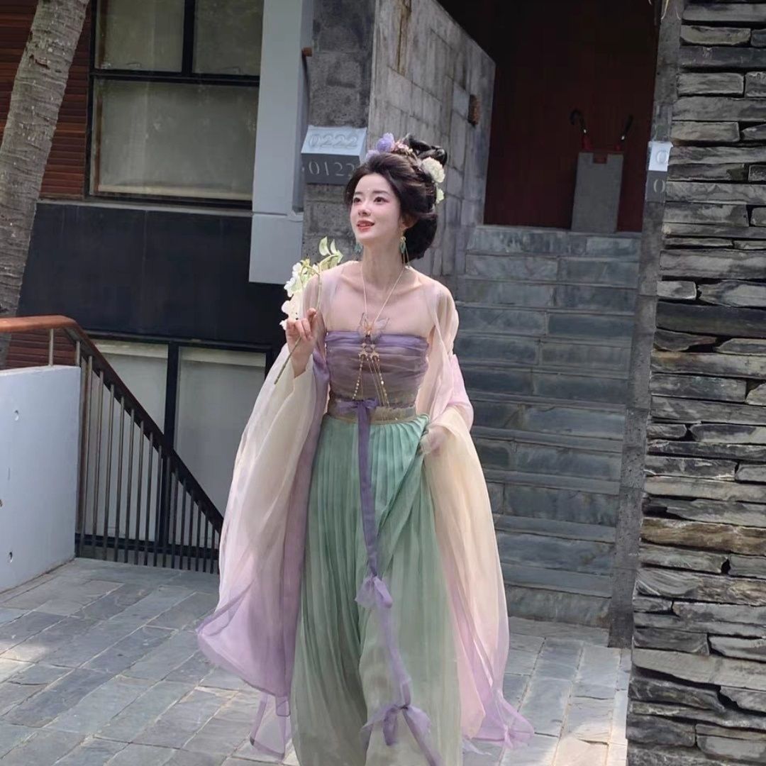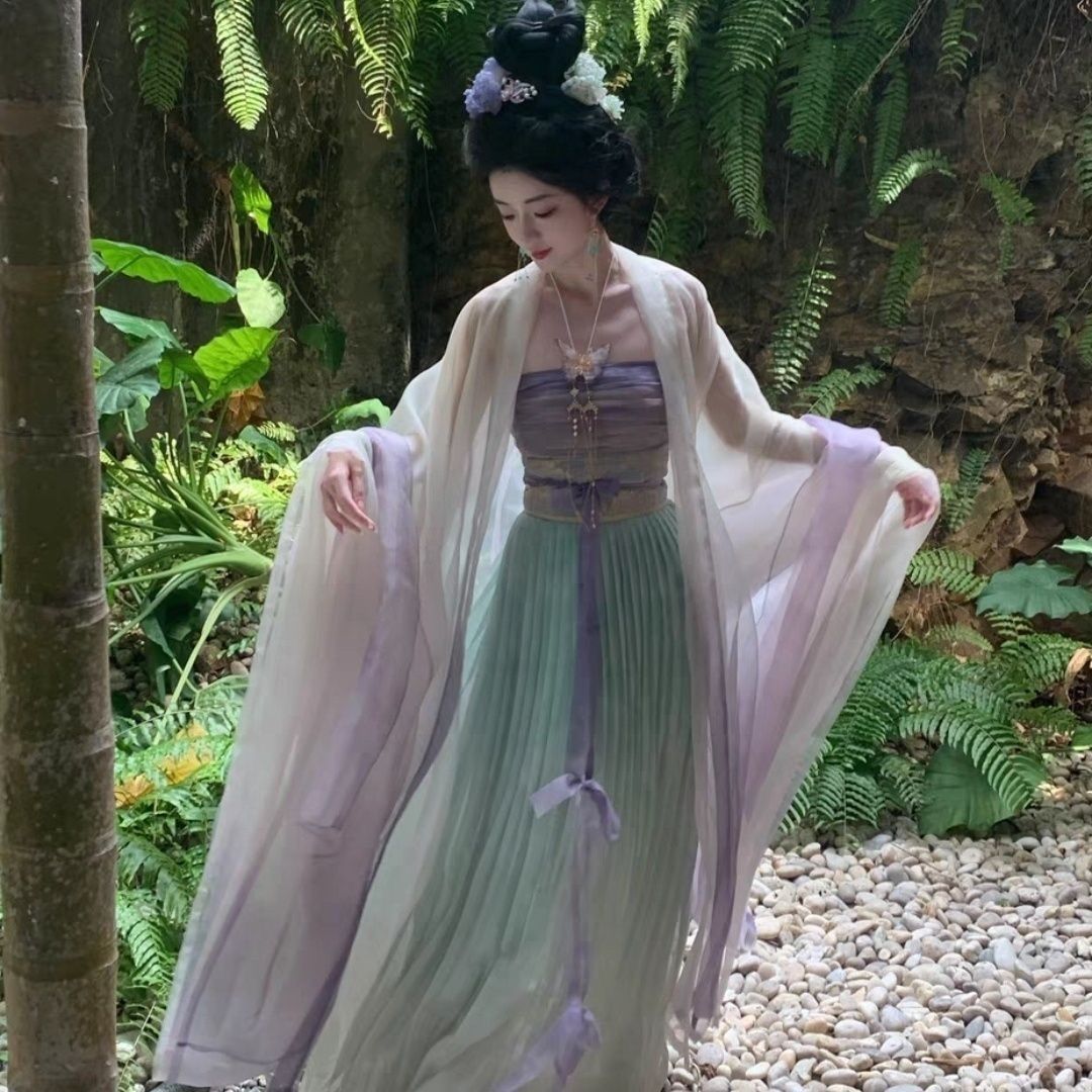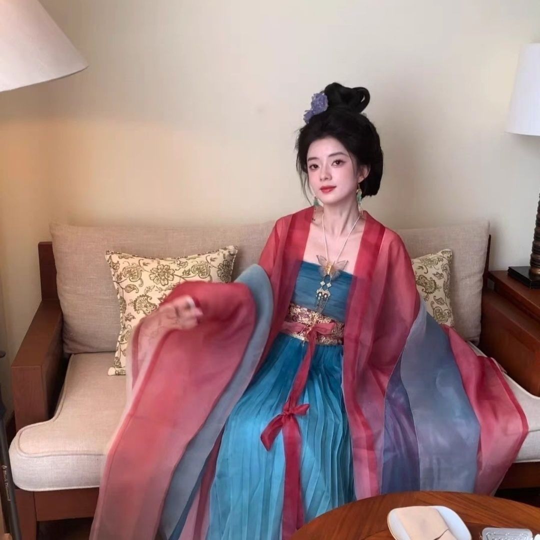 Новый стиль династии Сун, цветение абрикоса, весна/лето, повседневный полный комплект, цельная юбка Hanfu с тонкими складками 4,5 м и элегантным национальным стилем Hanfu.
