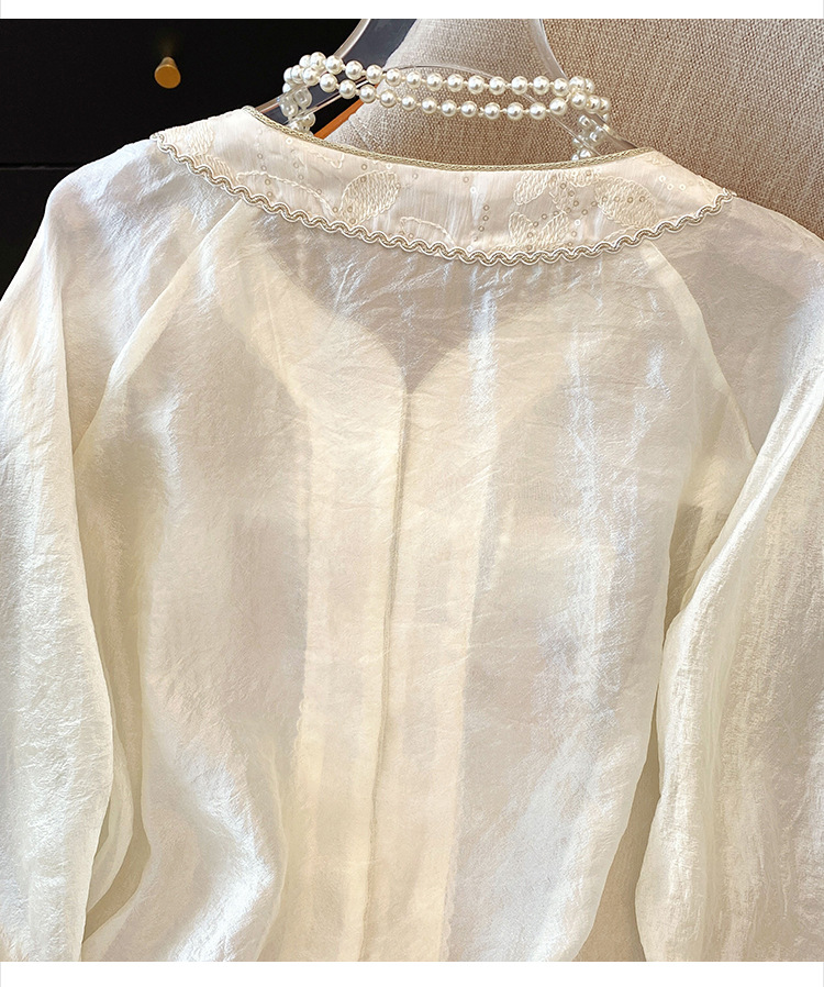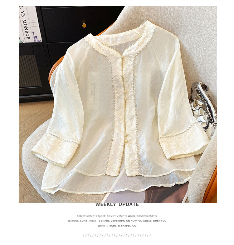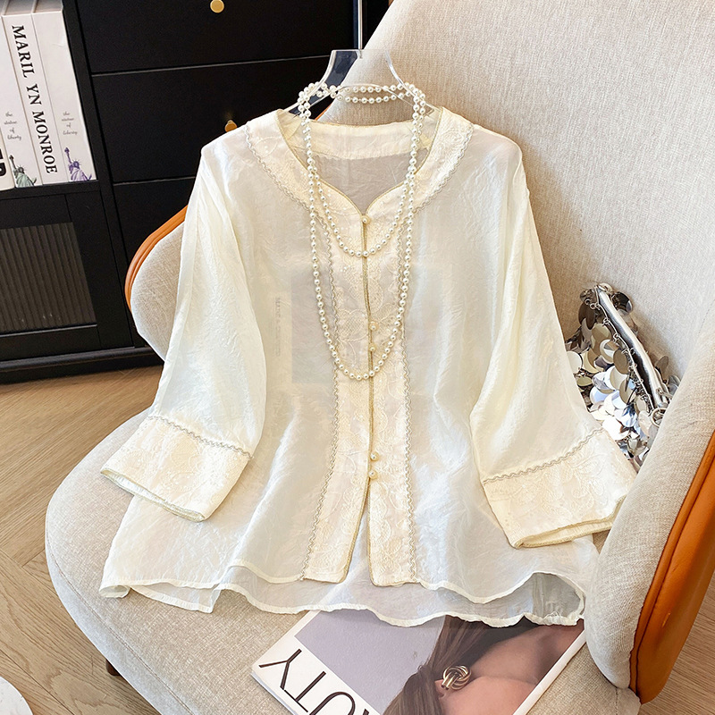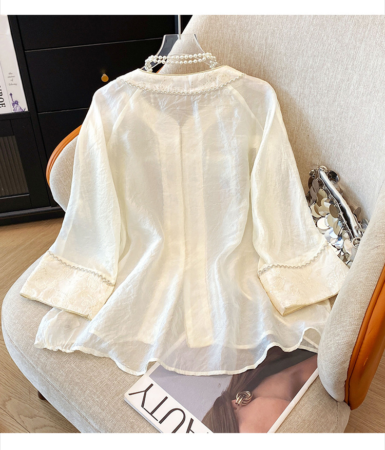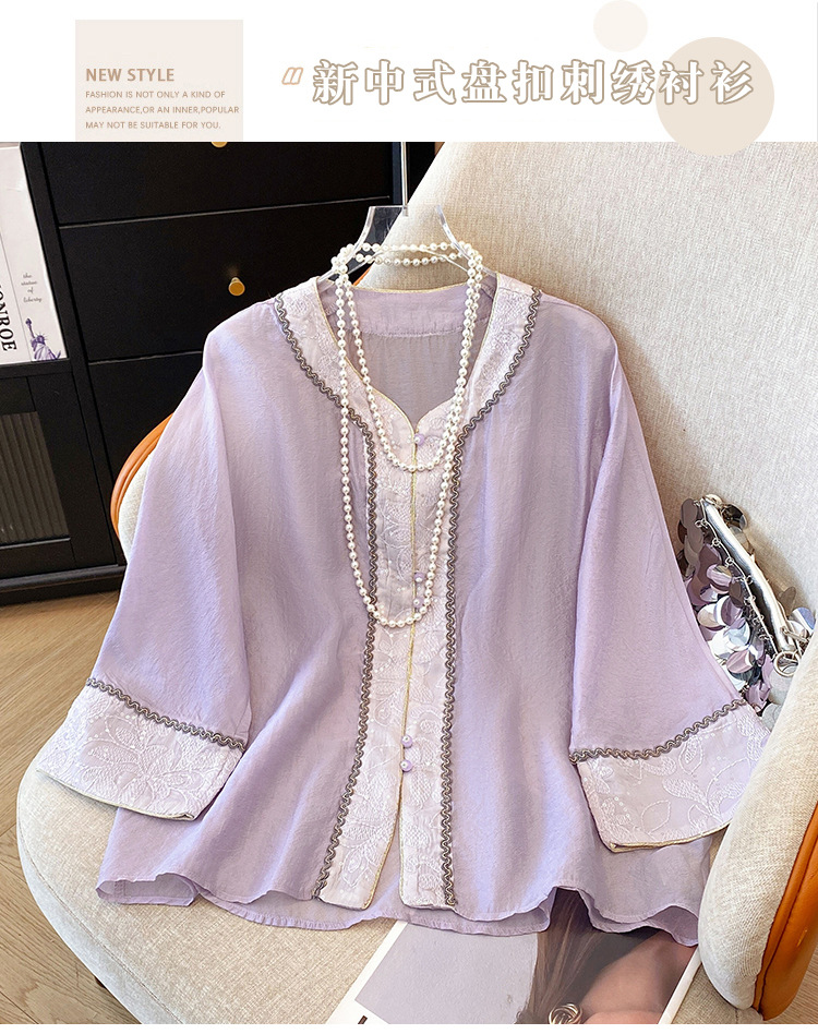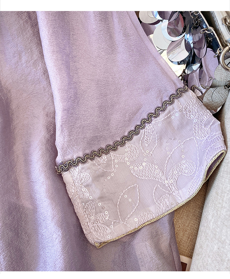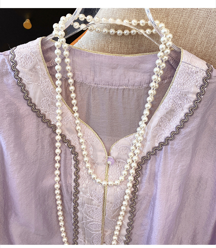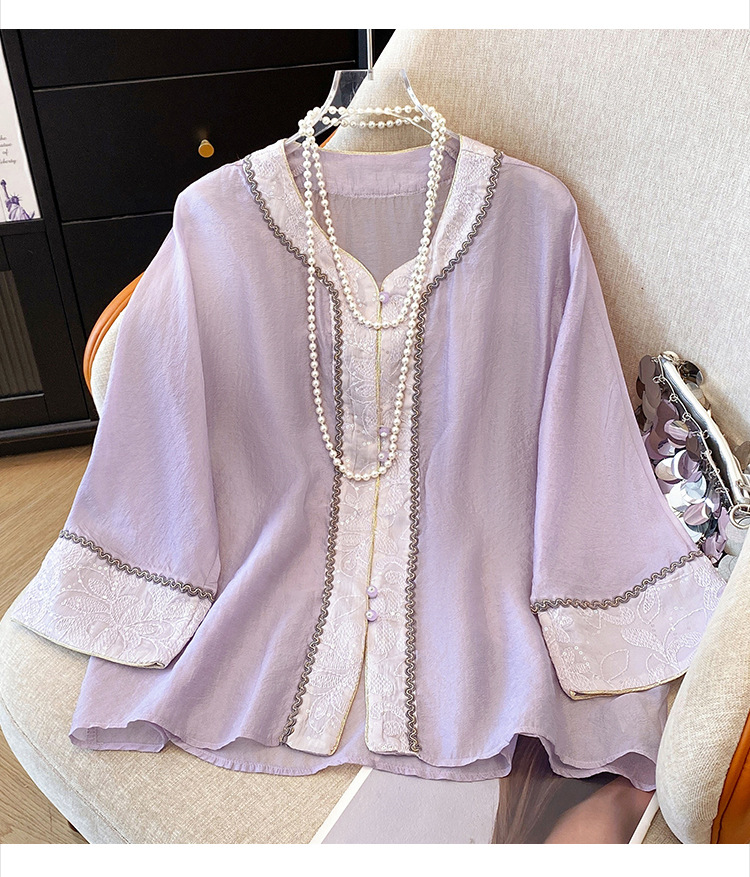 Настоящая фотография нового легкого тюлевого солнцезащитного кардигана в китайском стиле в национальном стиле для женщин, летняя фиолетовая верхняя одежда, имитация шелка, стильный дух феи, прозрачный