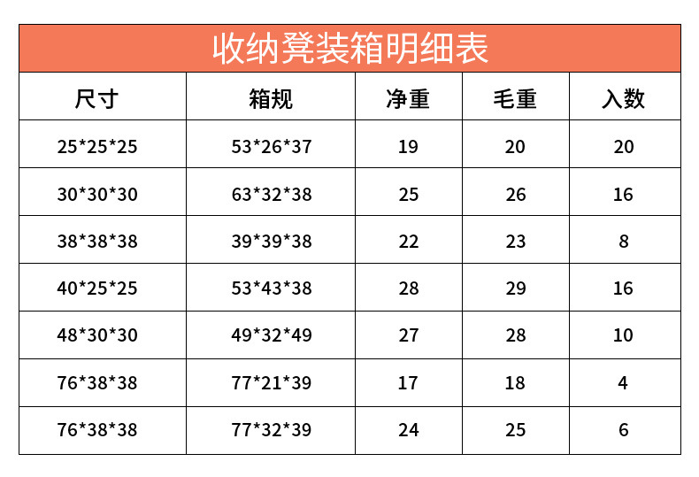 76*38*38cm; 38*38*38cm; 30*30*30cm; 25*25*25cm