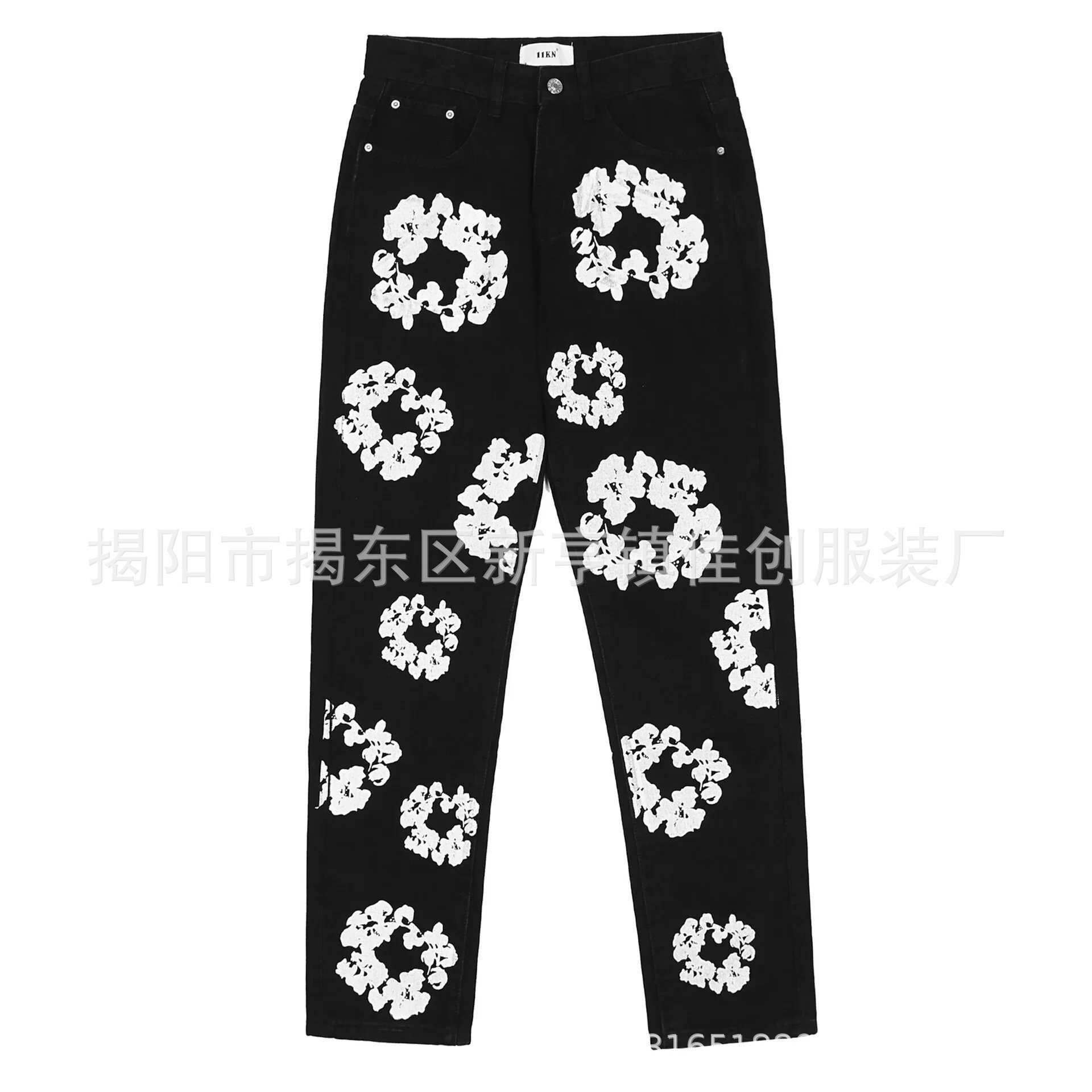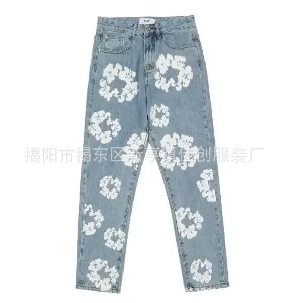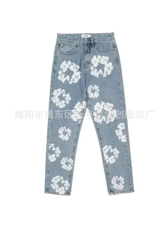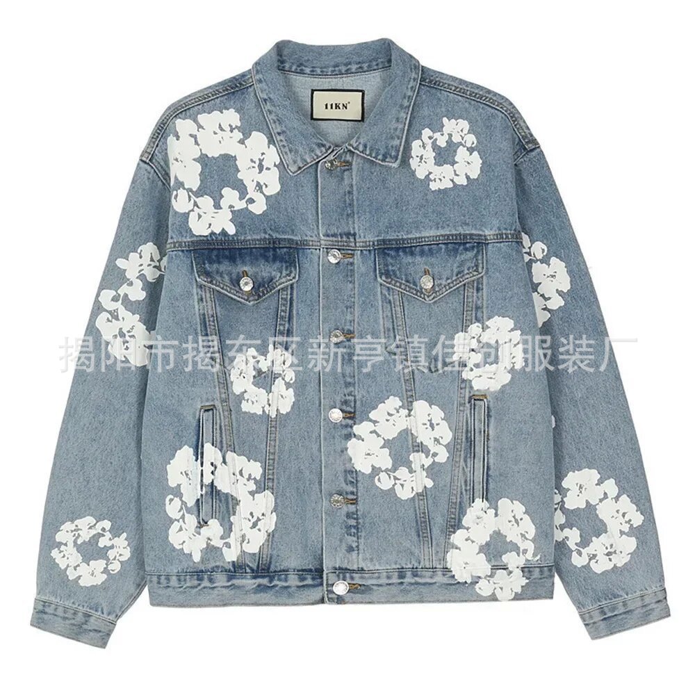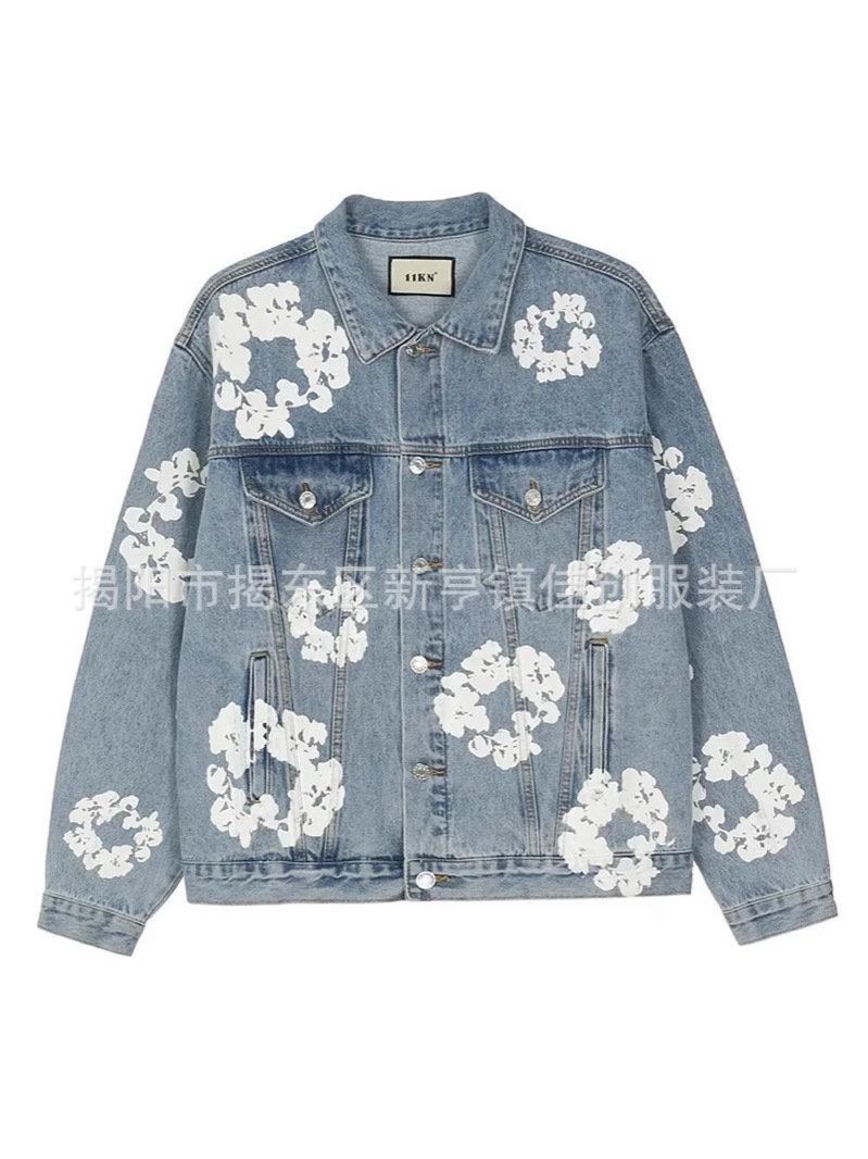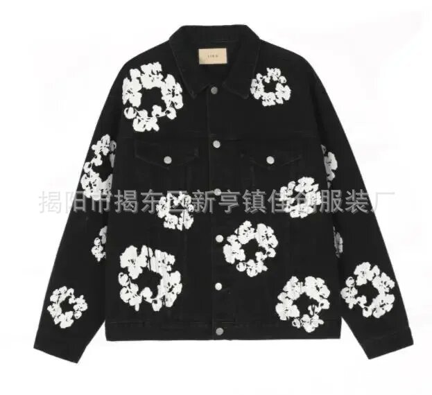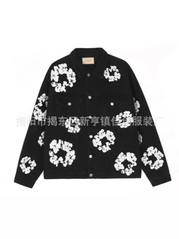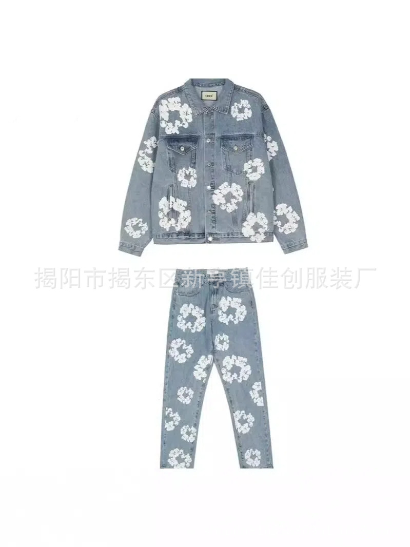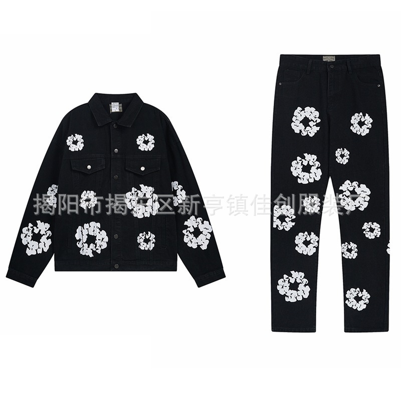 Сливовая черная джинсовая куртка; Сливовые черные джинсы; Голубая джинсовая куртка с цветком сливы; Сливовые светло-голубые джинсы; Сливово-черный джинсовый костюм; Глазурный светло-голубой джинсовый костюм