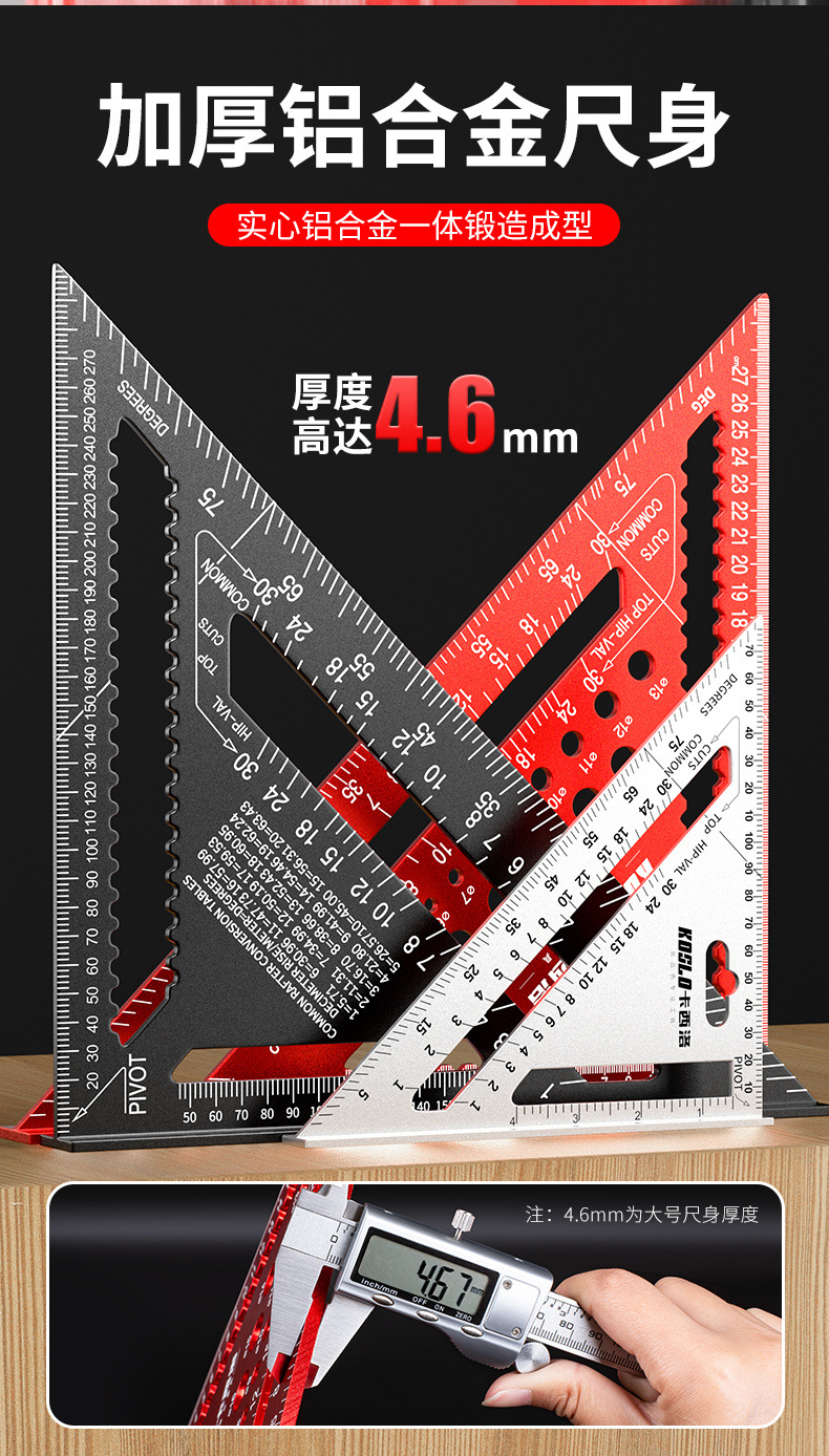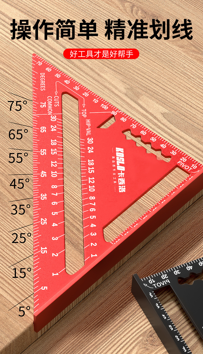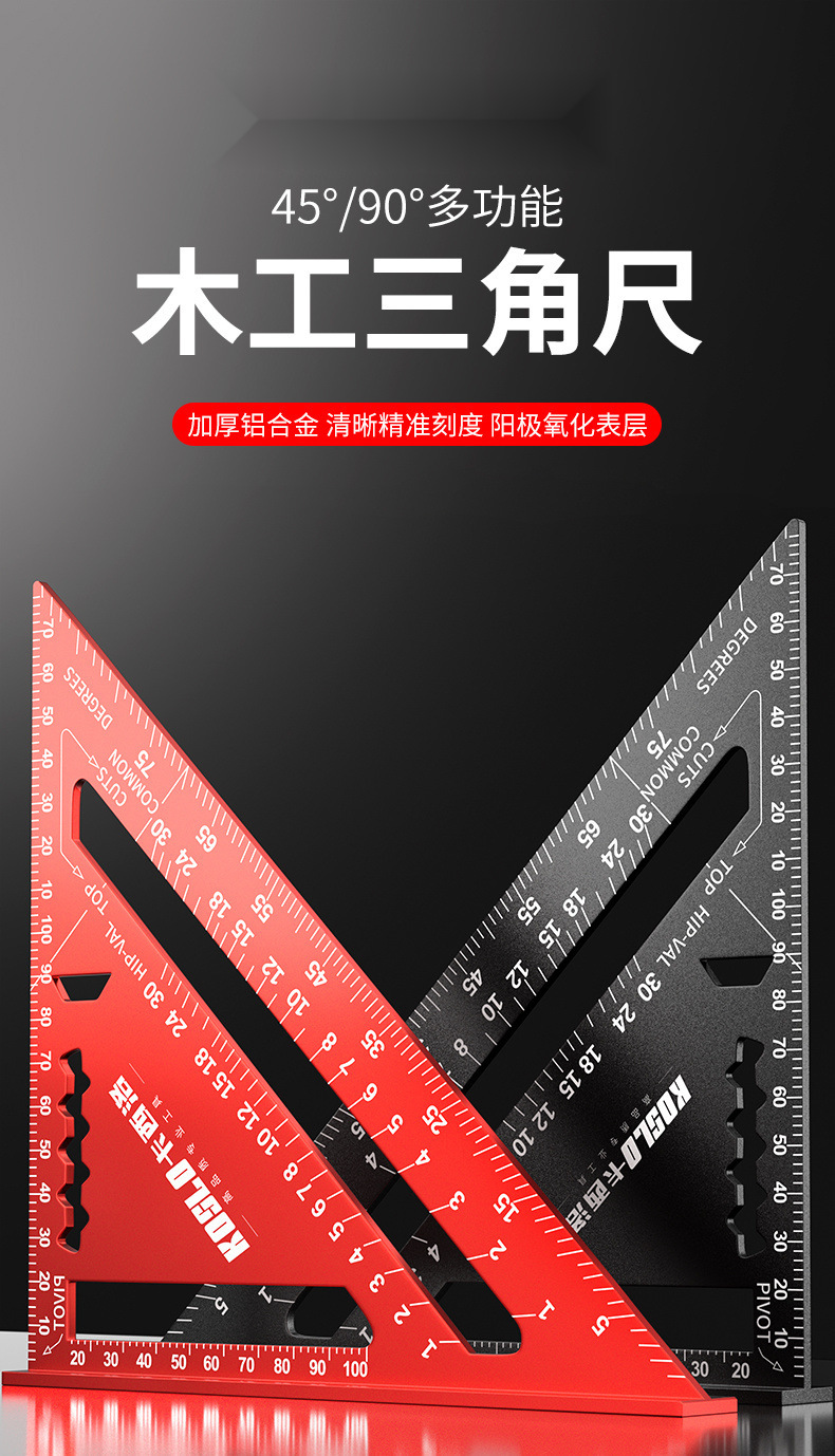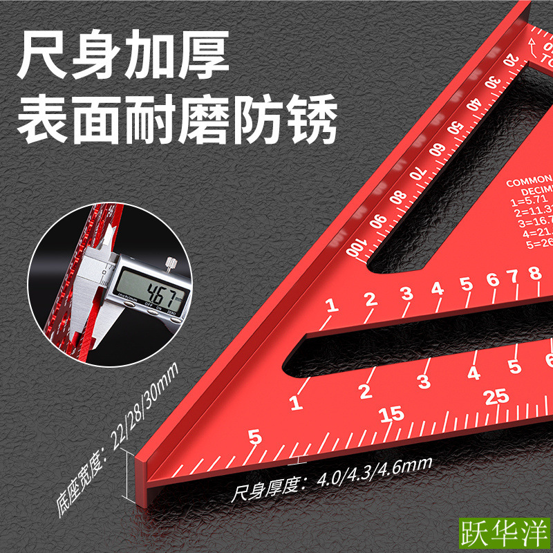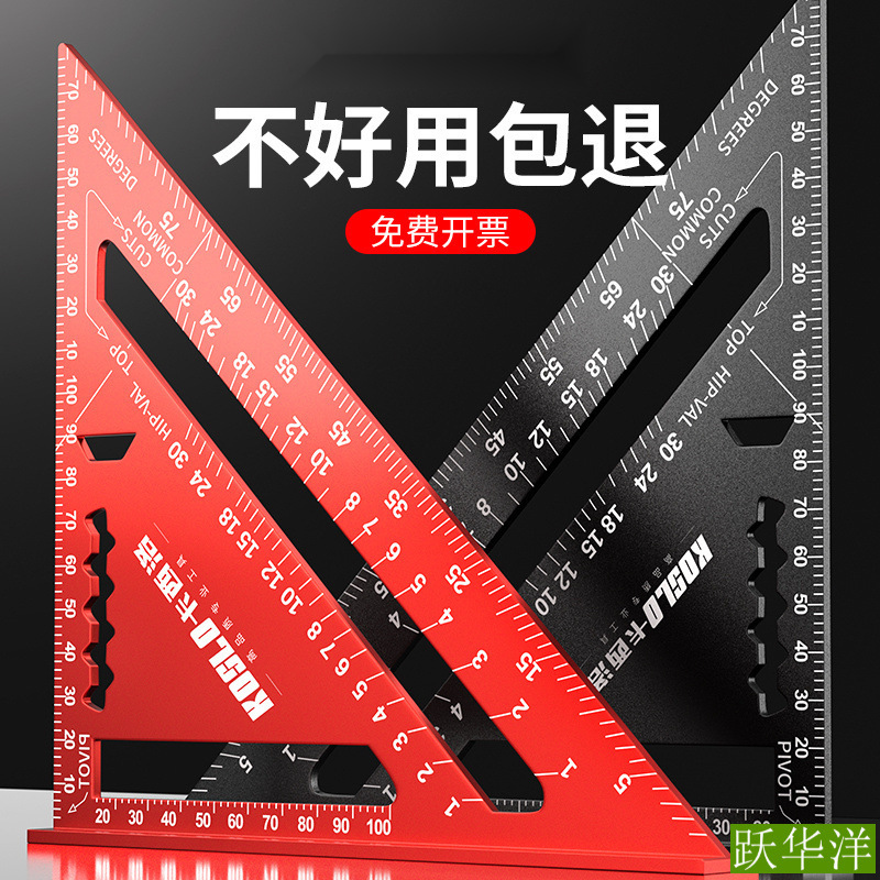 Многофункциональная треугольная линейка для деревообработки, большая высокоточная декоративная утолщенная угловая линейка из нержавеющей стали, алюминиевого сплава, линейка под углом 45 градусов