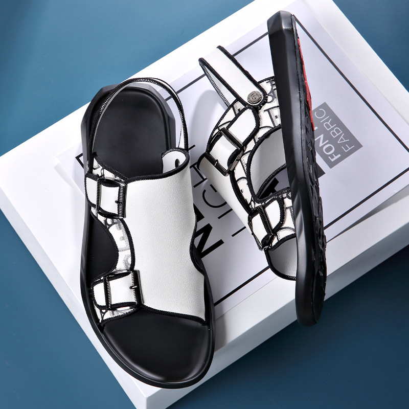 Летние мужские тапочки без шнуровки, верхняя одежда двойного назначения, новые мужские модные уличные сандалии из воловьей кожи в корейском стиле, модная мужская обувь