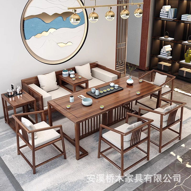 Новый чайный столик и стул из цельного дерева в китайском стиле, комбинированный офисный чайный столик для приема и переговоров, домашний журнальный столик для приема, большой чайный столик