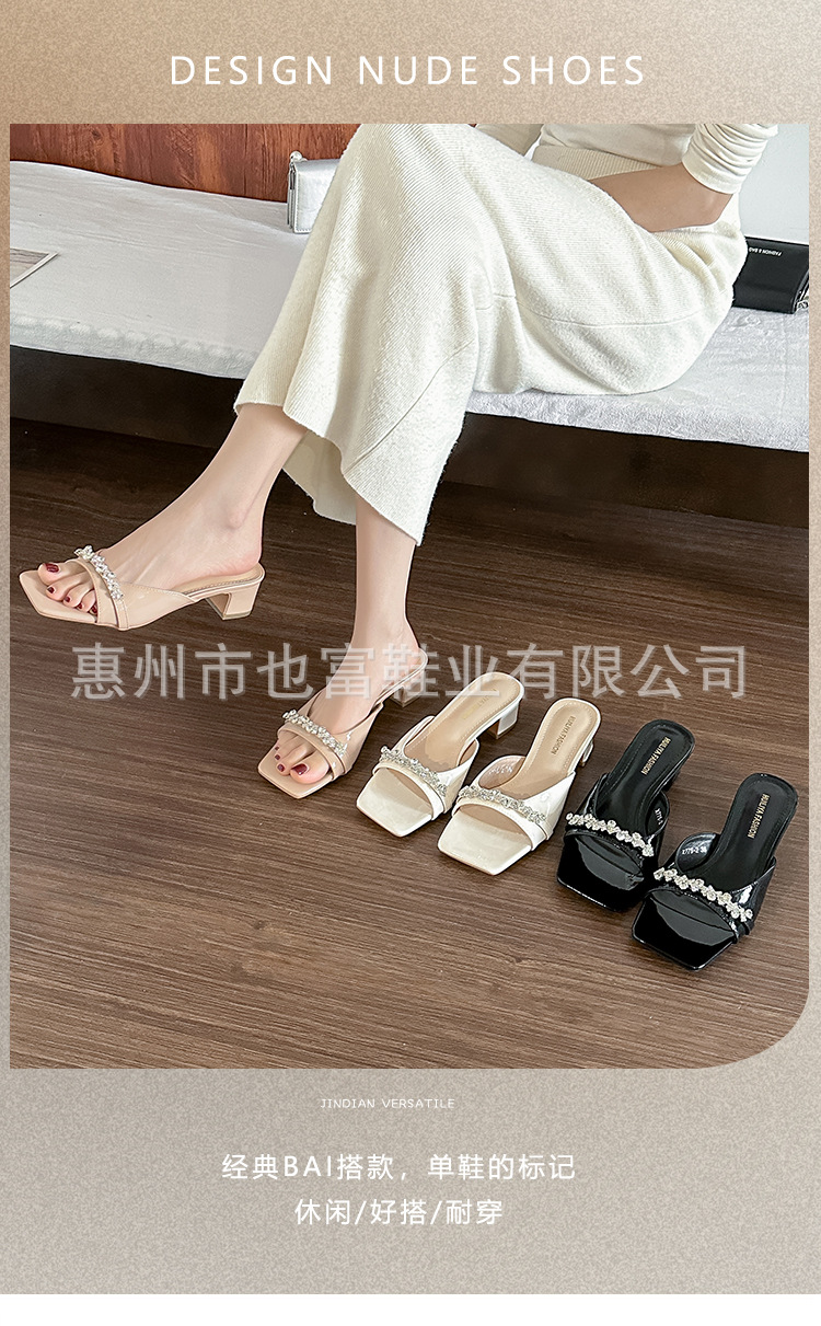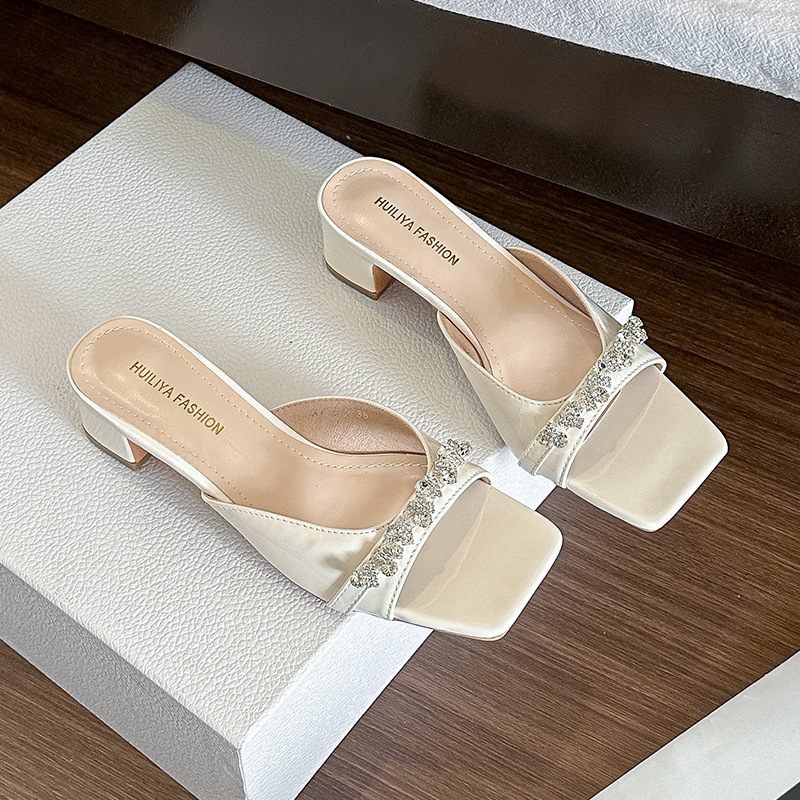 Женские босоножки на высоком каблуке с открытым носком и одним ремешком, французский вечерний стиль, новинка весна-лето 2025, элегантная обувь с камнями, полусапожки.