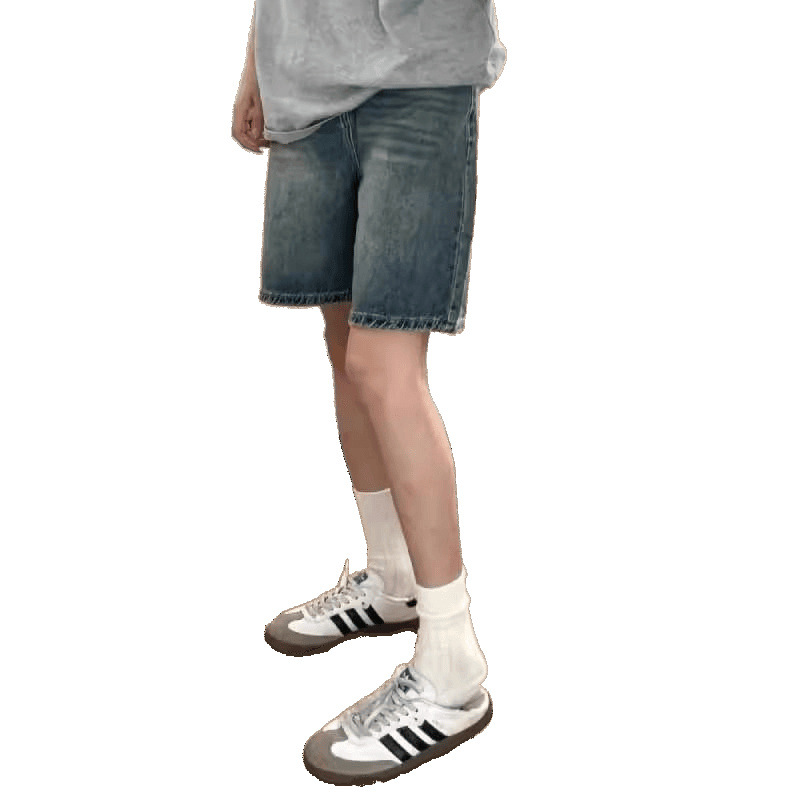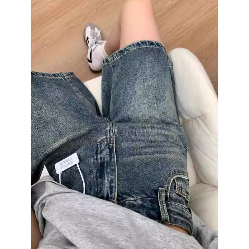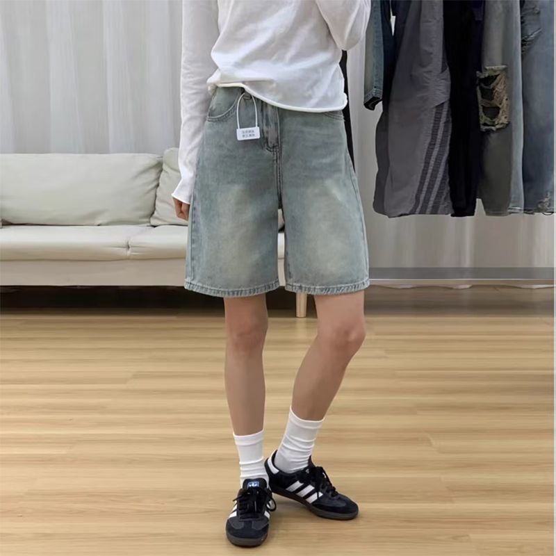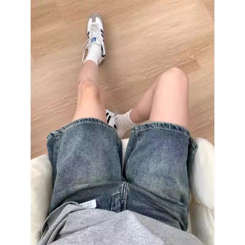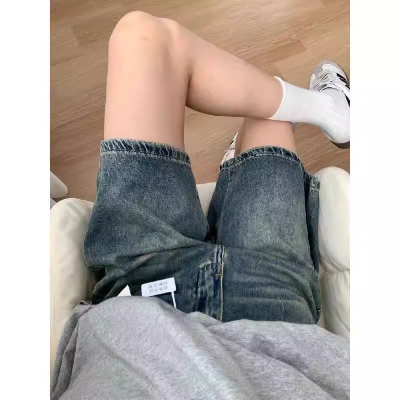 Американские джинсовые шорты в стиле ретро для женщин, летние, с завышенной талией, закрывающие бедра, универсальные, утягивающие, прямые, широкие, средней длины.