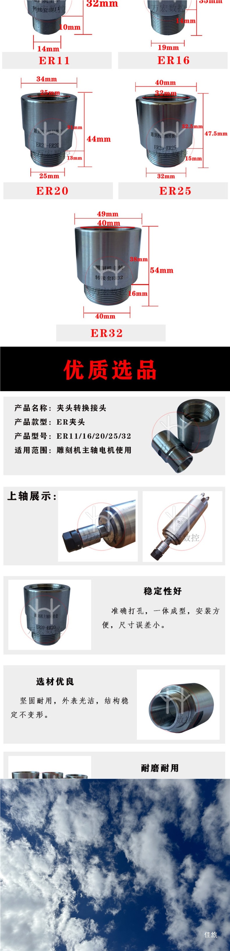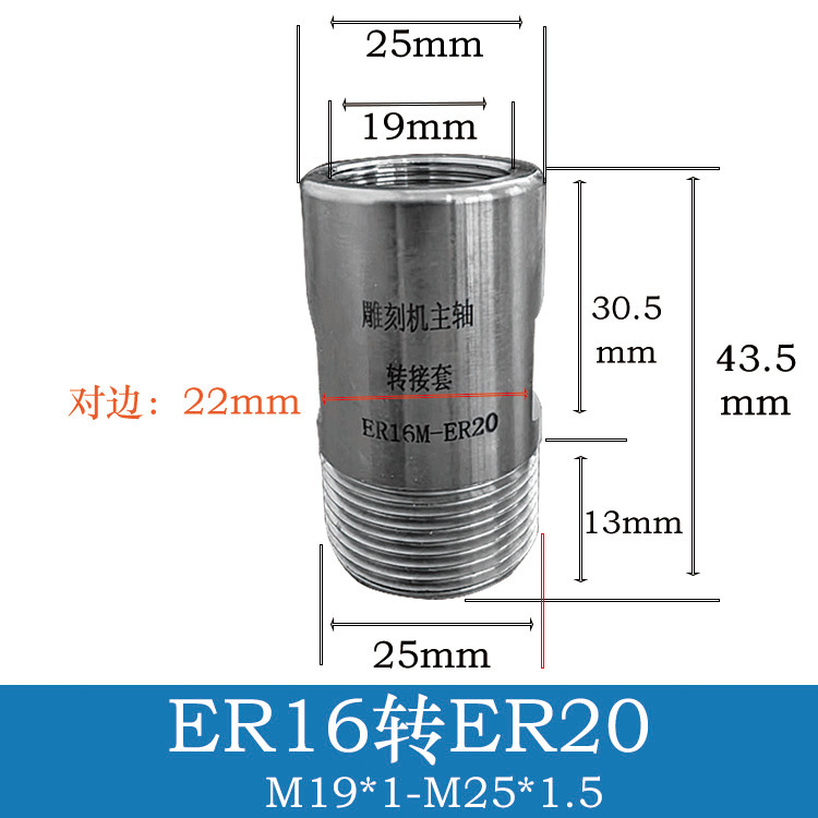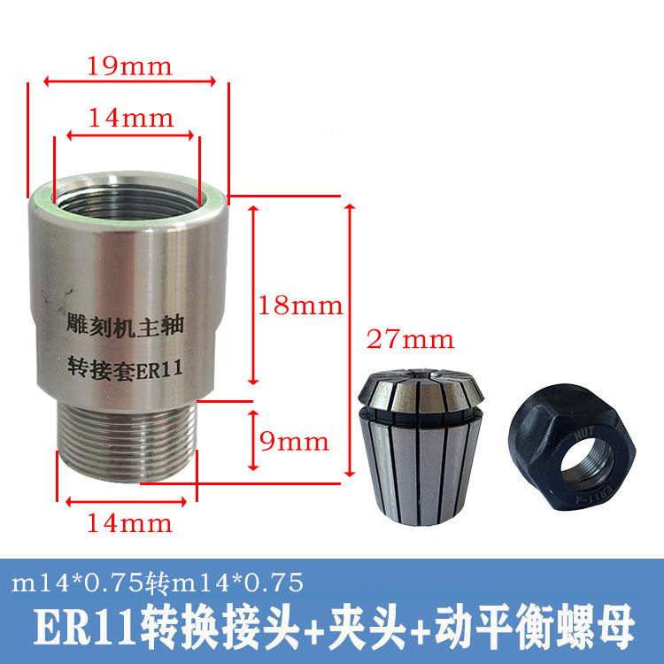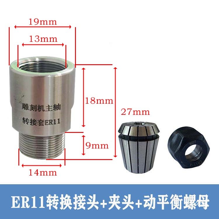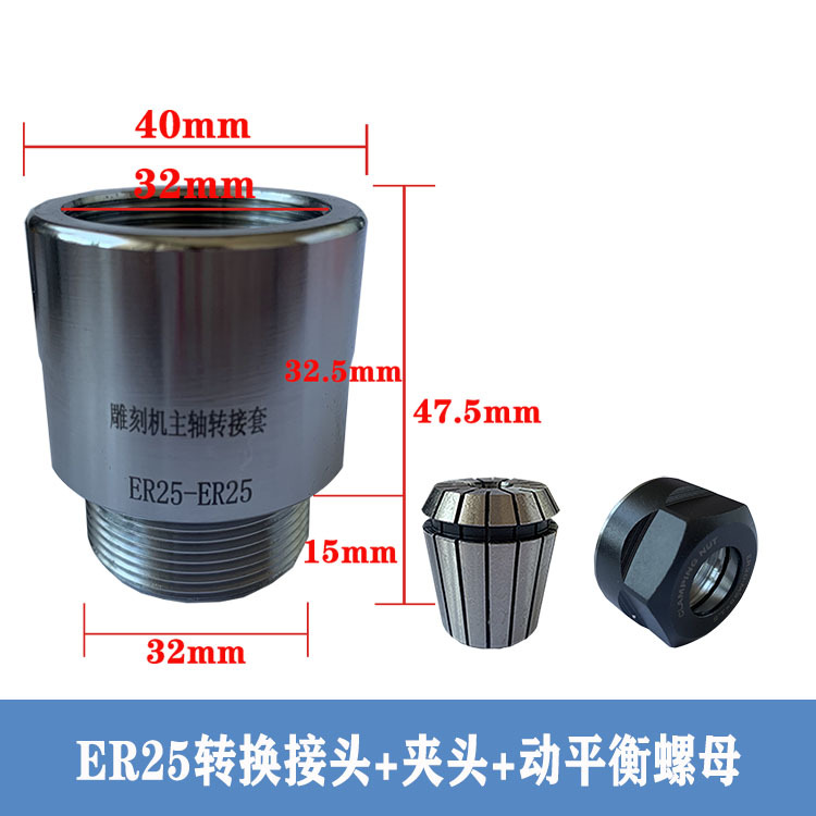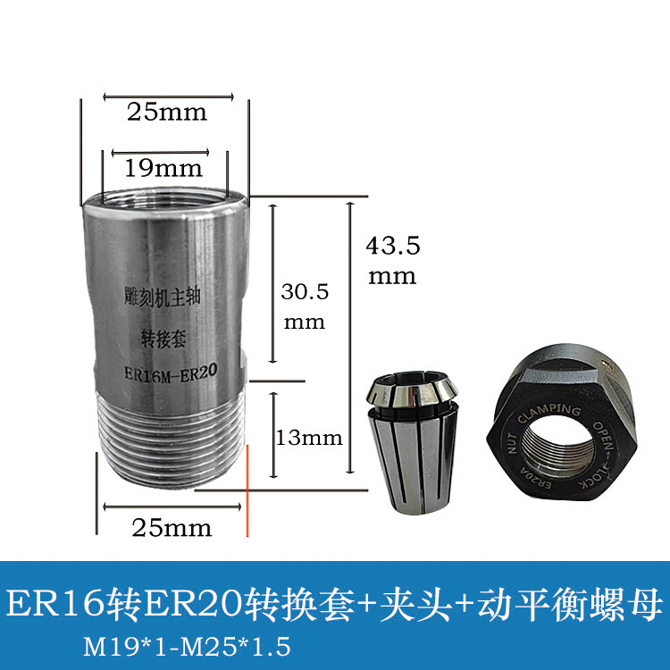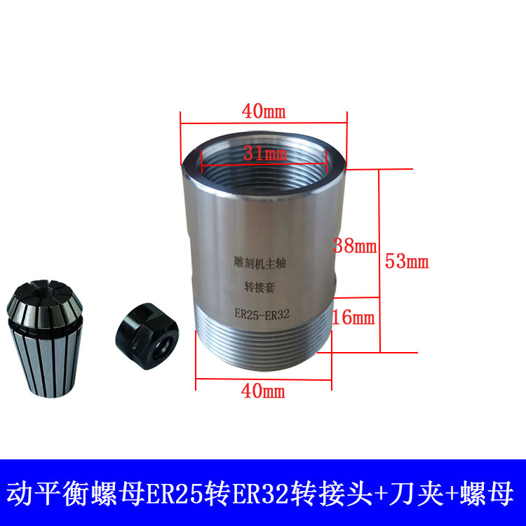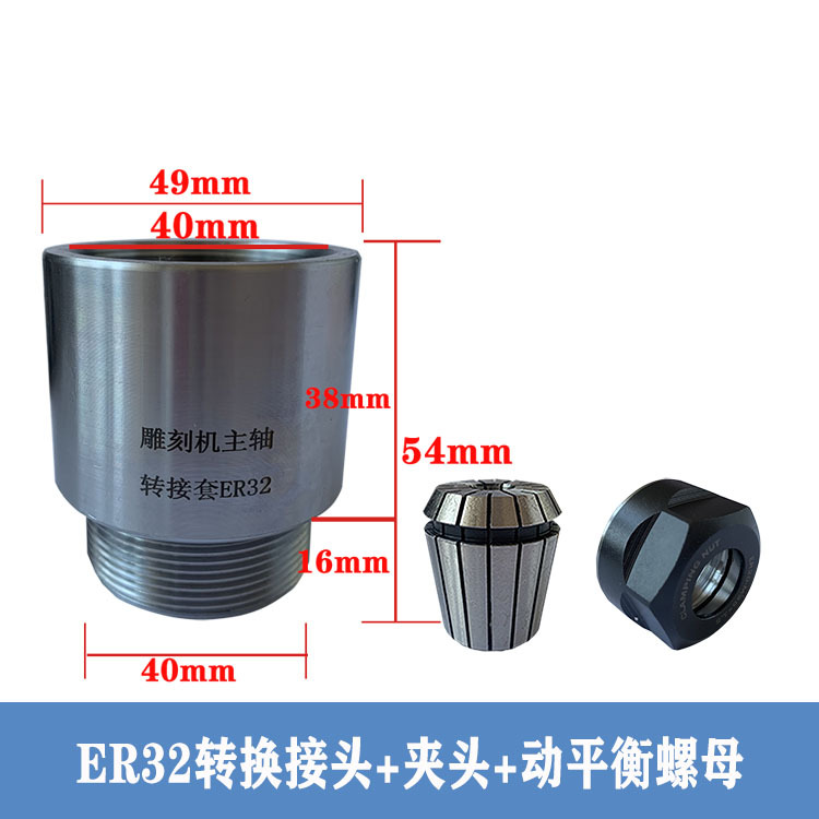 Шпиндель гравировального станка, переходная втулка, удлинительный стержень ER11-ER32, переходная муфта для переходной гайки, цанговая муфта