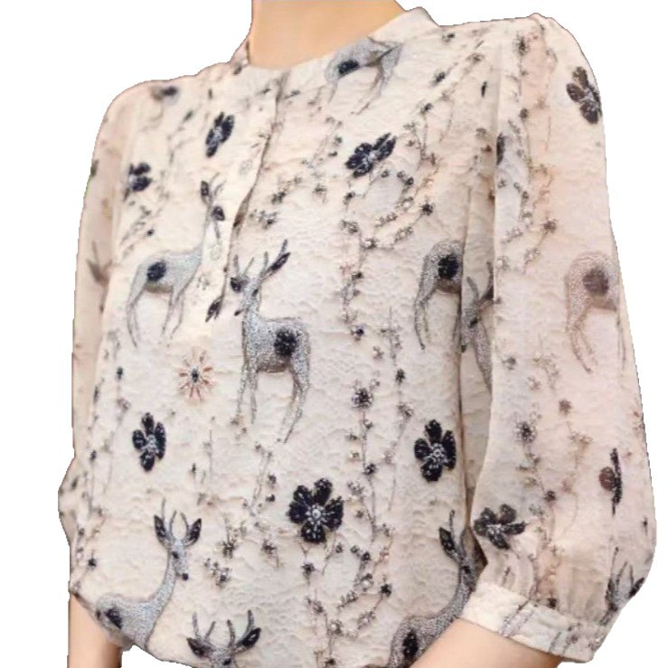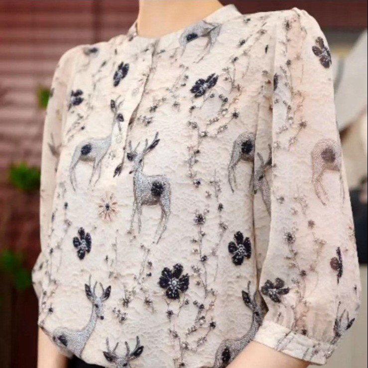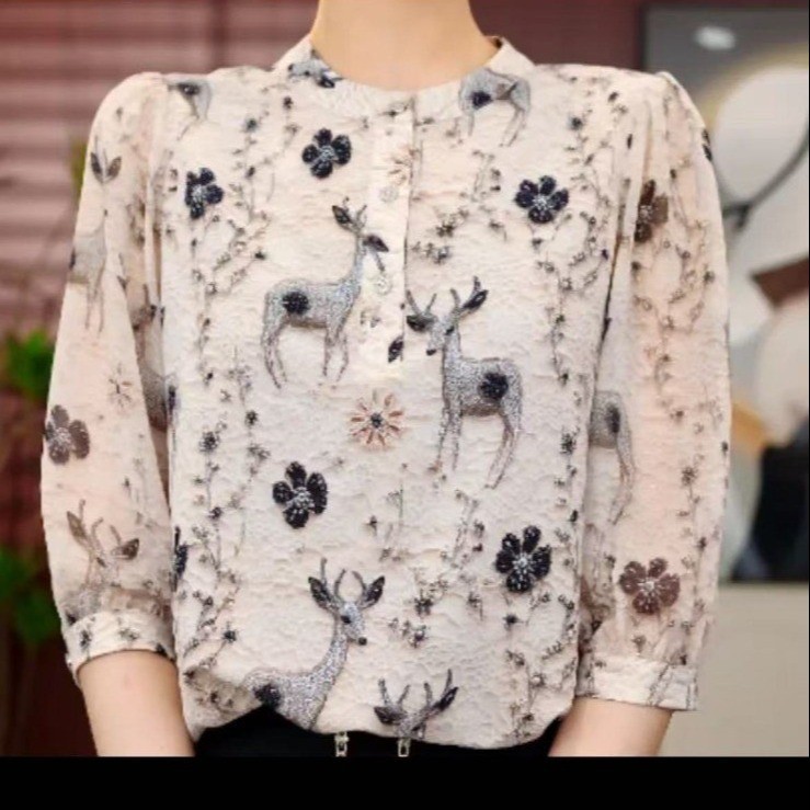 Весенний стиль для 50-летней матери, рубашки с рукавами три четверти, топы для женщин среднего и пожилого возраста, весенне-летние тонкие рубашки с принтом