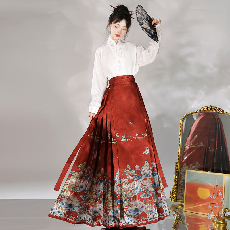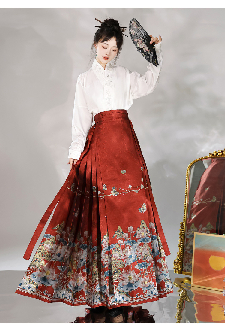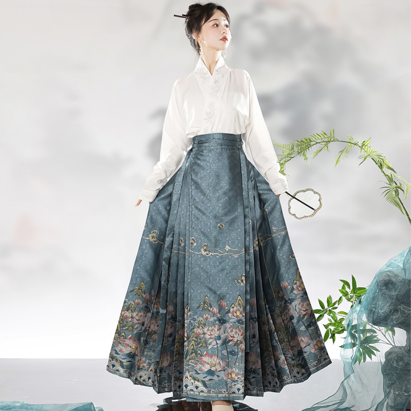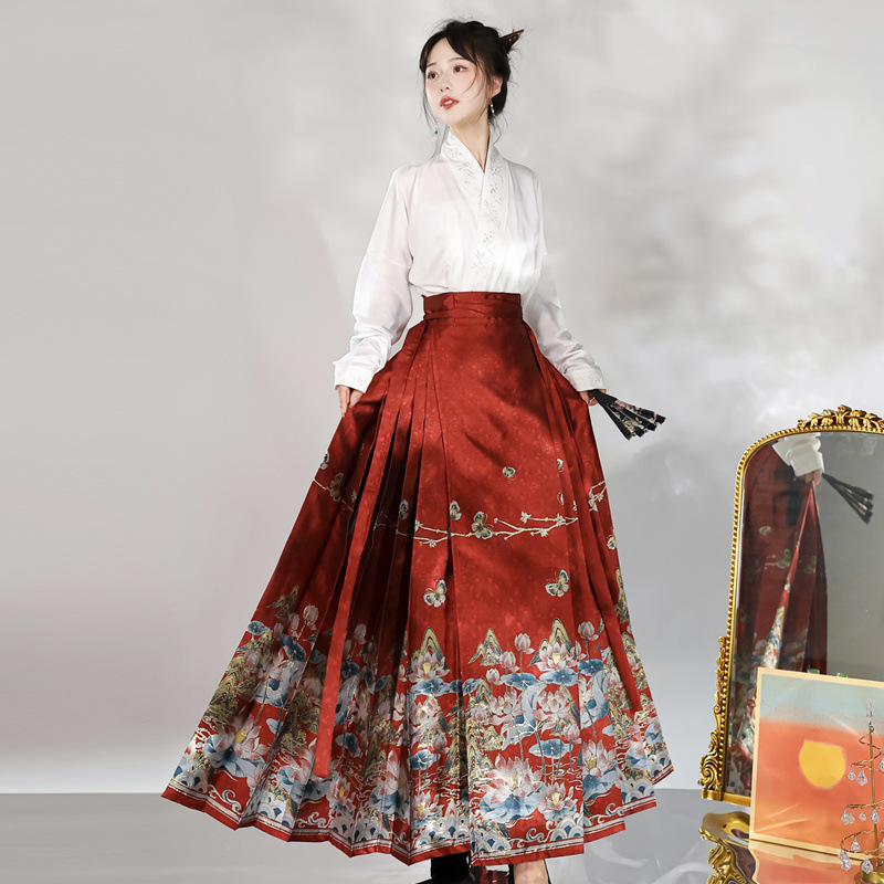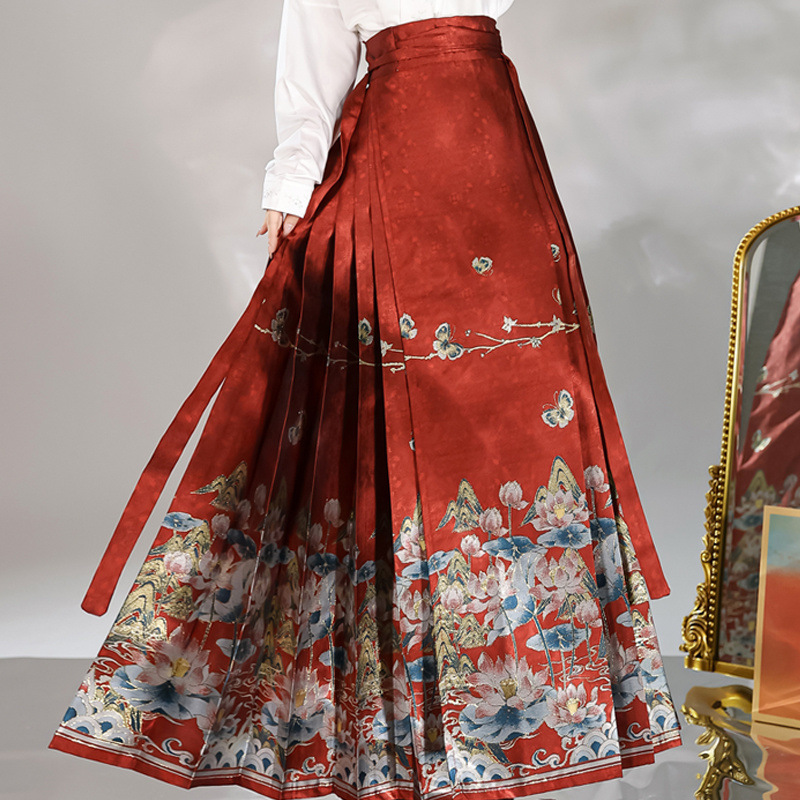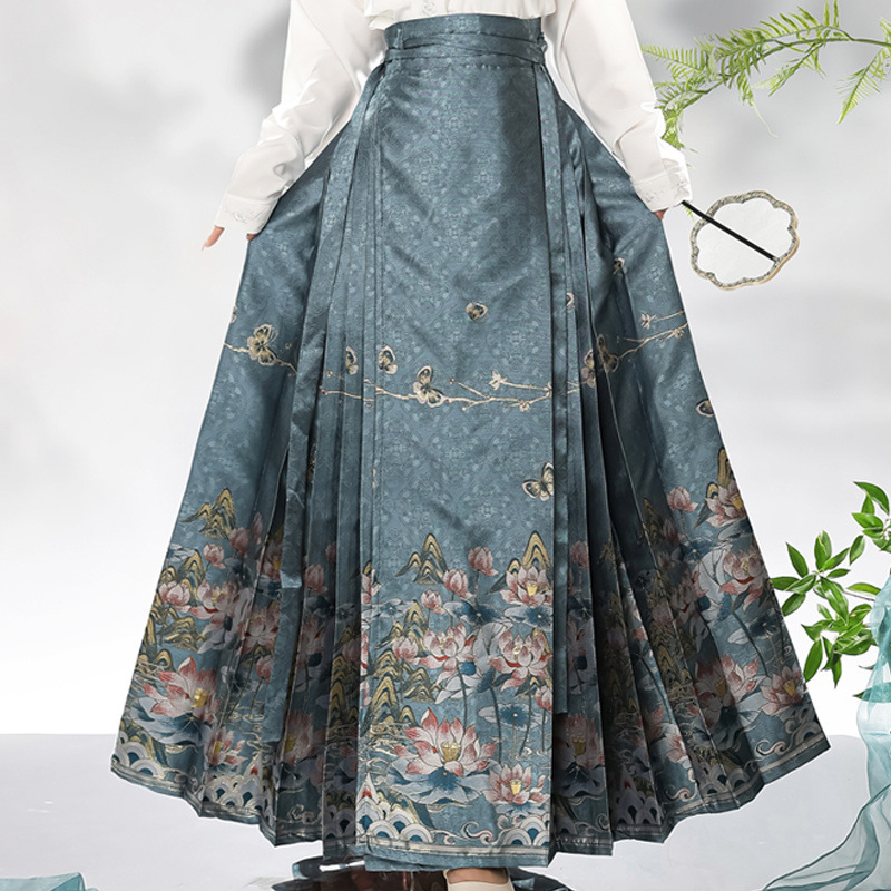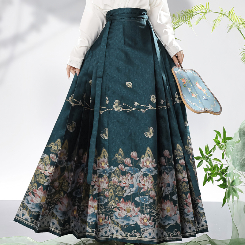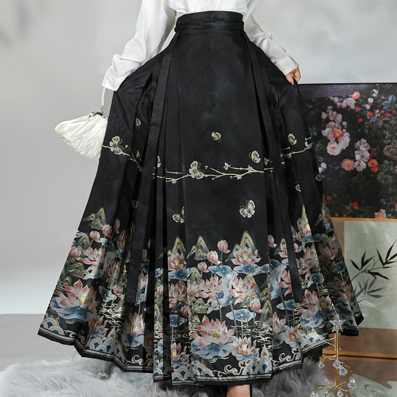 Новая юбка в китайском стиле династии Мин Ханфу в национальном стиле с золотым тканым цветком и лошадиной лицом для женщин на работу