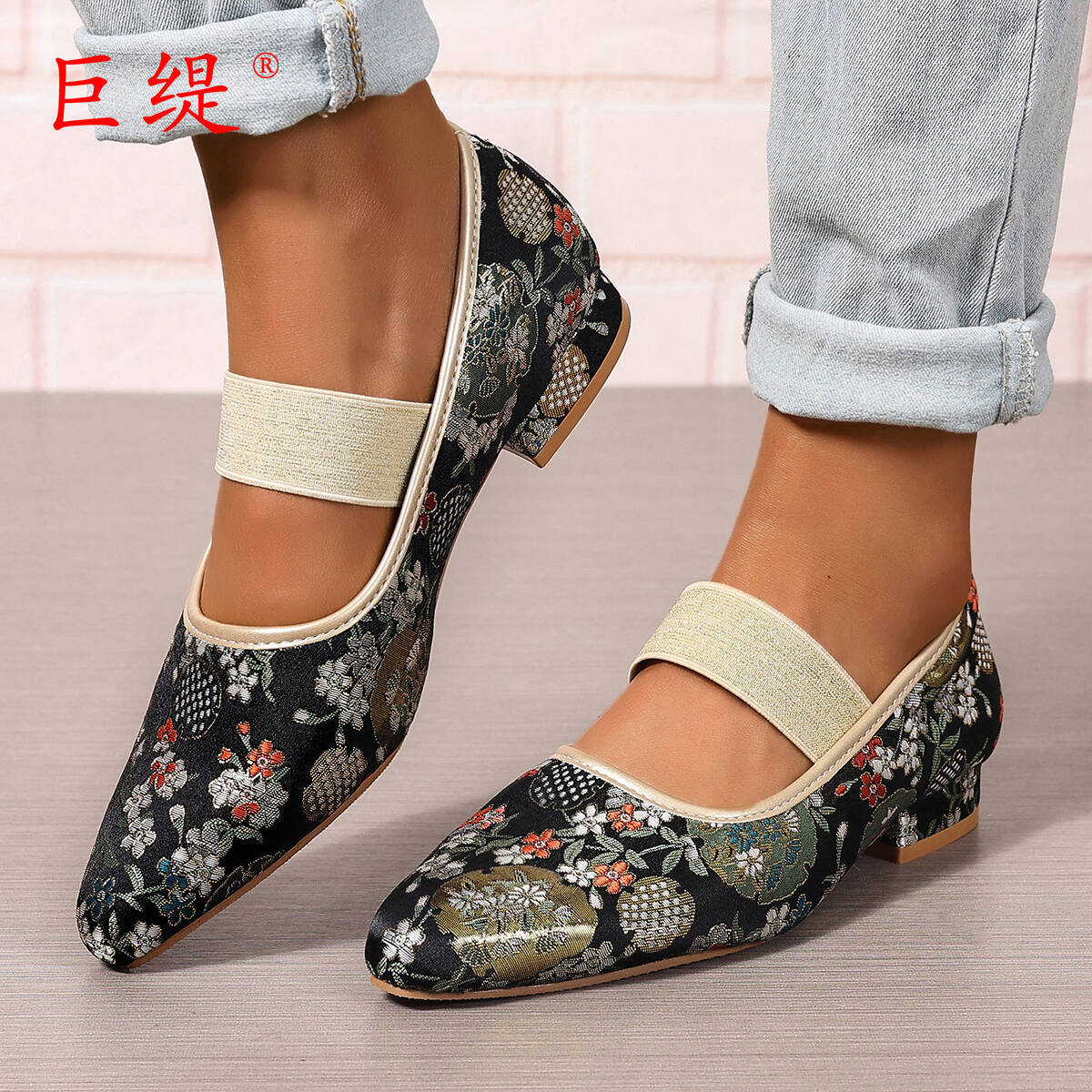 Женские туфли Juti в наличии, весна-осень 2025, новые, на толстом каблуке, с вышивкой, плоские, с независимым сайтом Amazon.