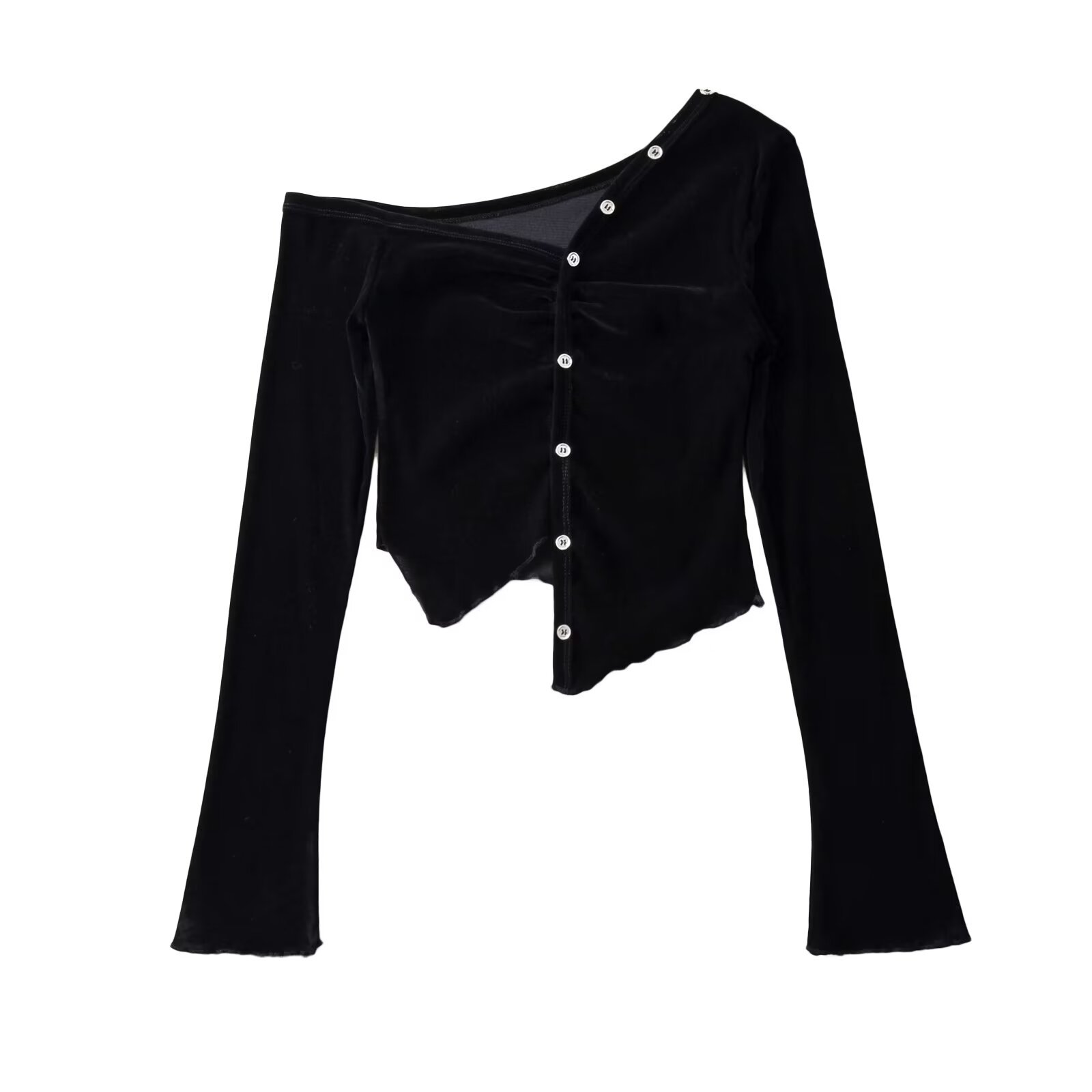 Женская оптовая футболка с асимметричным дизайном и пуговицами, сексуальный топ с нестандартным кроем, подчеркивающий фигуру