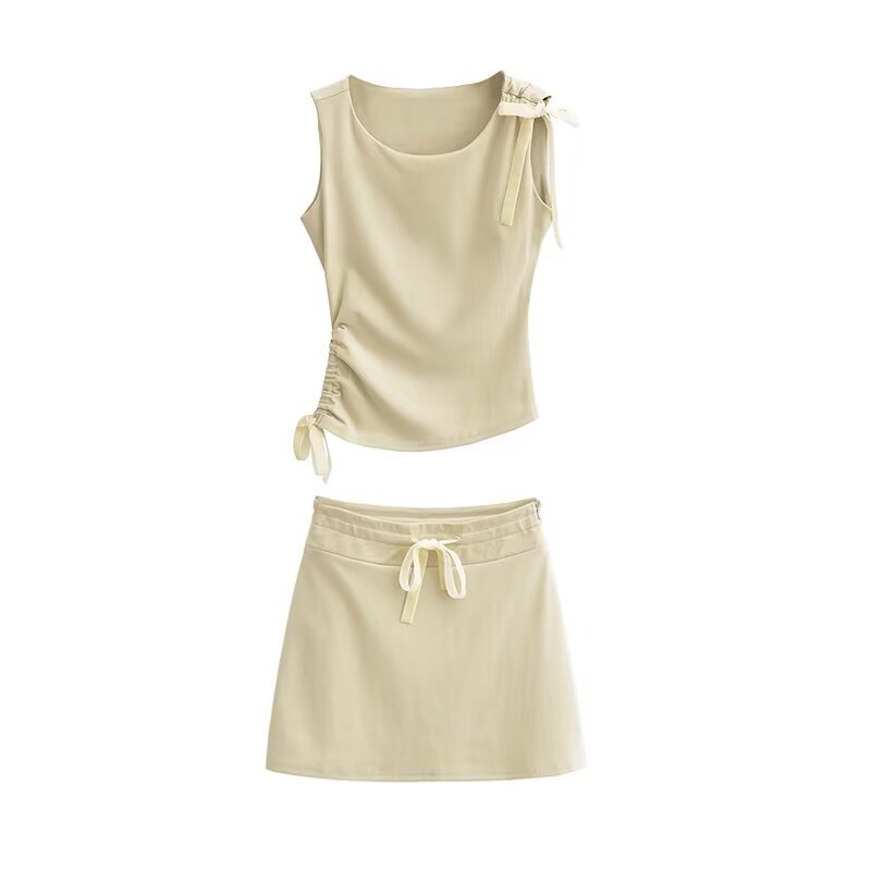 Оптовая продажа женской одежды в стиле «чистая страсть»: топ без бретелек, без рукавов, приталенный, с круглым вырезом и юбка с высокой талией, элегантный костюм.