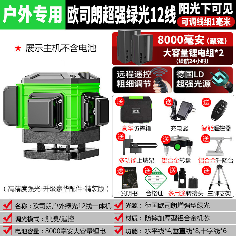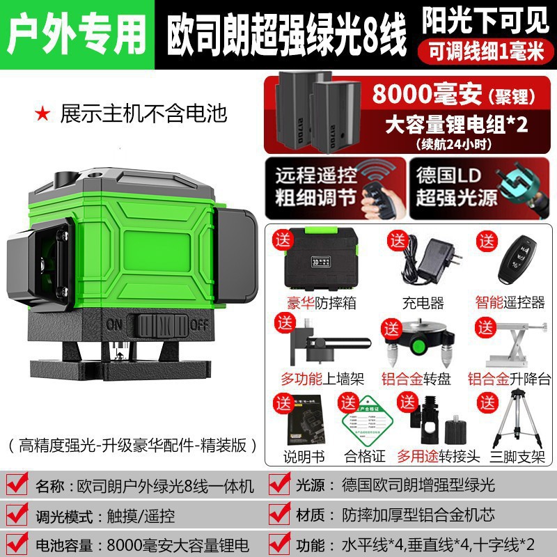 Высокоточный мощный лазерный инструмент с тонкой линией, инфракрасный зеленый свет, автоматическое выравнивание на открытом воздухе.