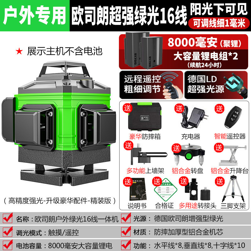 Высокоточный сильный свет, 8 линий [одна батарея]✓✓; Высокоточный сильный свет, 12 линий [одиночный электрический]✓✓; Высокоточный сильный свет, 12 линий [двойной электрический]✓✓; Высокоточный сильный свет, 12 линий [стандартная конфигурация]✓✓; Высокоточный сильный свет, 12 линий [высокая конфигурация]✓✓; Высокоточный сильный свет, 12 линий [верхняя конфигурация]✓✓; [Флагманская модель Standby King + изысканные аксессуары + сильный свет, 12 линий]✓✓; Высокоточный сильный свет, 16 линий [одна батарея]✓✓; Высокоточный сильный свет, 16 линий [двойной электрический]✓✓; Высокоточный сильный свет, 16 линий [стандартная конфигурация]✓✓; Высокоточный сильный свет, 16 линий [высокая конфигурация]✓✓; Высокоточный сильный свет, 16 линий [верхняя конфигурация]✓✓; [Флагманская модель Standby King + изысканные аксессуары + сильный свет, 16 линий]✓✓; Высокоточный сильный свет, 8 линий [двойной аккумулятор] ✓ ✓; Высокоточный сильный свет, 8 линий [стандартная конфигурация]✓✓; Высокоточный сильный свет, 8 линий [высокая конфигурация]✓✓; Высокоточный сильный свет, 8 линий [верхняя конфигурация]✓✓; [Флагманская модель Standby King + изысканные аксессуары + сильный свет, 8 линий]✓✓