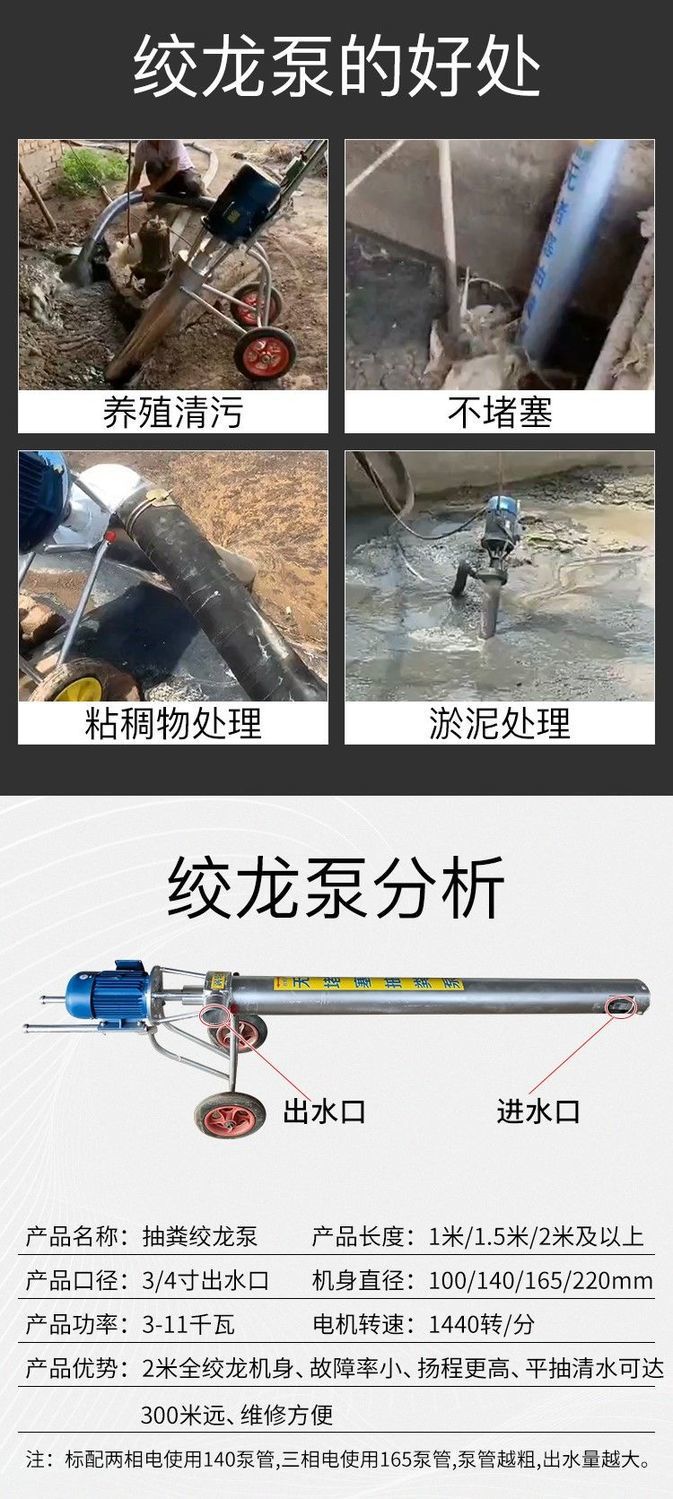 Шнековый насос для сточных вод, канализационный насос, специальная машина для всасывания фекалий для птицефабрик, утиных и свиноводческих ферм, бытовой насос для сточных вод септика, грязевой насос