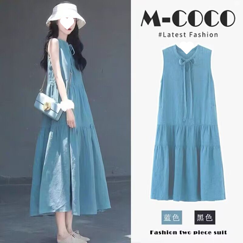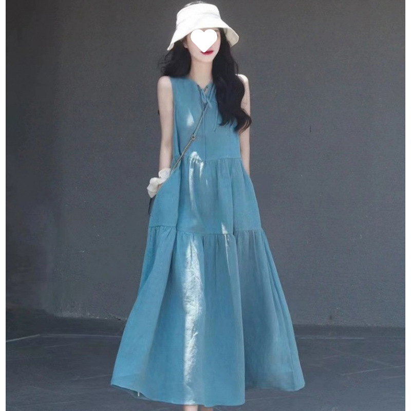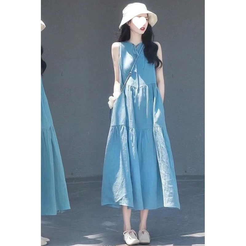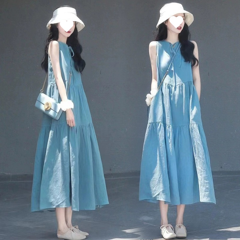 Летнее корейское модное свободное платье без рукавов на шнуровке, элегантное тонкое платье без рукавов больших размеров M 4XL 100kg