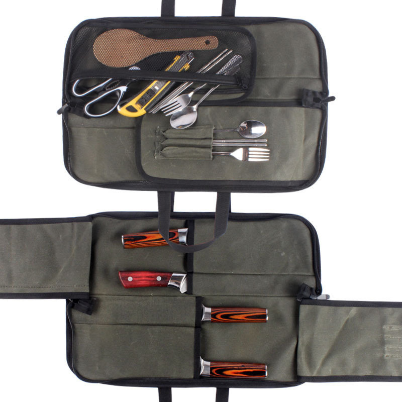 Портативная сумка для ножей для кемпинга и пикника, сумка для кухонного ножа, ручная сумка из воскового холста, водонепроницаемая сумка для хранения кухонной утвари
