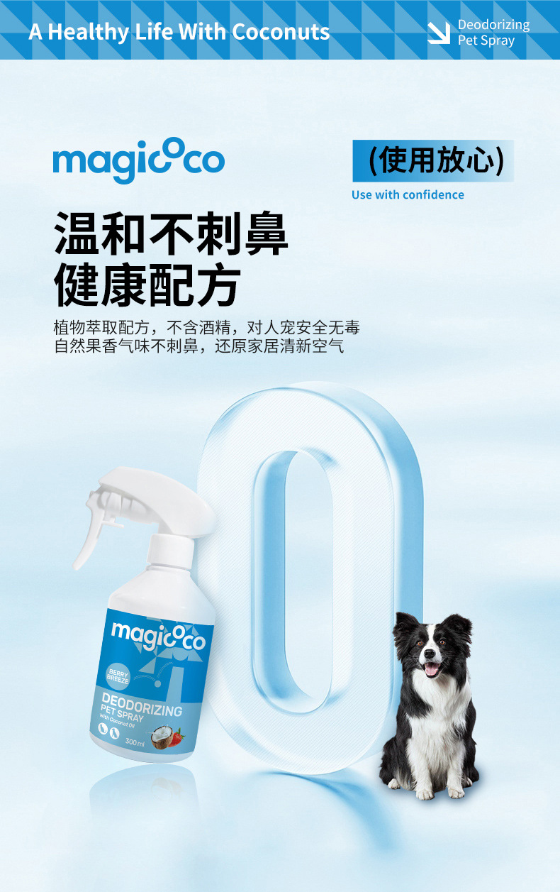 Magicoco Дезодорант-спрей для домашних животных с кокосовым вкусом оптом, Дезодорант-спрей для домашних животных с кокосовым вкусом Прямые продажи с фабрики