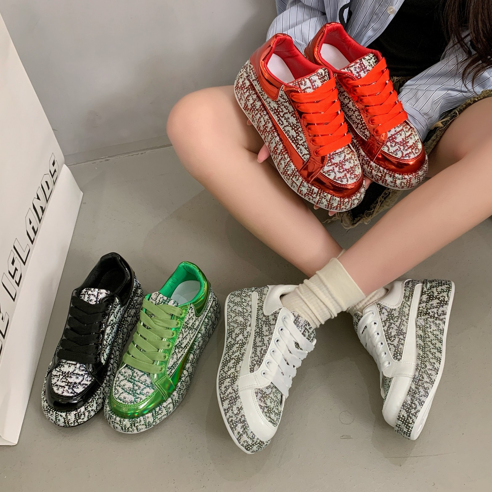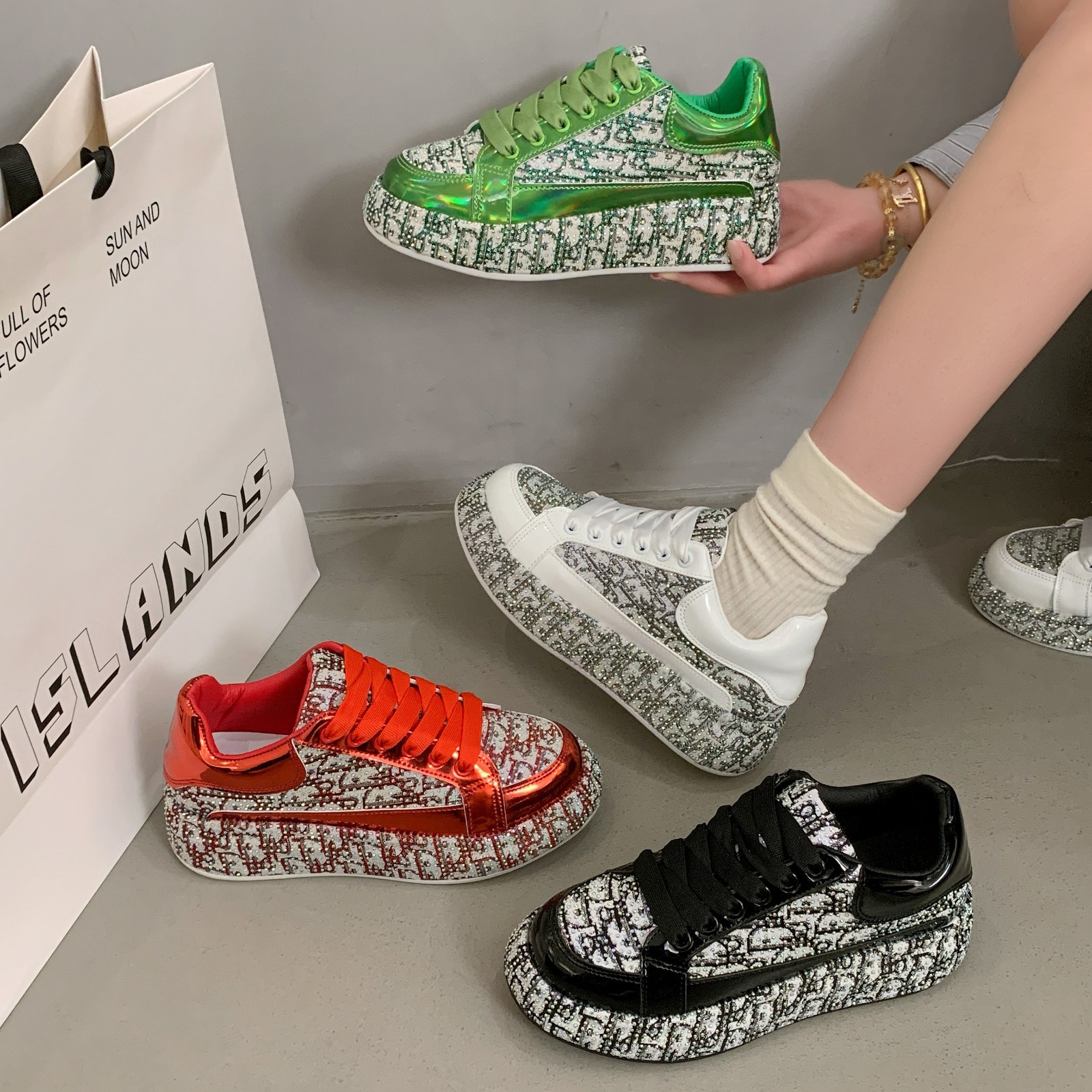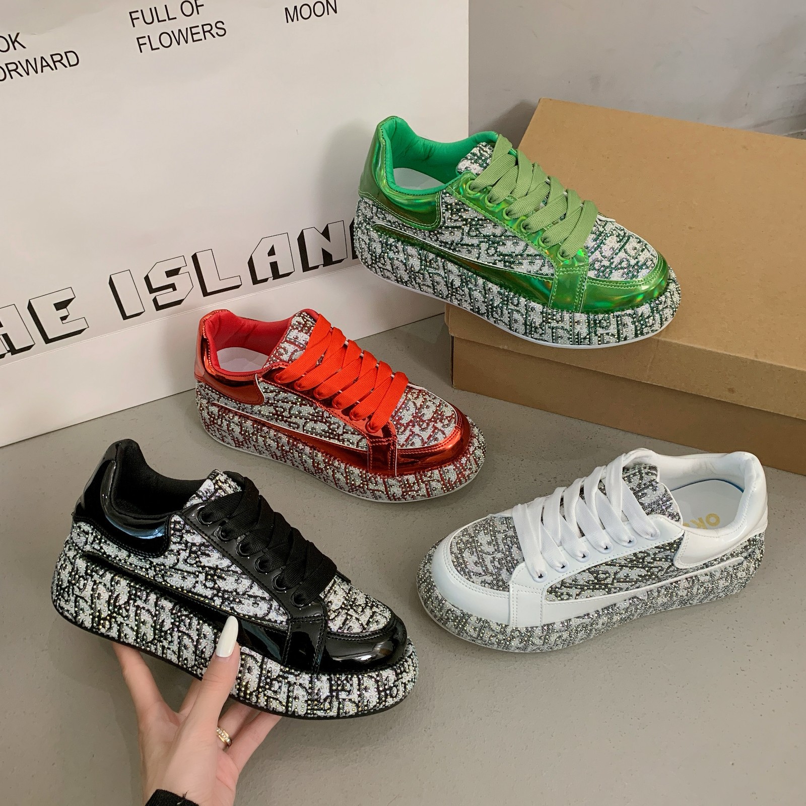 Большие размеры 2025, новые весенние белые туфли с бриллиантами для женщин, модные яркие бриллианты, стильная ниша, универсальная спортивная обувь на платформе с толстой подошвой