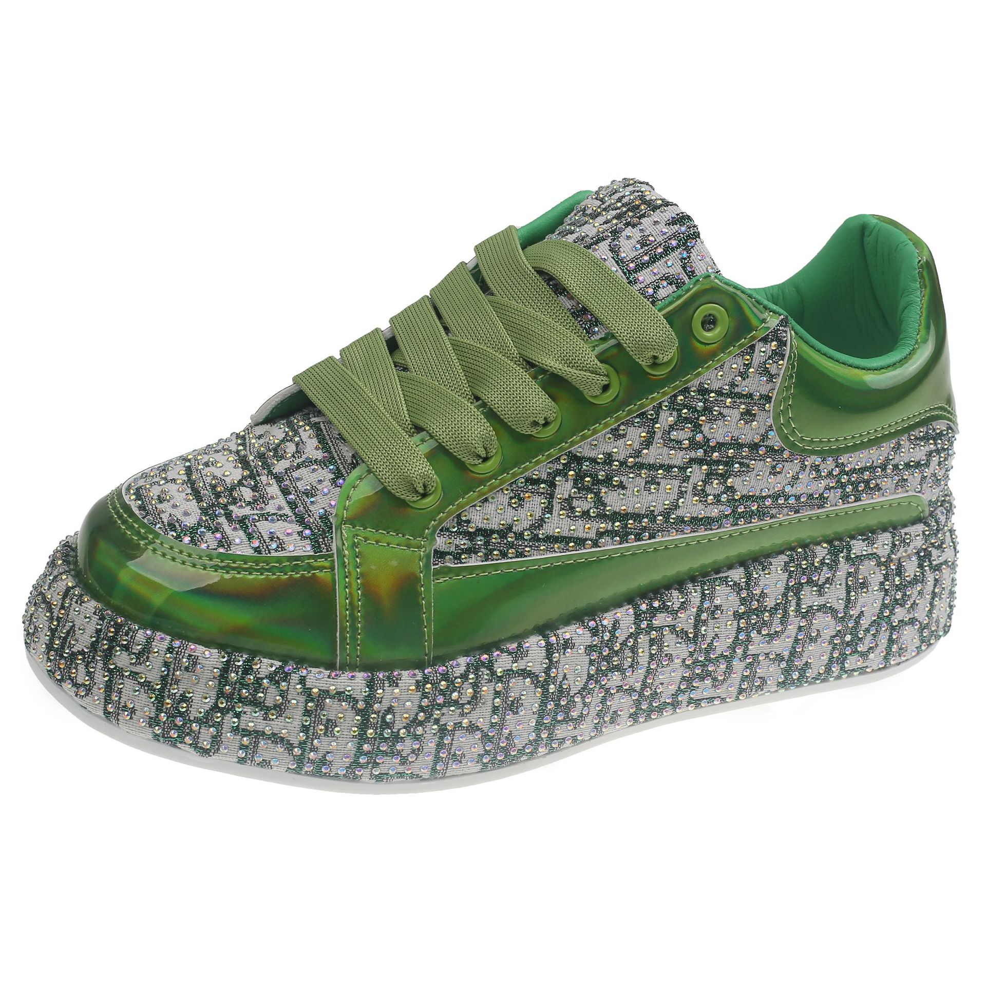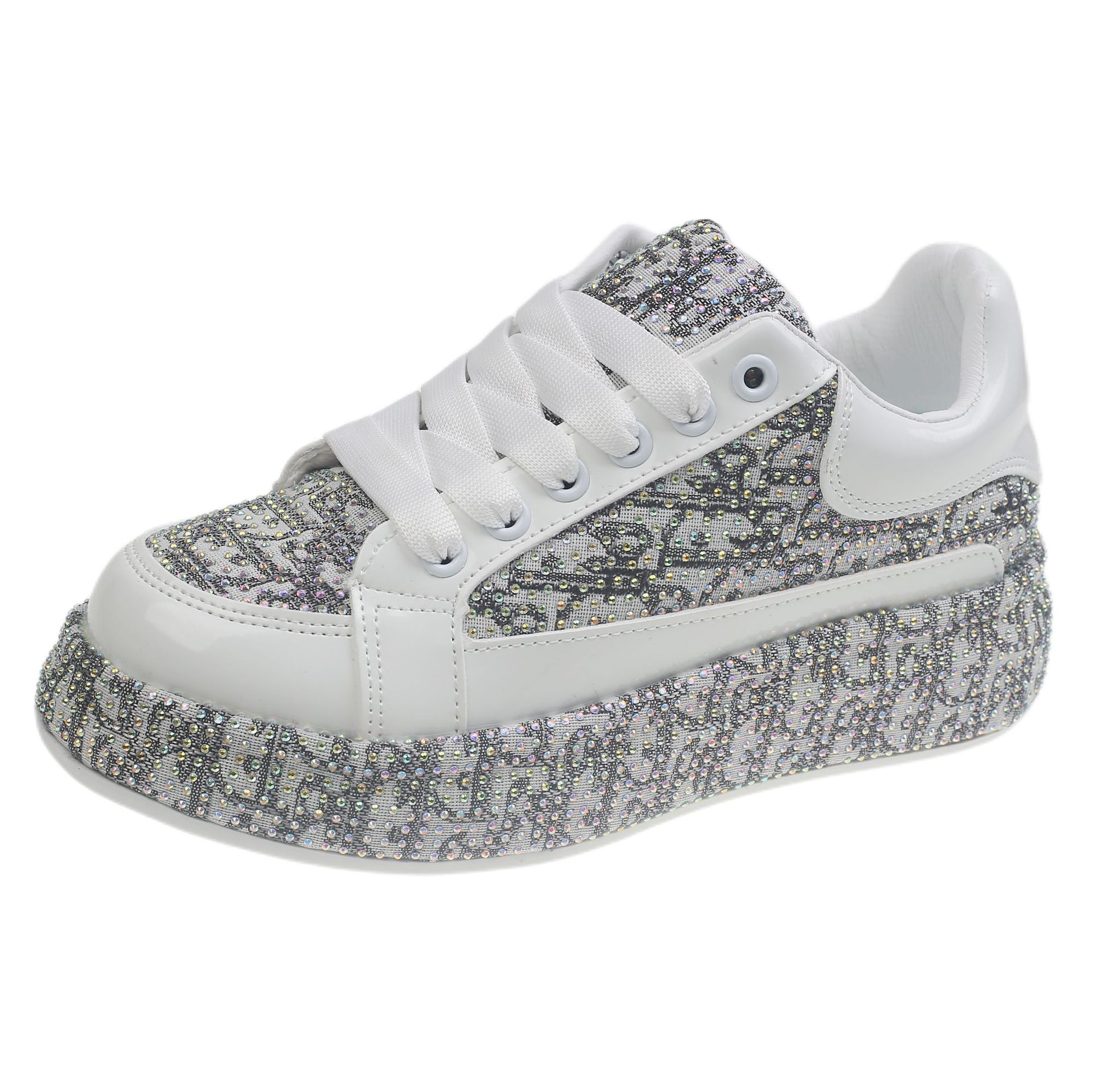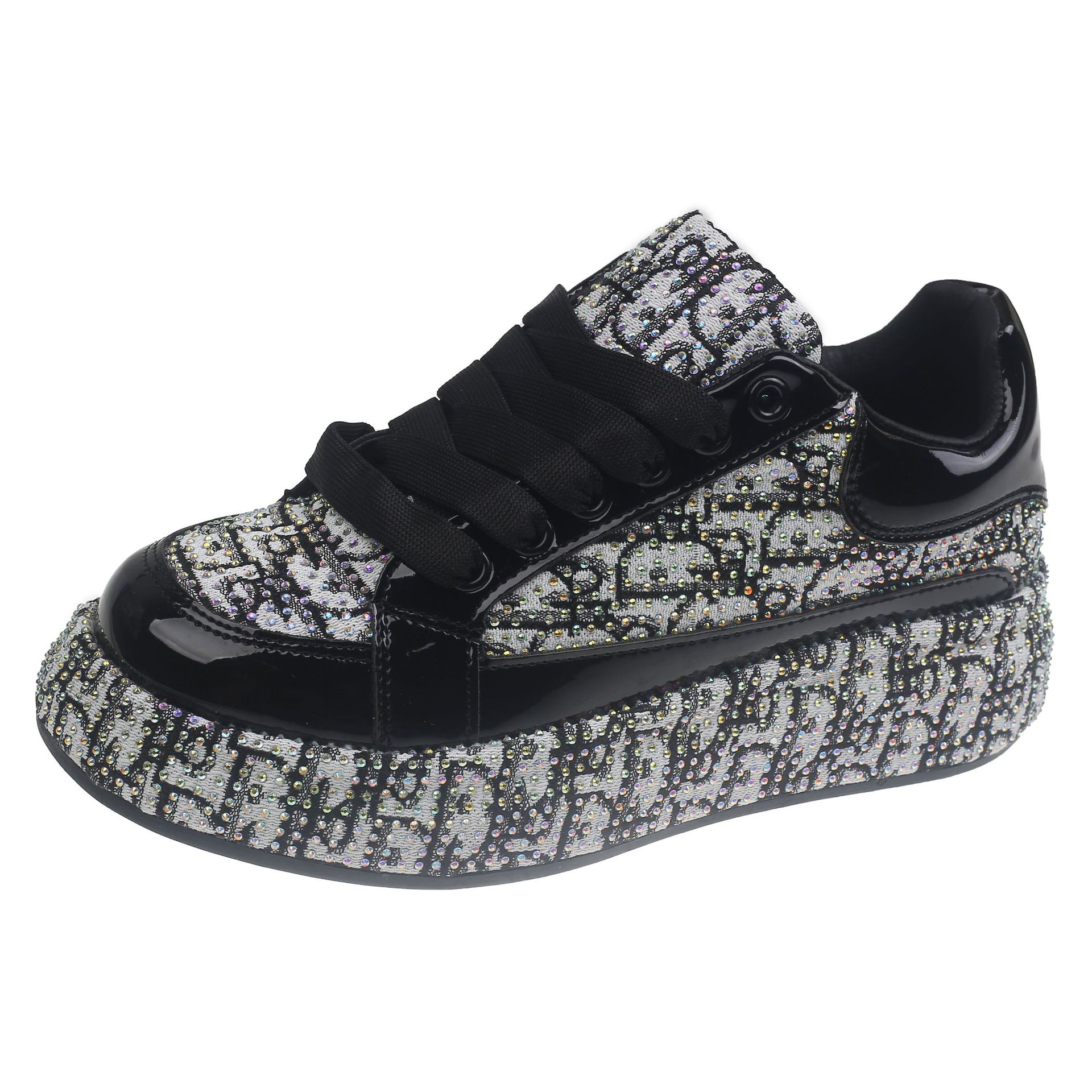 Большие размеры 2025, новые весенние белые туфли с бриллиантами для женщин, модные яркие бриллианты, стильная ниша, универсальная спортивная обувь на платформе с толстой подошвой