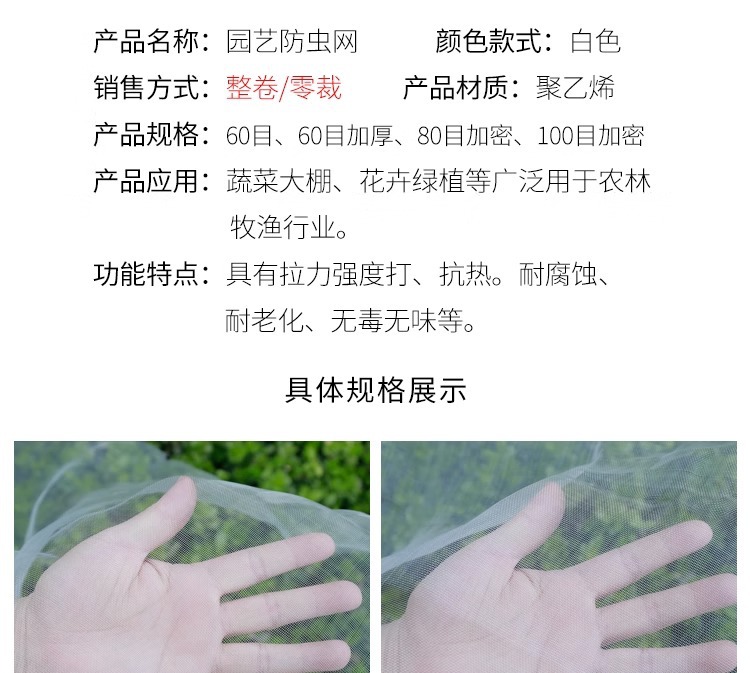 防虫网因为切边,实际宽度误差5厘米这样,60目1毫米左右,80目0.8毫米左右,100目0.6毫米左右,网孔误差0.1毫米左右,详情有其他规格照片亲们要注意,谢谢。