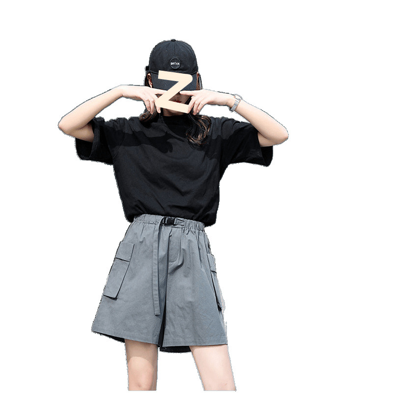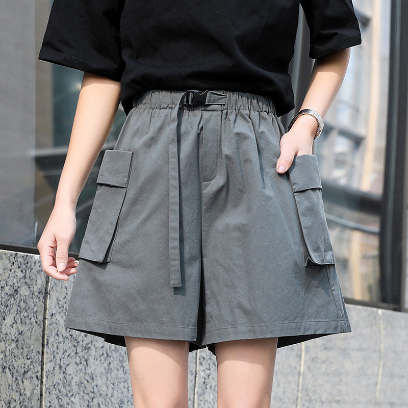 Женские шорты-карго в японском стиле, унисекс, летние, новые прямые, свободные, широкие спортивные повседневные брюки с пятью точками, модные брюки