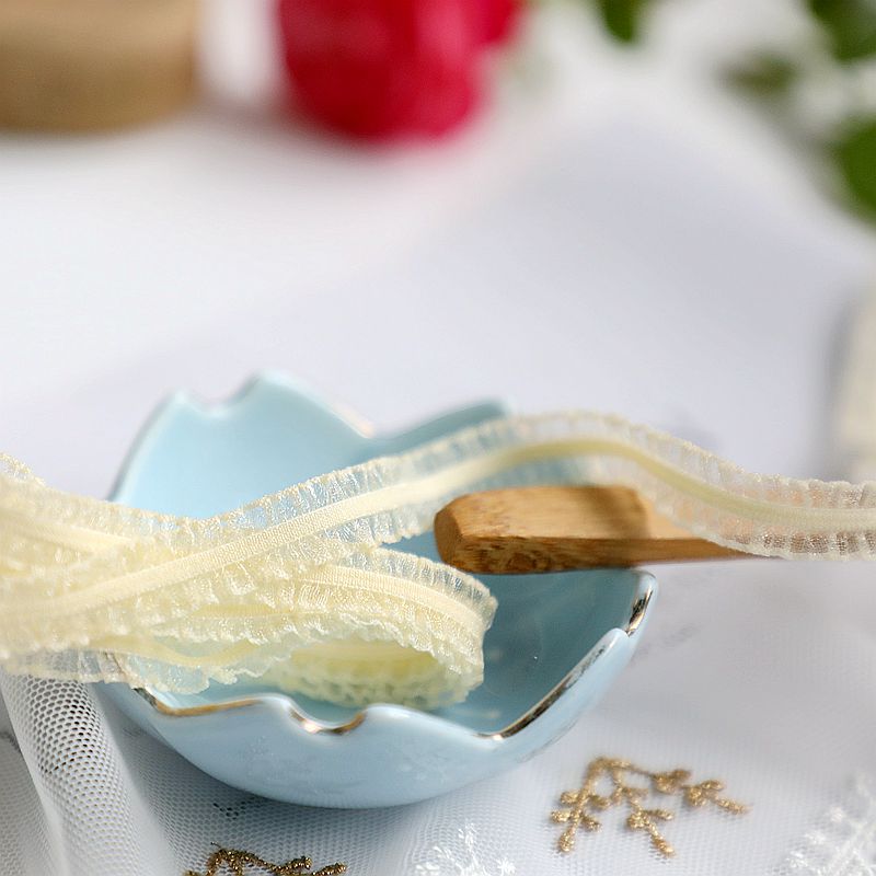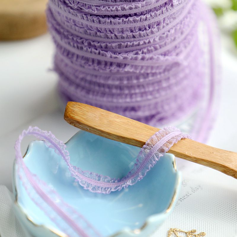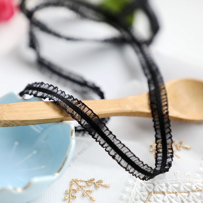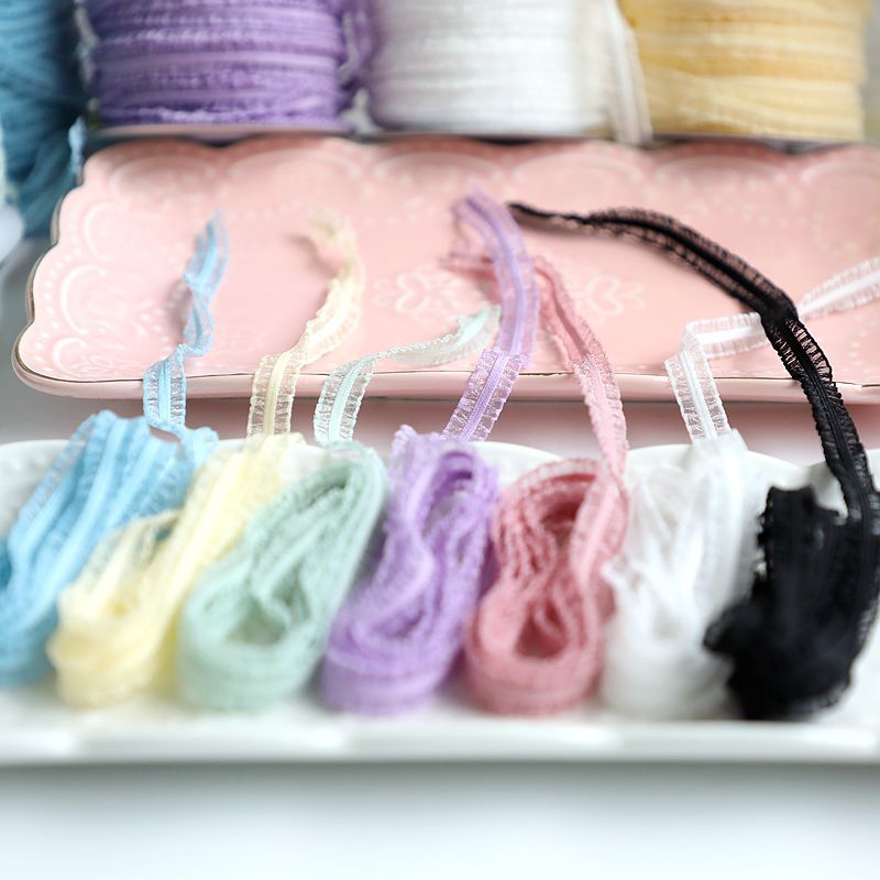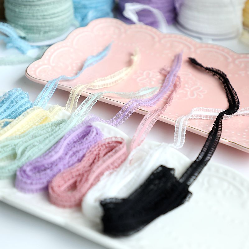 1 см широкая маленькая двусторонняя рюшевая тюлевая эластичная кружевная тесьма для детской одежды и аксессуаров.