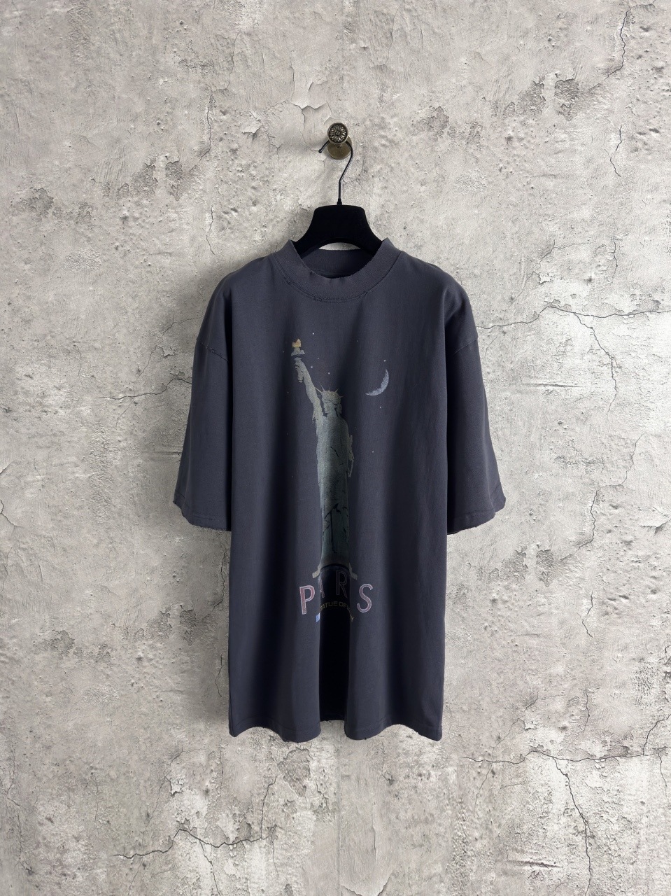 Правильная версия высококачественной футболки B бренда 25SS в новом подиумном стиле с белыми чернилами и принтом, потертой футболкой с короткими рукавами 2