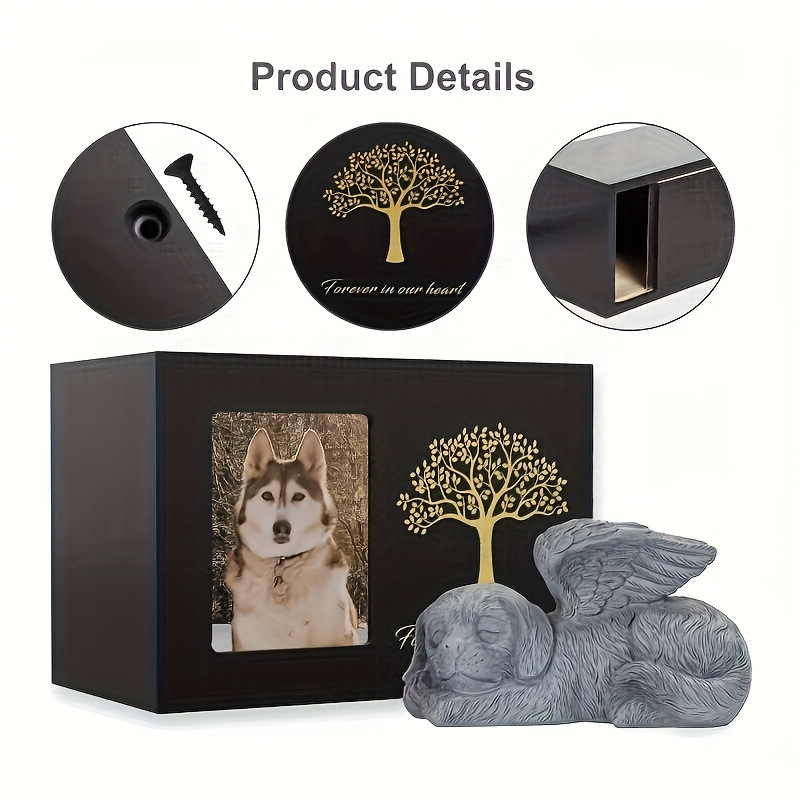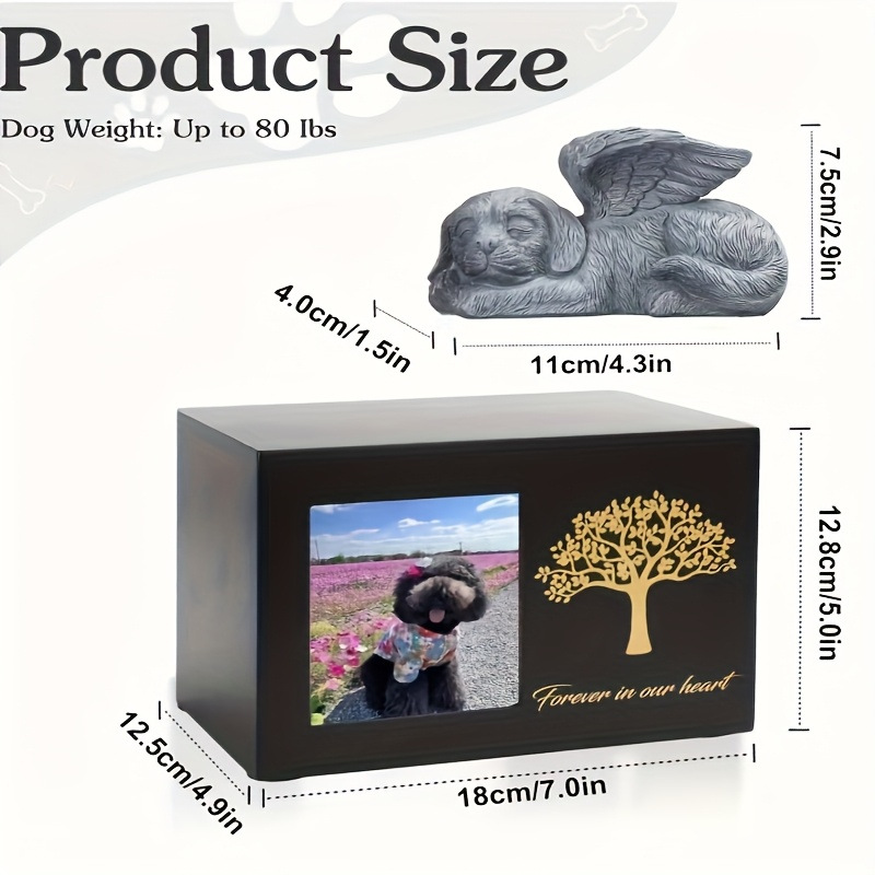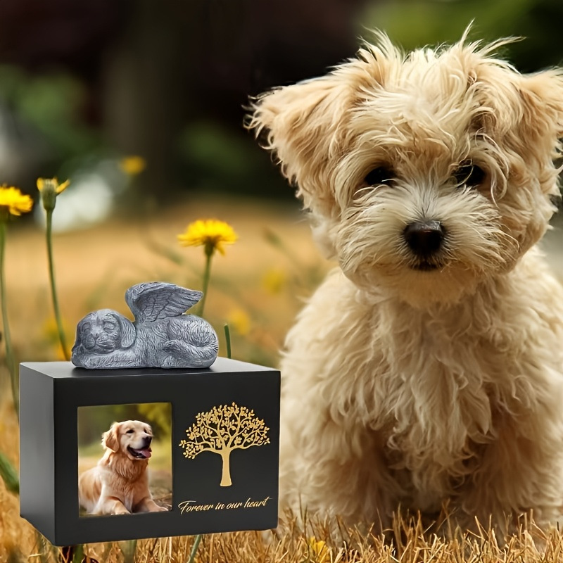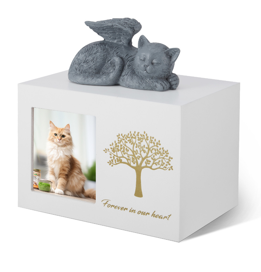 Урна для праха из массива дерева с фото рамкой, «Древо жизни», для животных, с ангелом, для похорон собаки