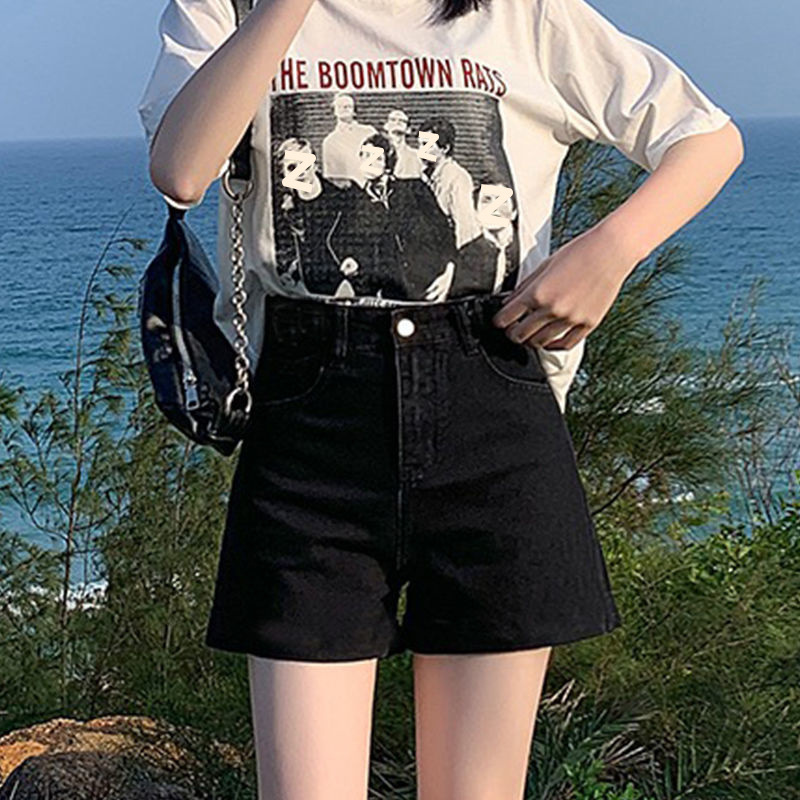 Свободные, стройные и универсальные джинсовые шорты с высокой талией для женщин, лето 2025, новые широкие прямые шорты-трусы оптом