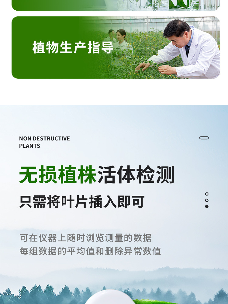 Детектор хлорофилла, измеритель содержания азота в растениях, детектор температуры и влажности листьев, анализатор питательных веществ, доступен на китайском и английском языках, может быть экспортирован в Россию.