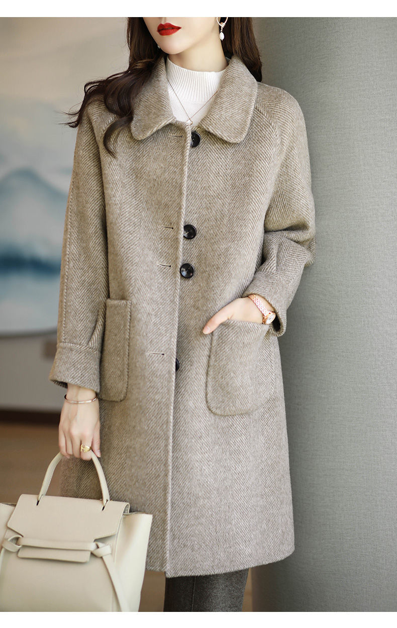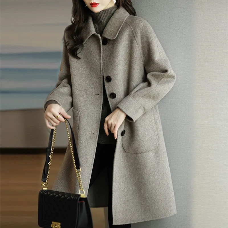 Шерстяная верхняя одежда женская 2024 осень-зима новый стиль утепленная корейский стиль стройная элегантная средней длины шерстяная верхняя одежда
