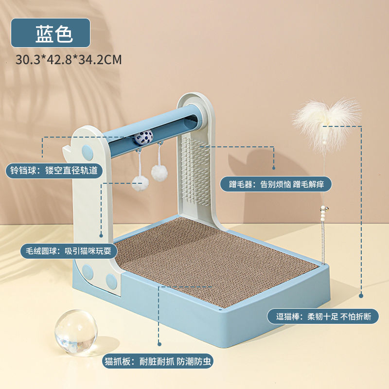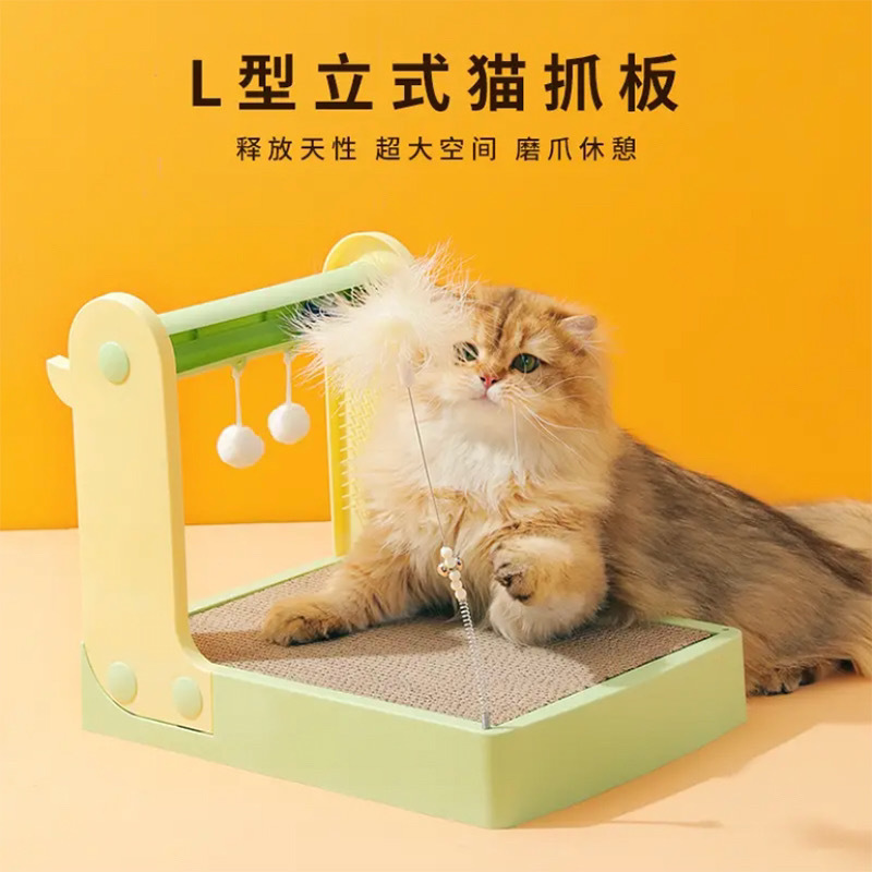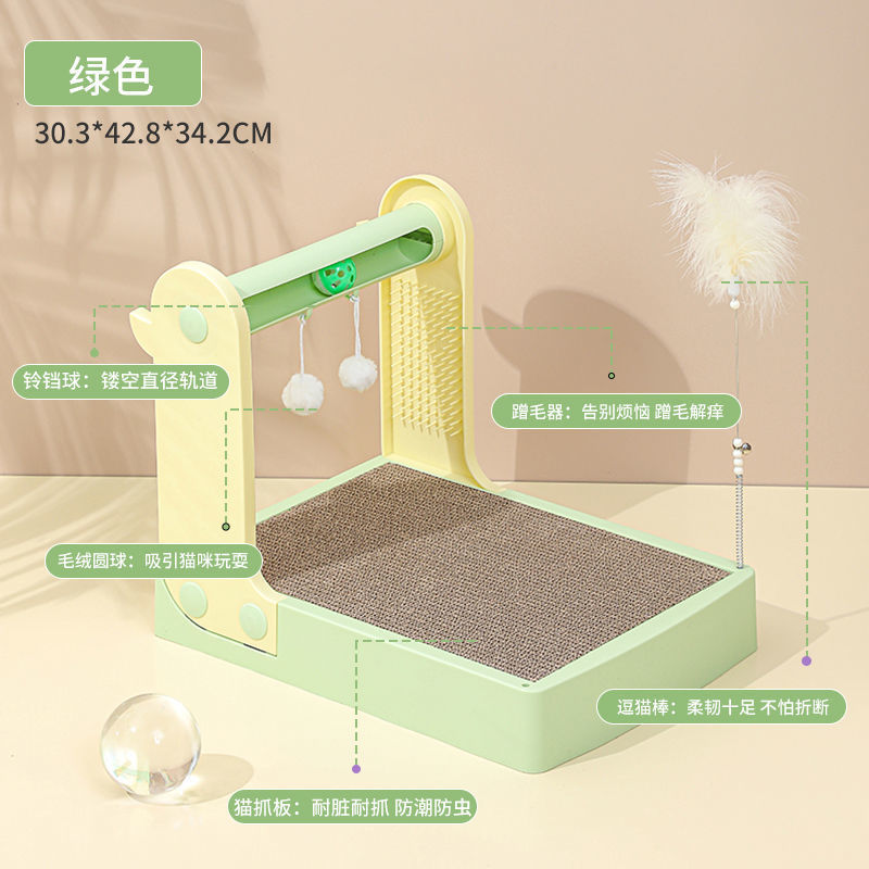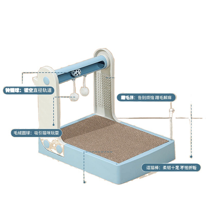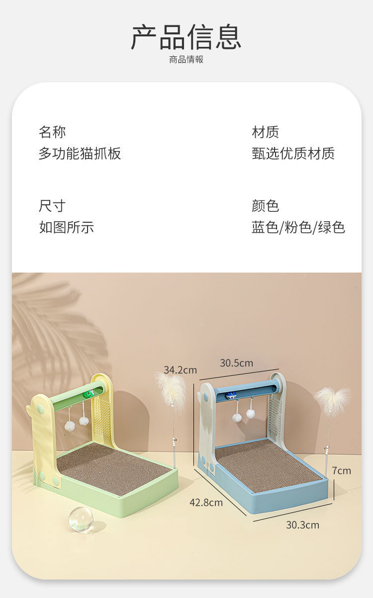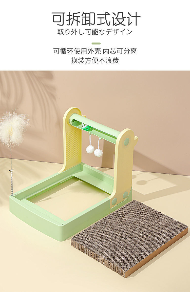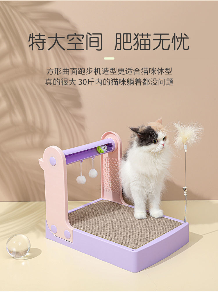 Когтеточка для кошек-уток фиолетового и розового цвета (сон, заточка и игра в одном)); Когтеточка для кошек-уток желтого и зеленого цвета (спит, точит когти и играет все в одном)); Сине-серая когтеточка для кошек-уток (спит, скрипит и играет все в одном))